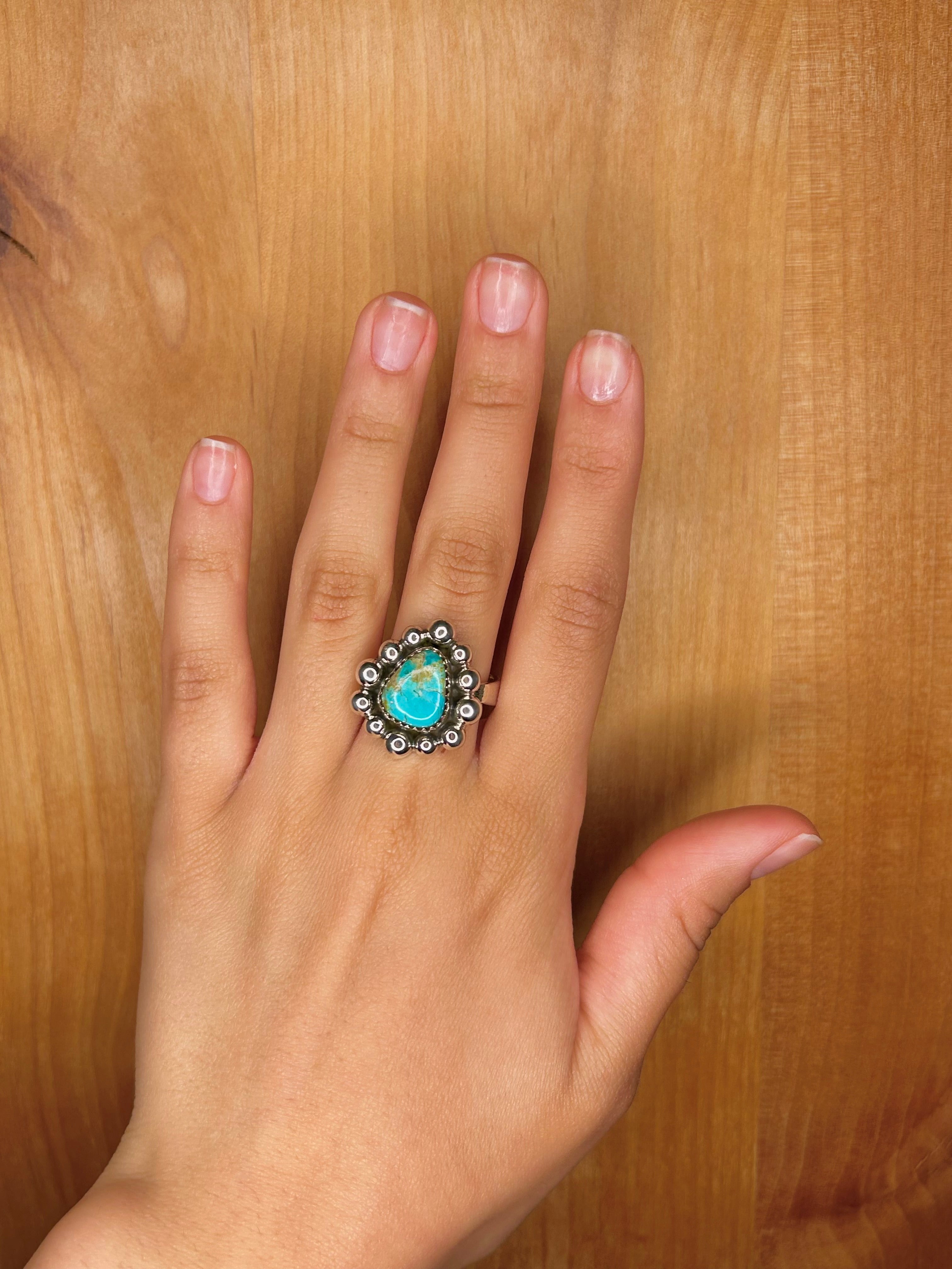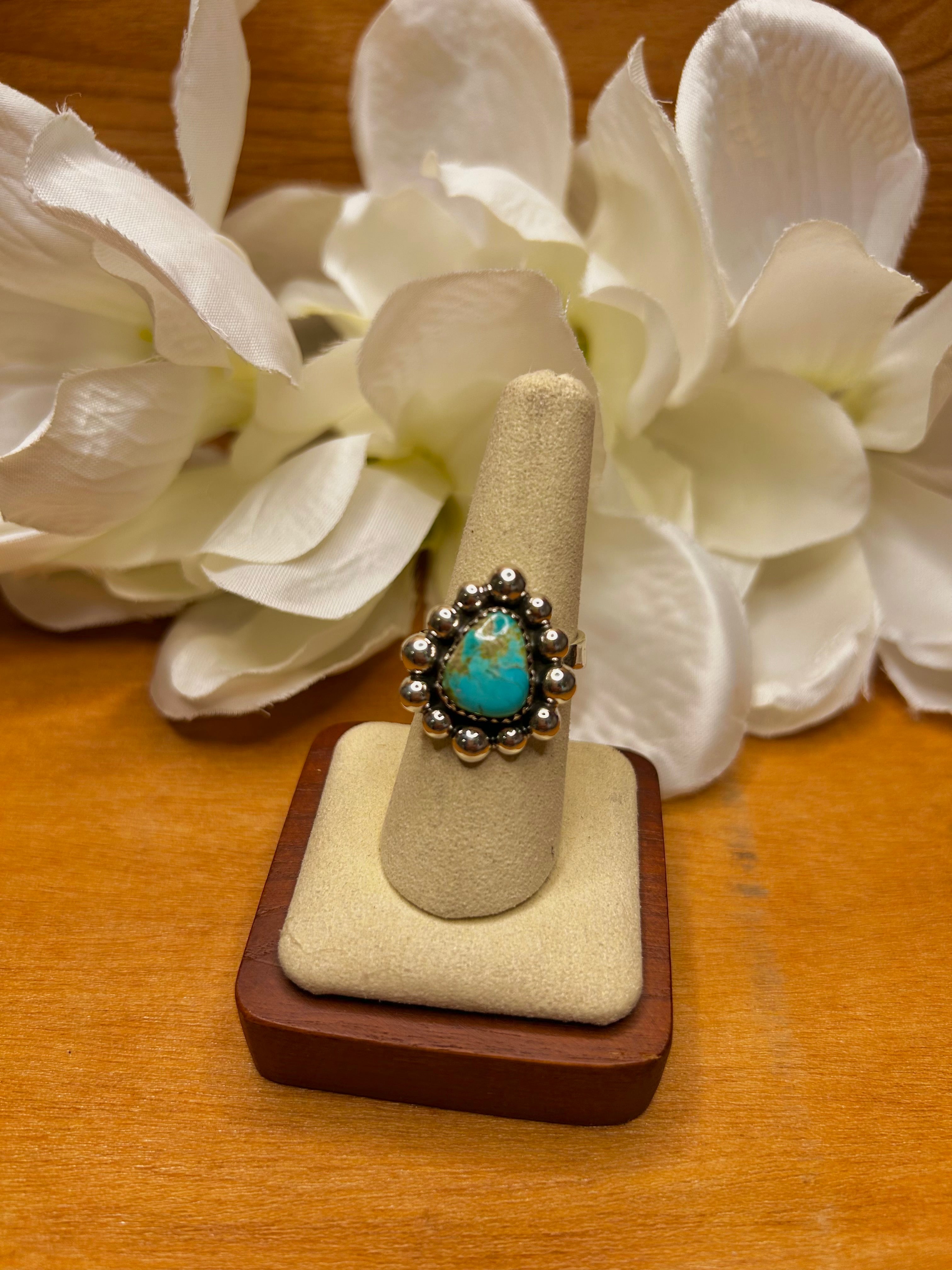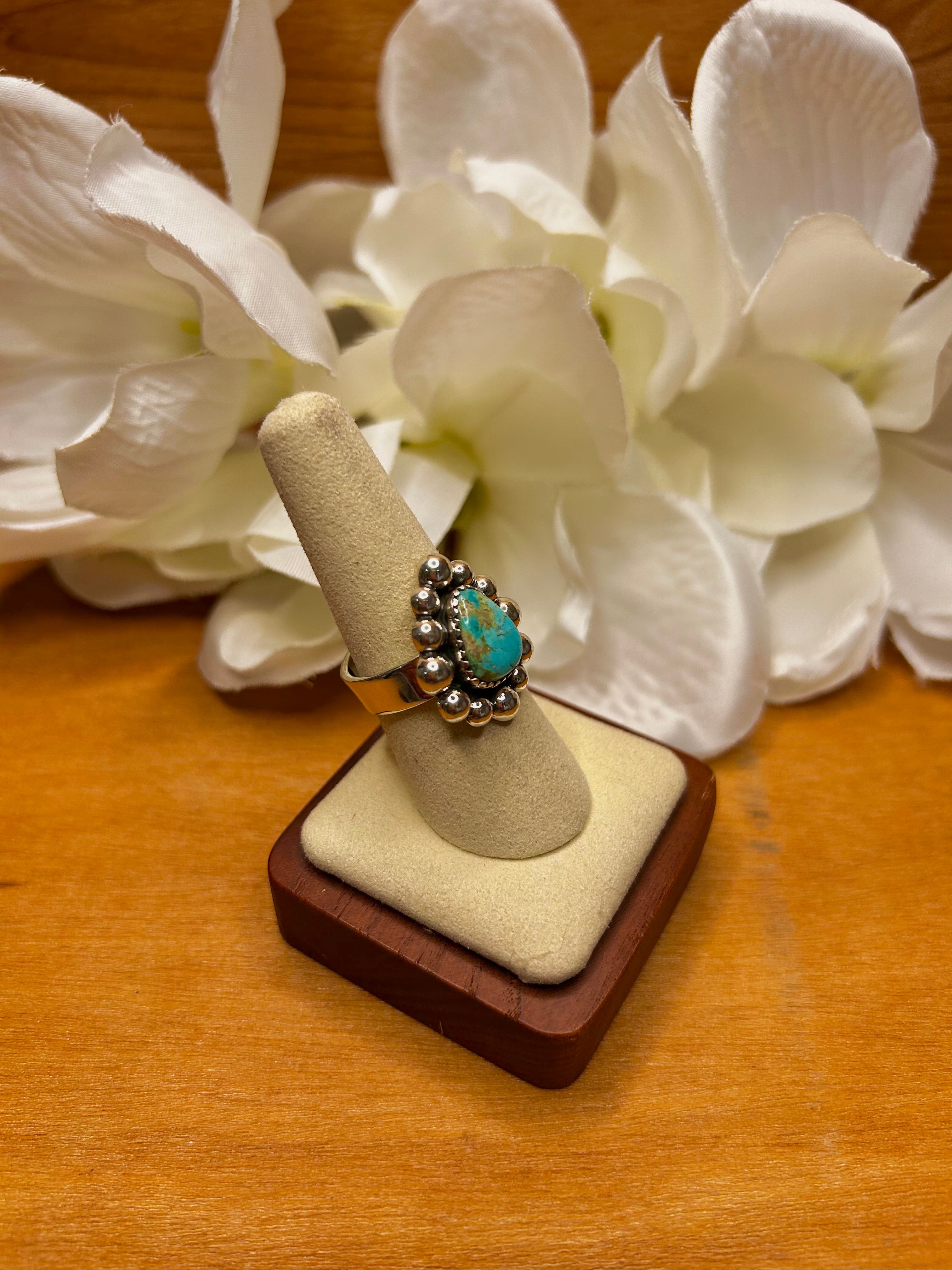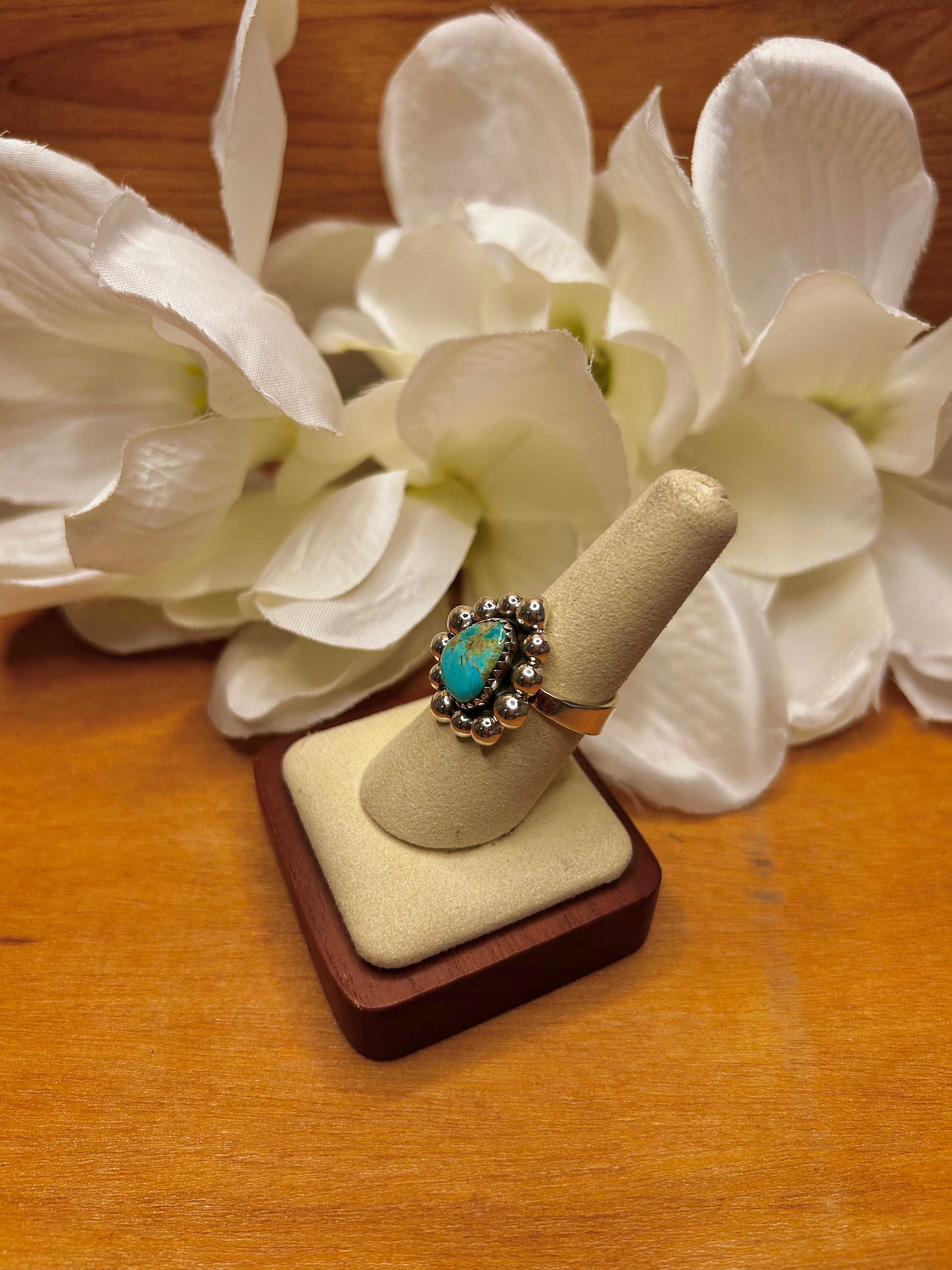 Southwest Made Kingman Turquoise & Sterling Sliver Cluster Adjustable Ring