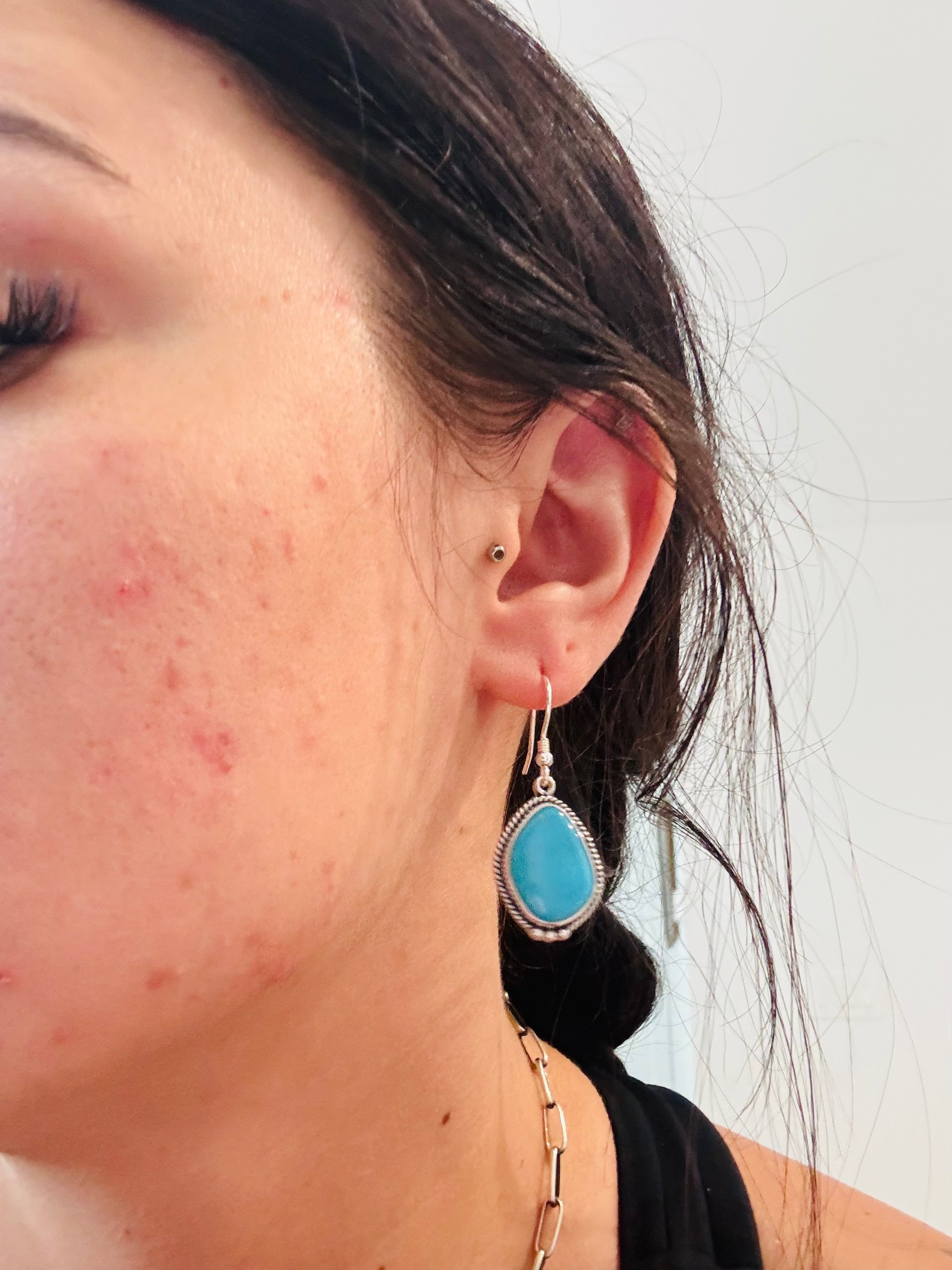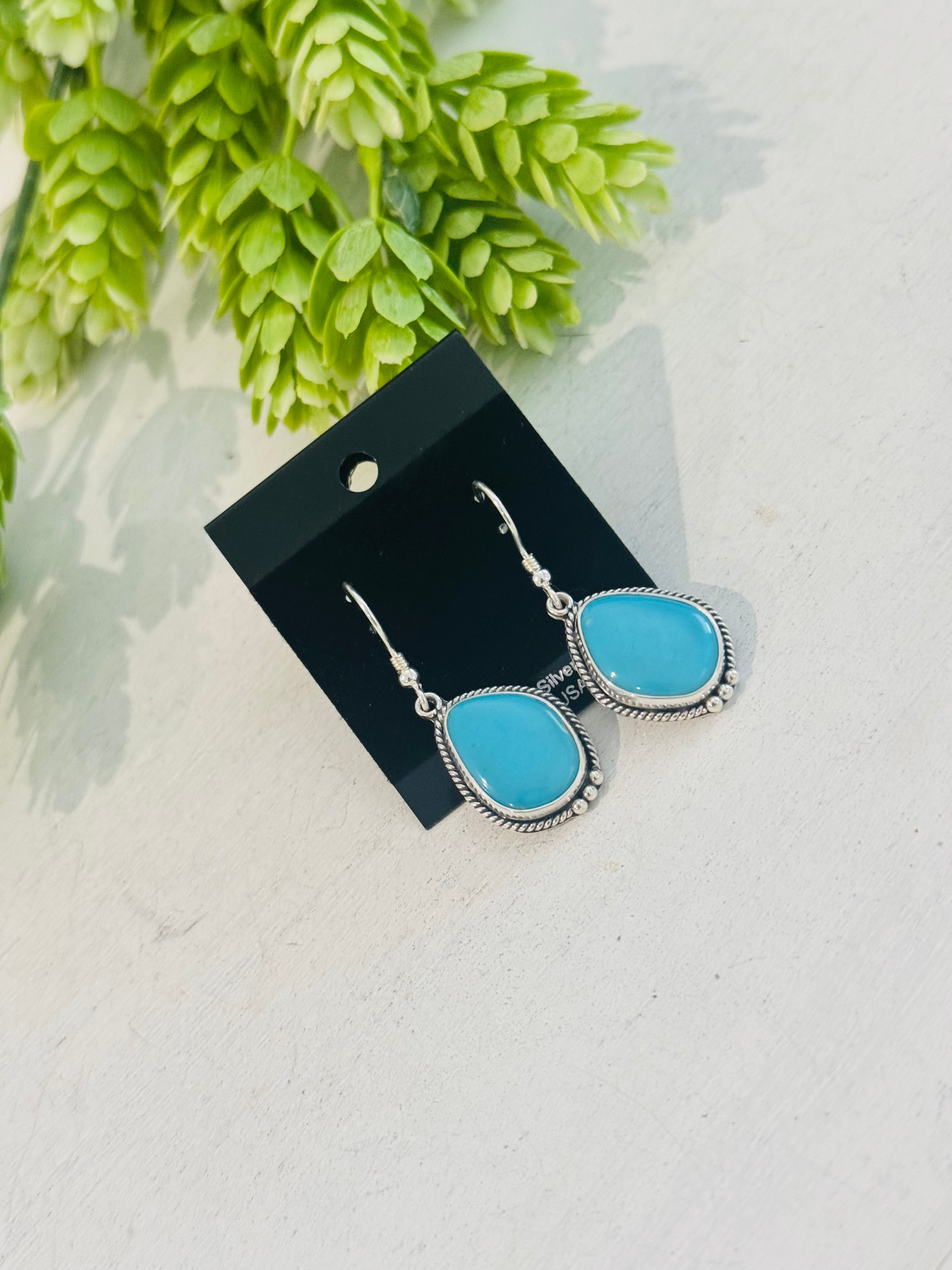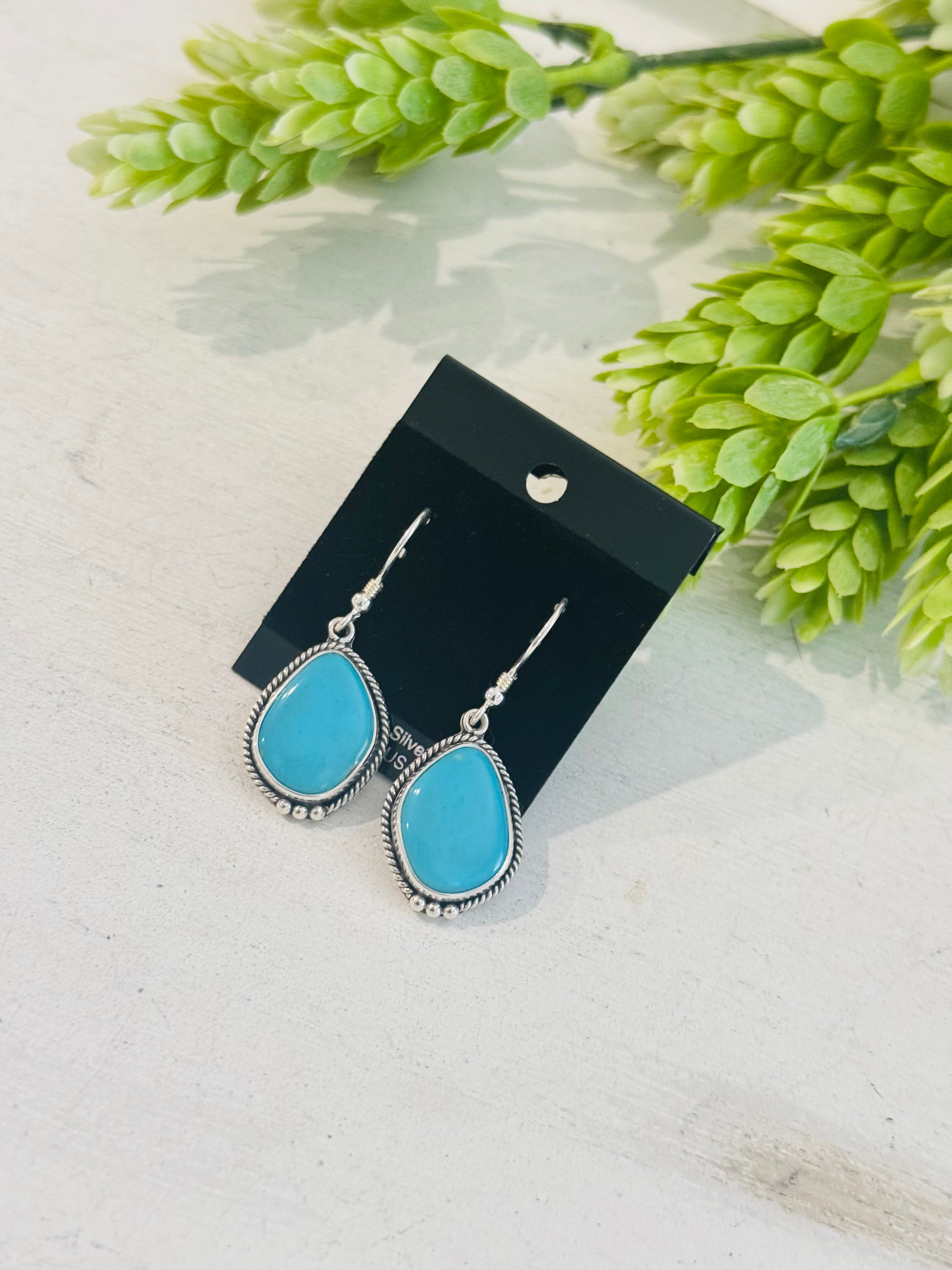 Southwest Made Kingman Turquoise & Sterling Silver Dangle Earrings