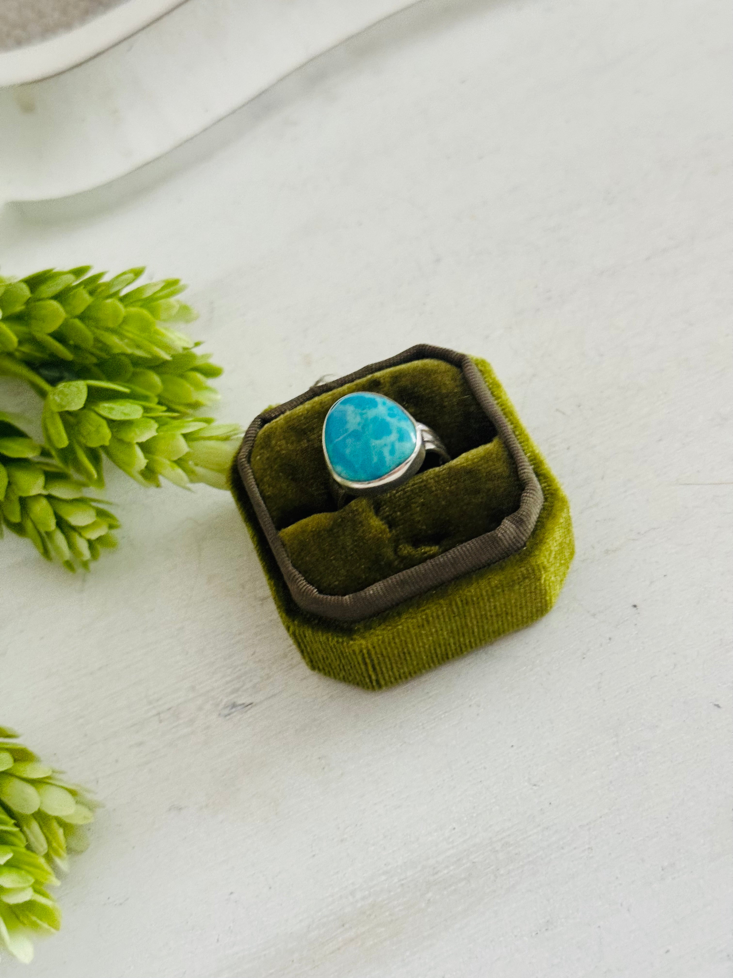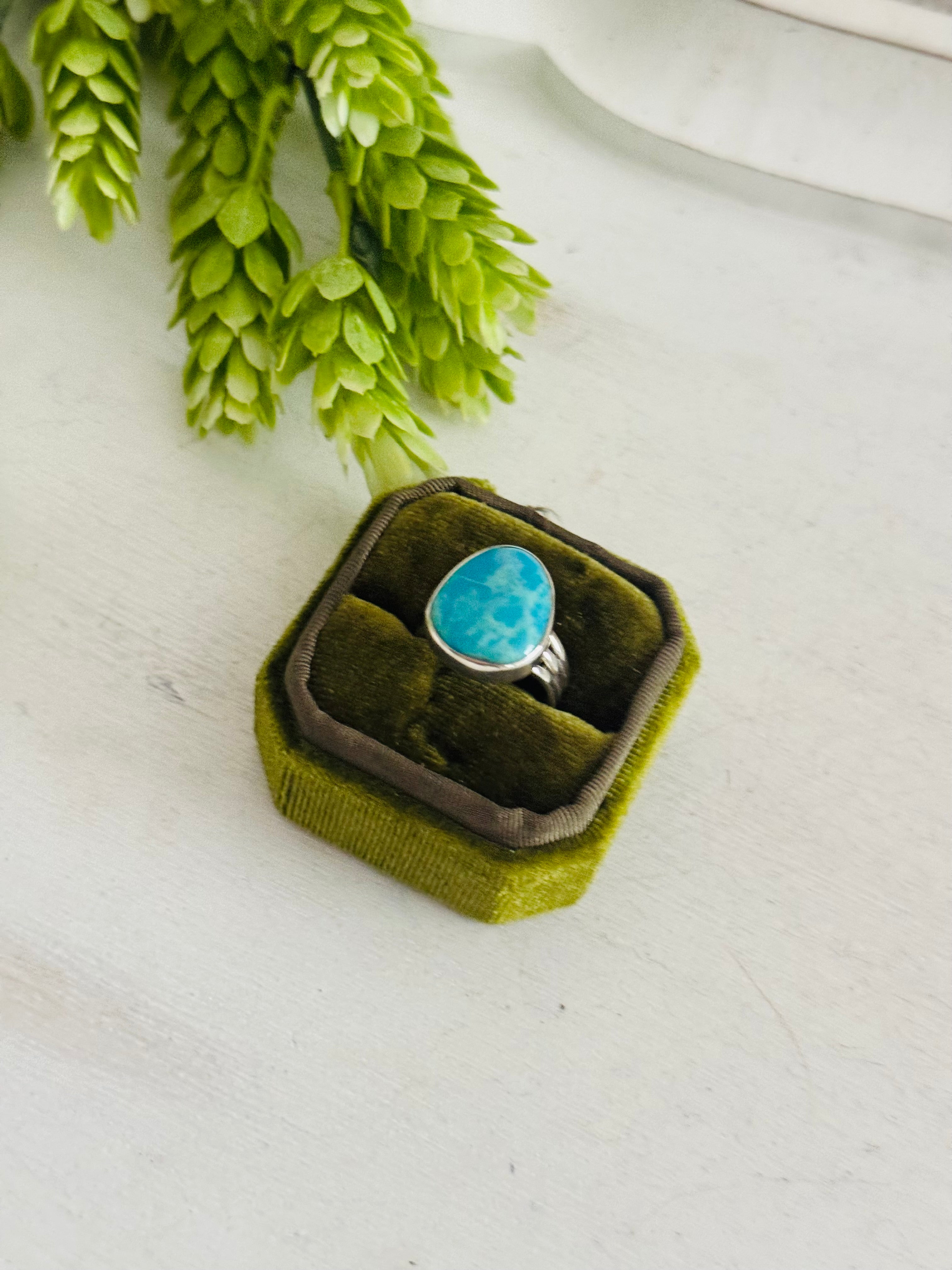Southwest Made Kingman Turquoise & Sterling Sliver Ring Size 7.75