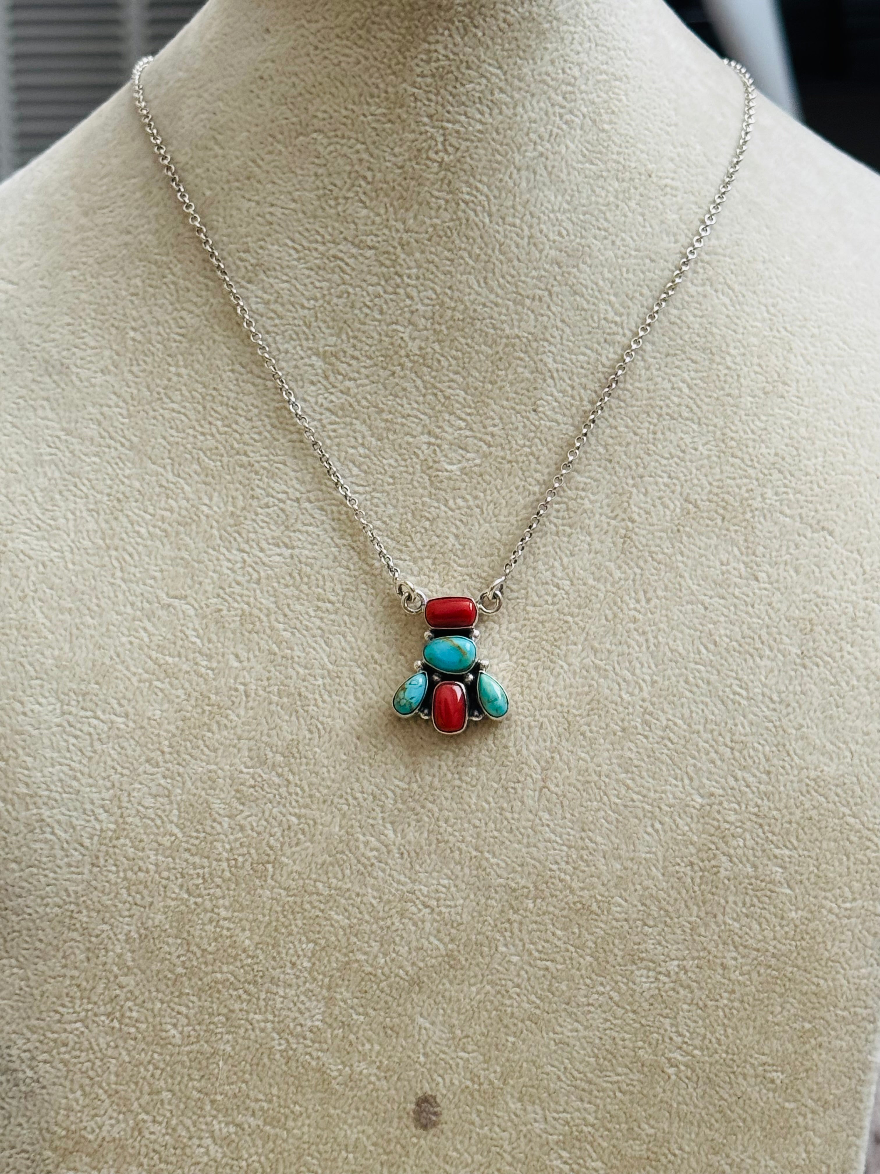 Beautiful necklace set. Southwest Made Multi Stone & Sterling Silver Necklace. It measures 18 1/2 inches long with hang while the chain by itself measures 17 inches long. Signed by the artist and stamped sterling silver.