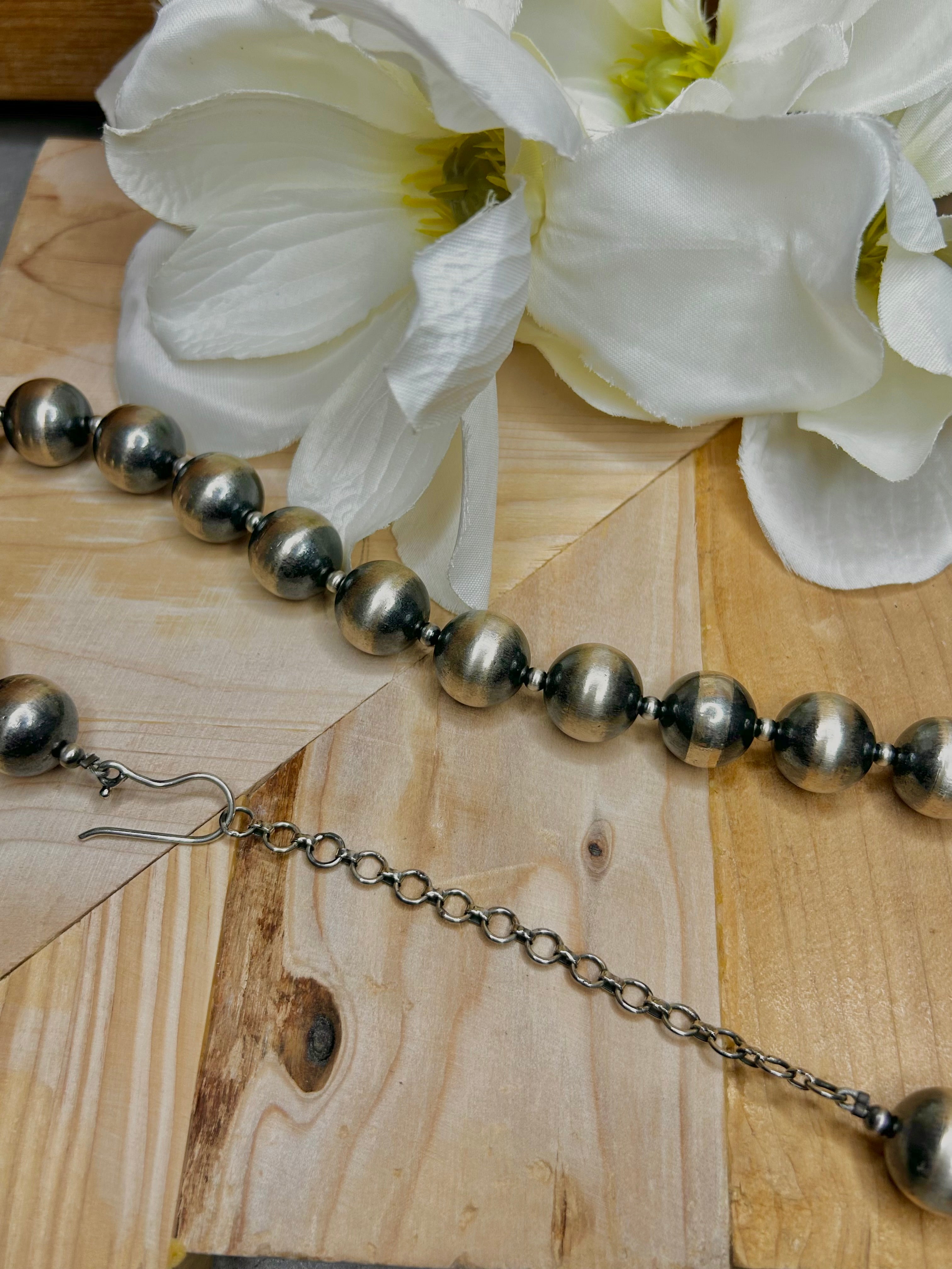 Southwest Handmade Sterling Silver Graduated Pearl Necklace. It measures 23 inches long.