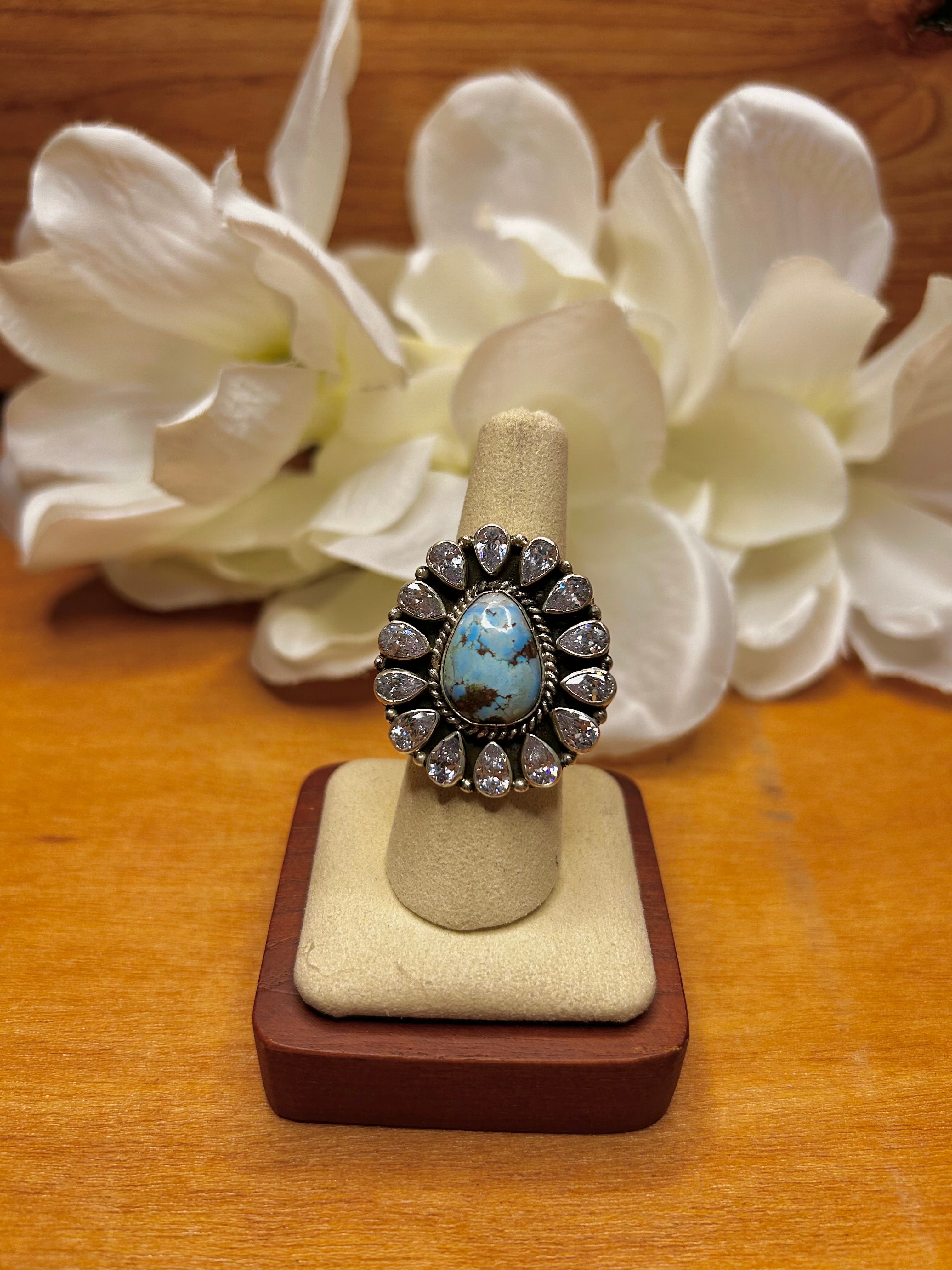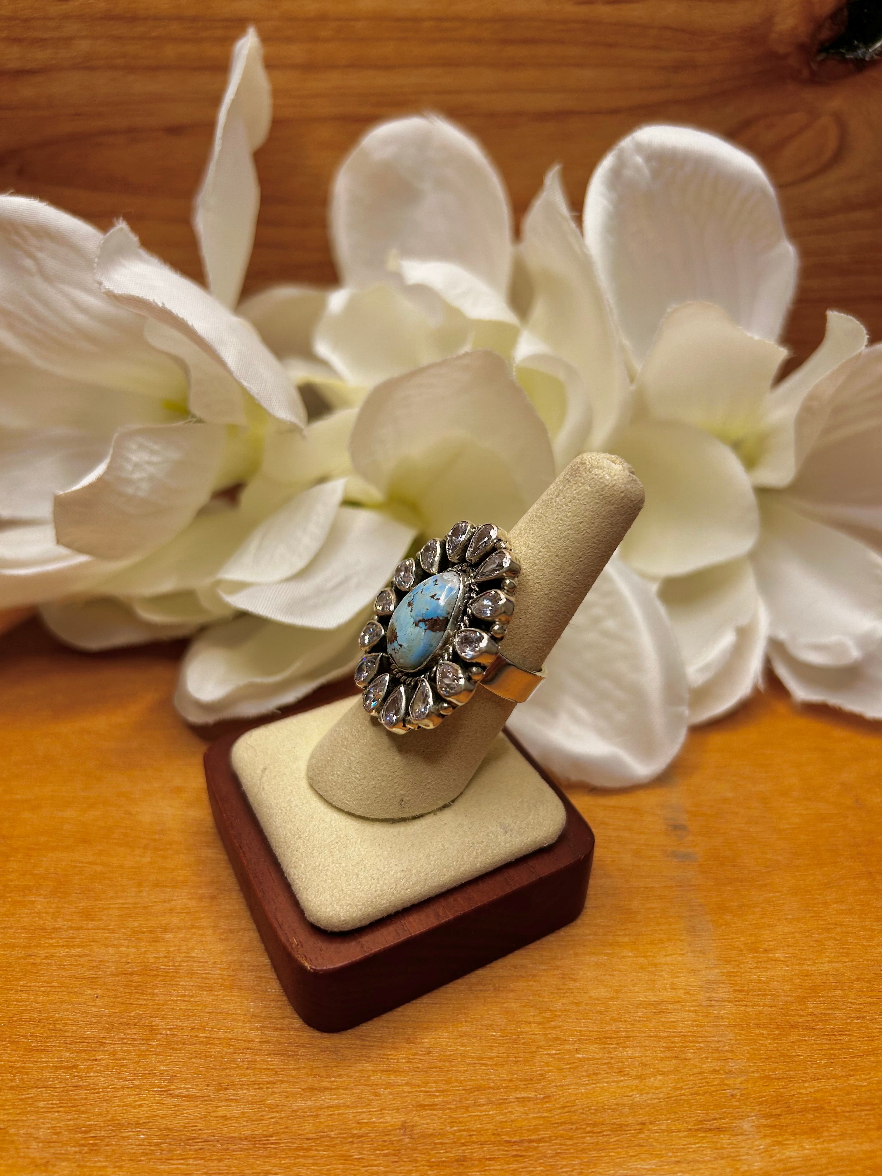 Southwest Made Multi Stone & Sterling Sliver Cluster Adjustable Ring