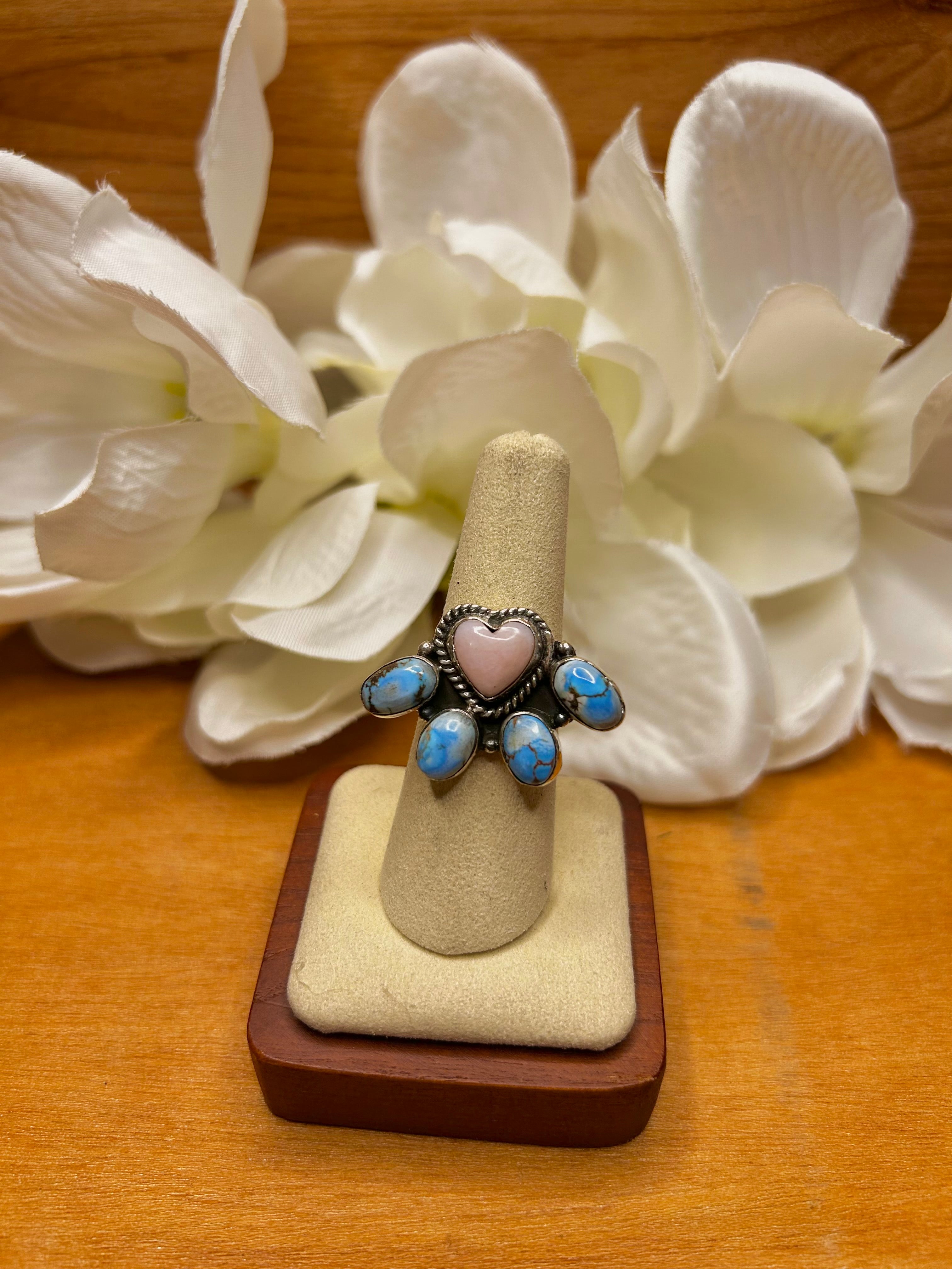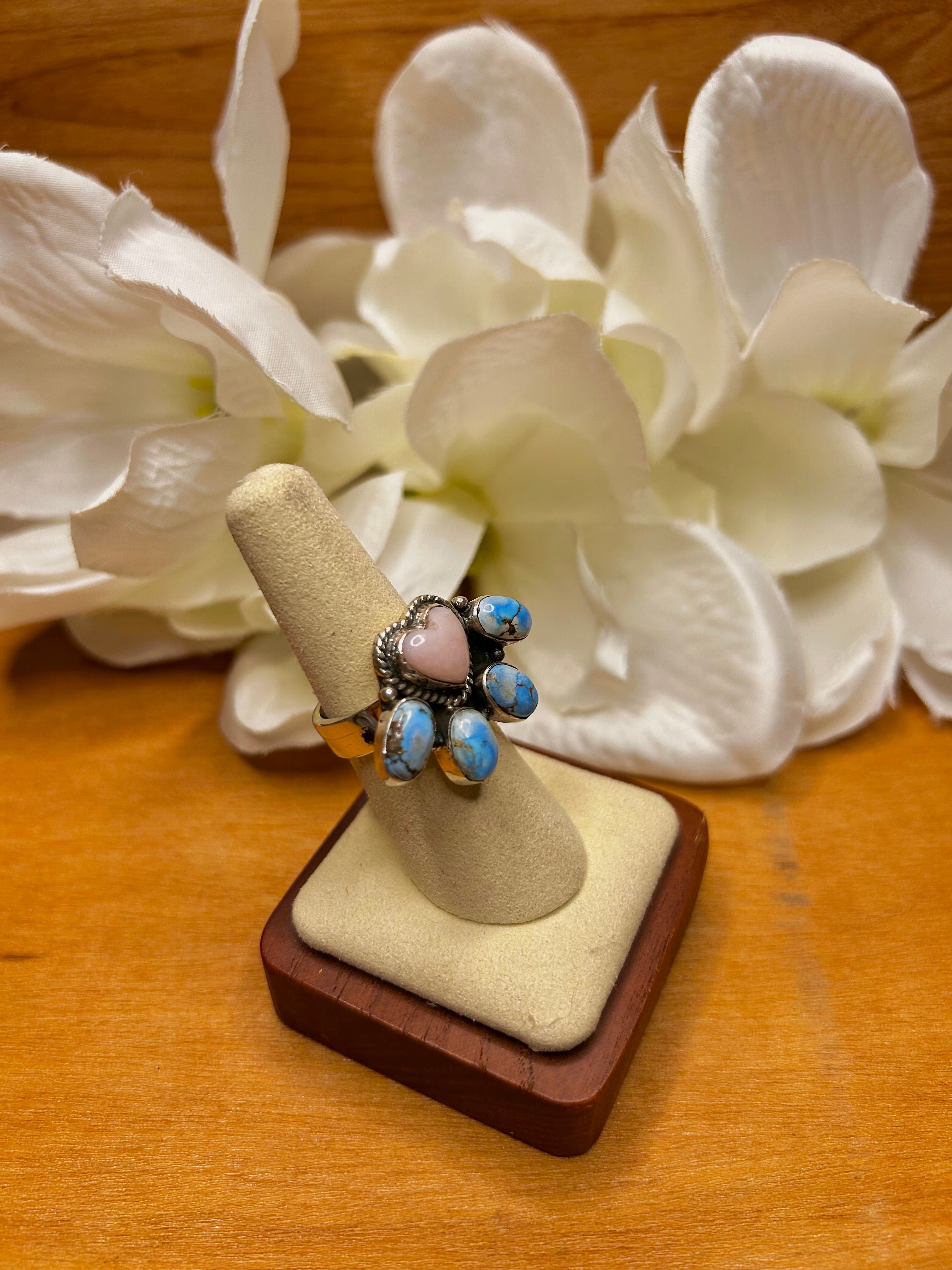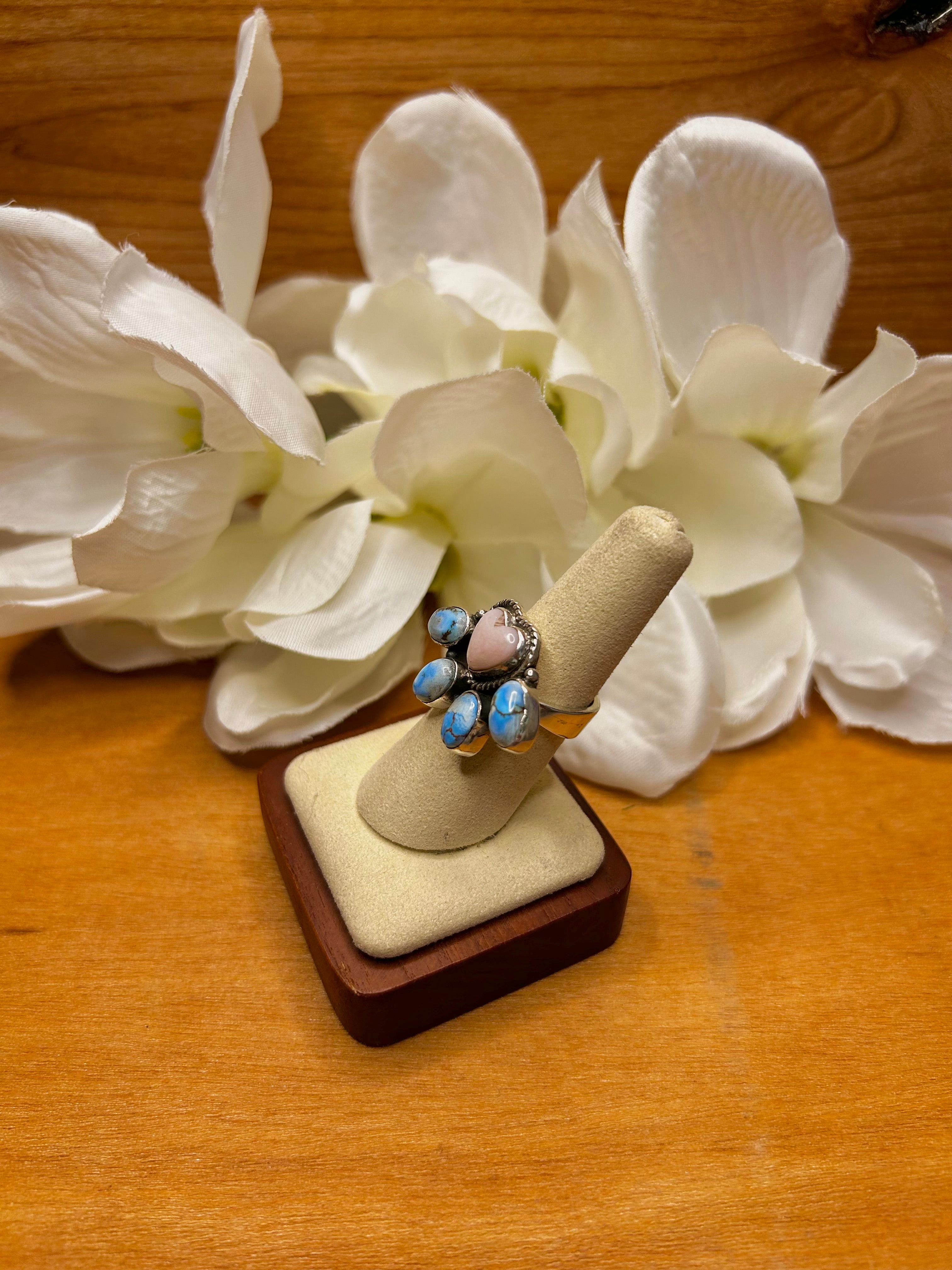 Southwest Made Multi Stone & Sterling Sliver Cluster Adjustable Ring