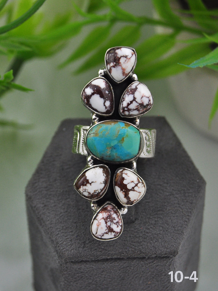 Southwest Made Multi Stone & Sterling Sliver Cluster Adjustable Ring