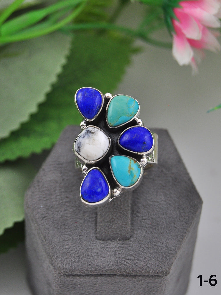 Southwest Made Multi Stone & Sterling Sliver Cluster Adjustable Ring