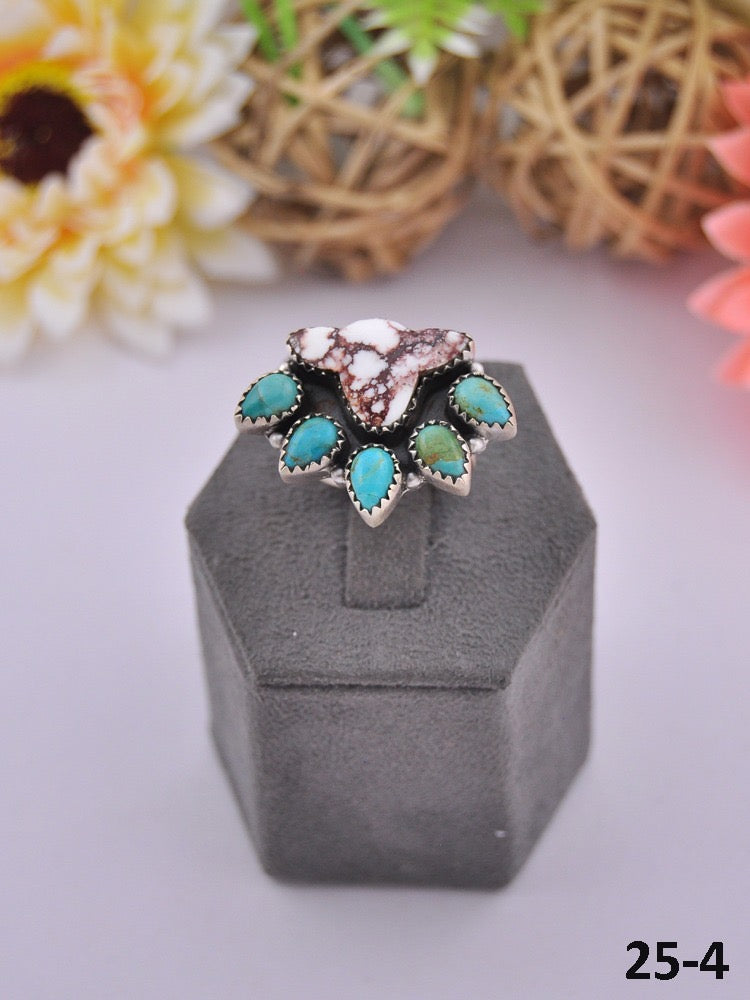 Southwest Made Multi Stone & Sterling Sliver Cluster Adjustable Ring