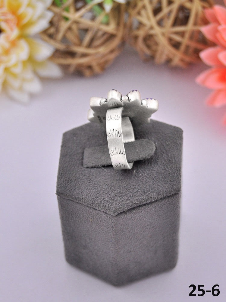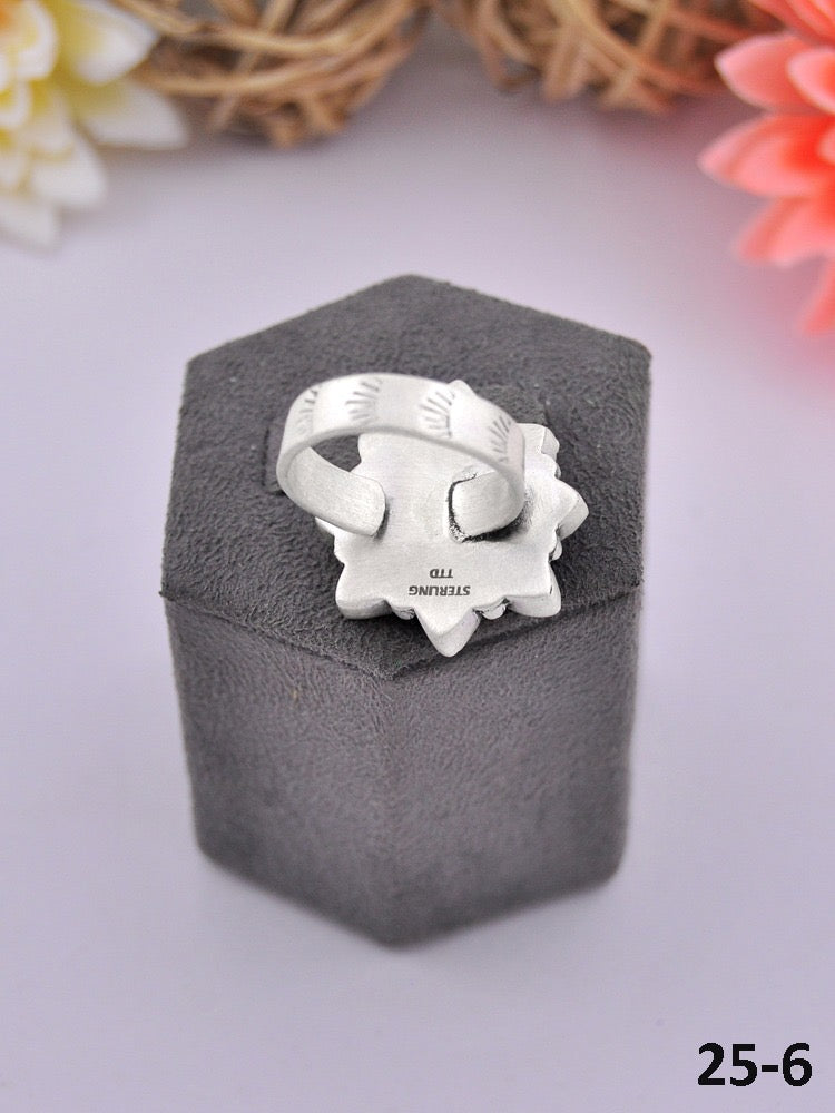 Southwest Made Multi Stone & Sterling Sliver Cluster Adjustable Ring. It measures 1 inch long and 1 inch wide. Signed by the artist and stamped sterling silver. Stones may differ due to natural stones.