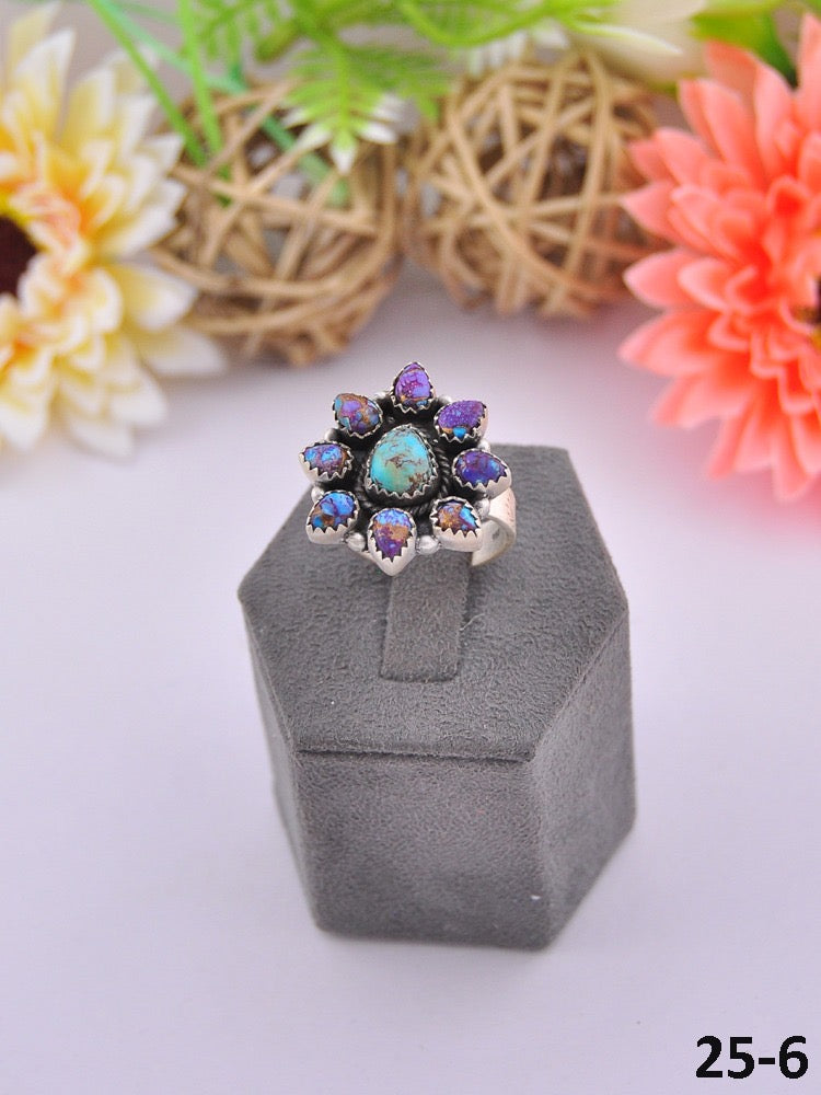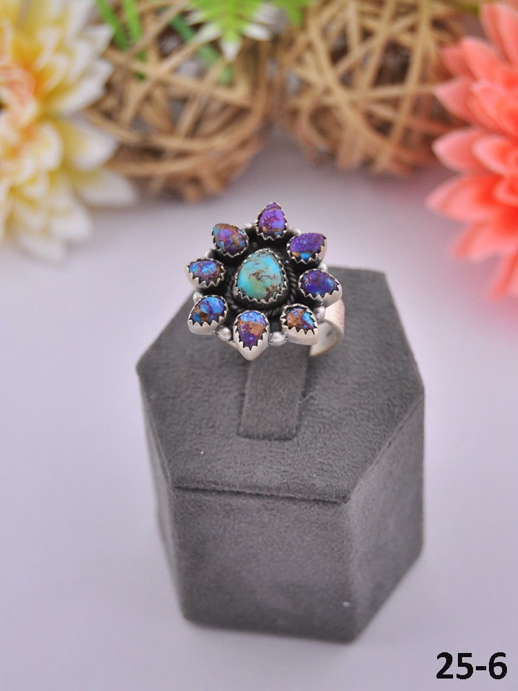 Southwest Made Multi Stone & Sterling Sliver Cluster Adjustable Ring