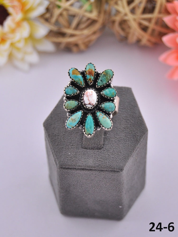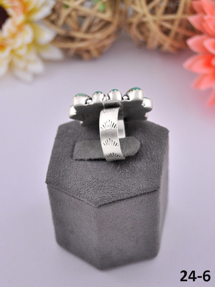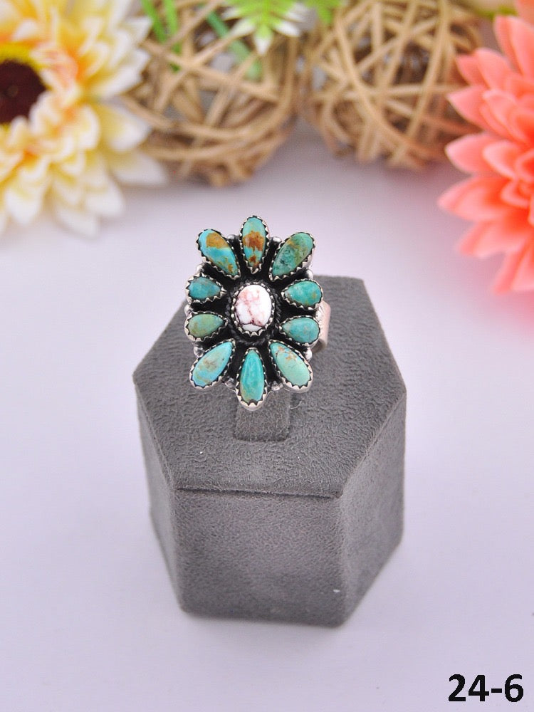 Southwest Made Multi Stone & Sterling Sliver Cluster Adjustable Ring