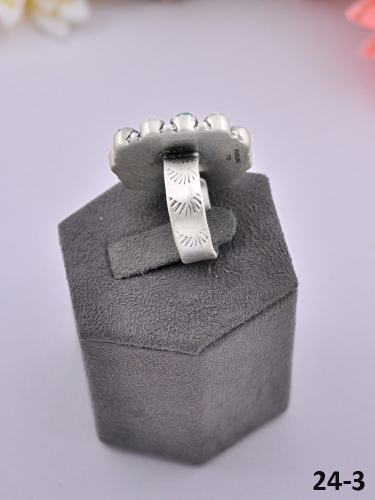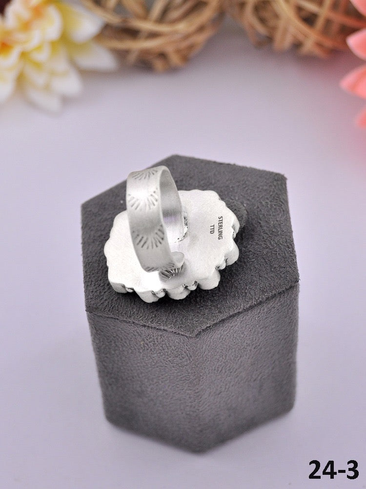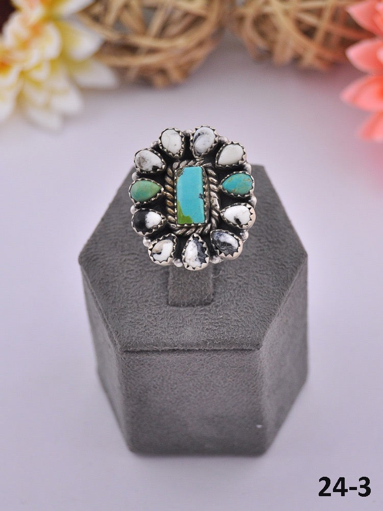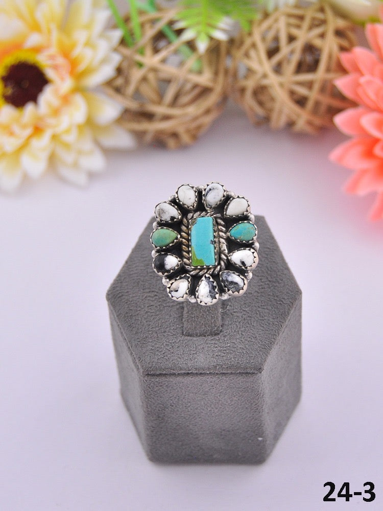 Southwest Made Multi Stone & Sterling Sliver Cluster Adjustable Ring