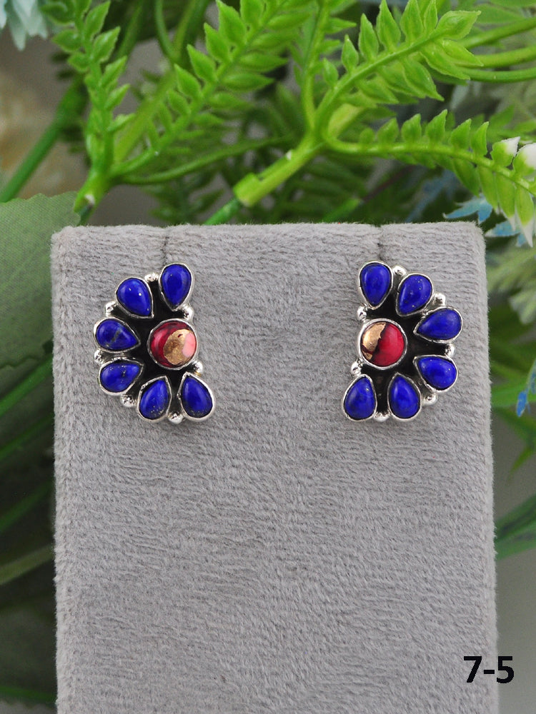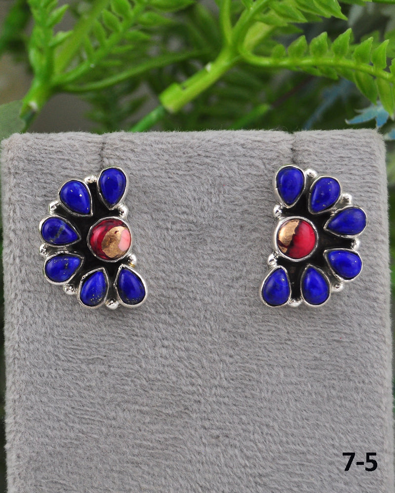 Southwest Made Multi Stones & Sterling Silver Post Earrings