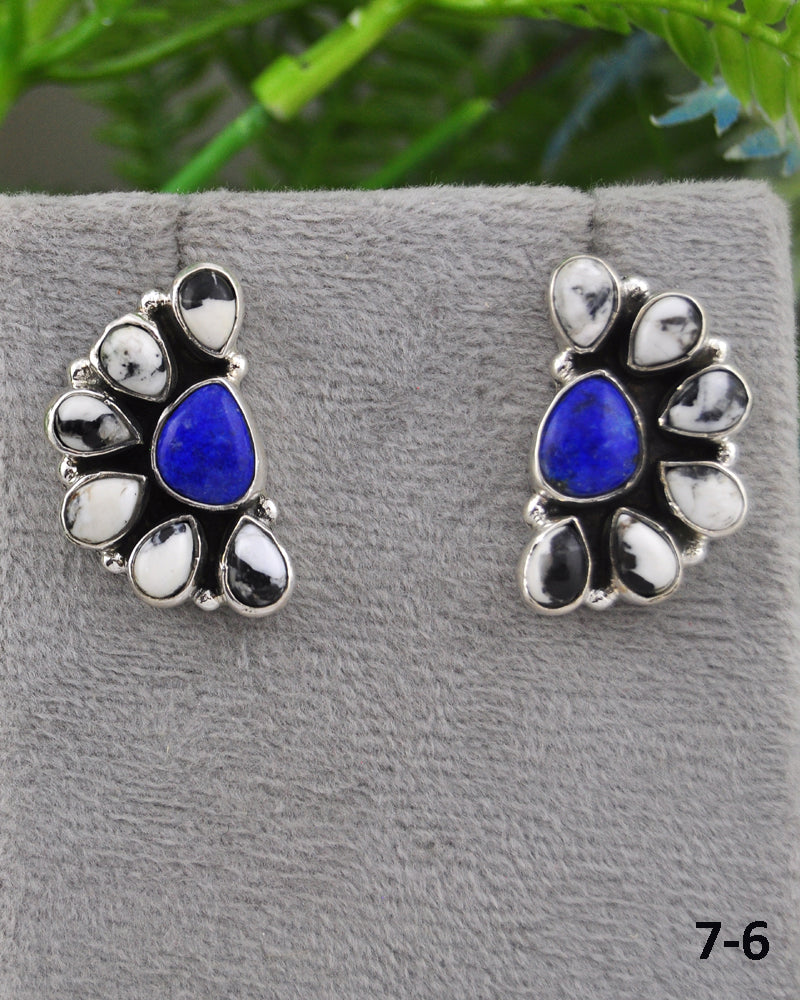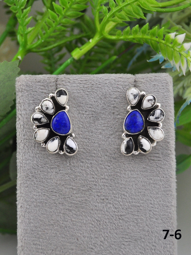 Southwest Made Multi Stones & Sterling Silver Post Earrings