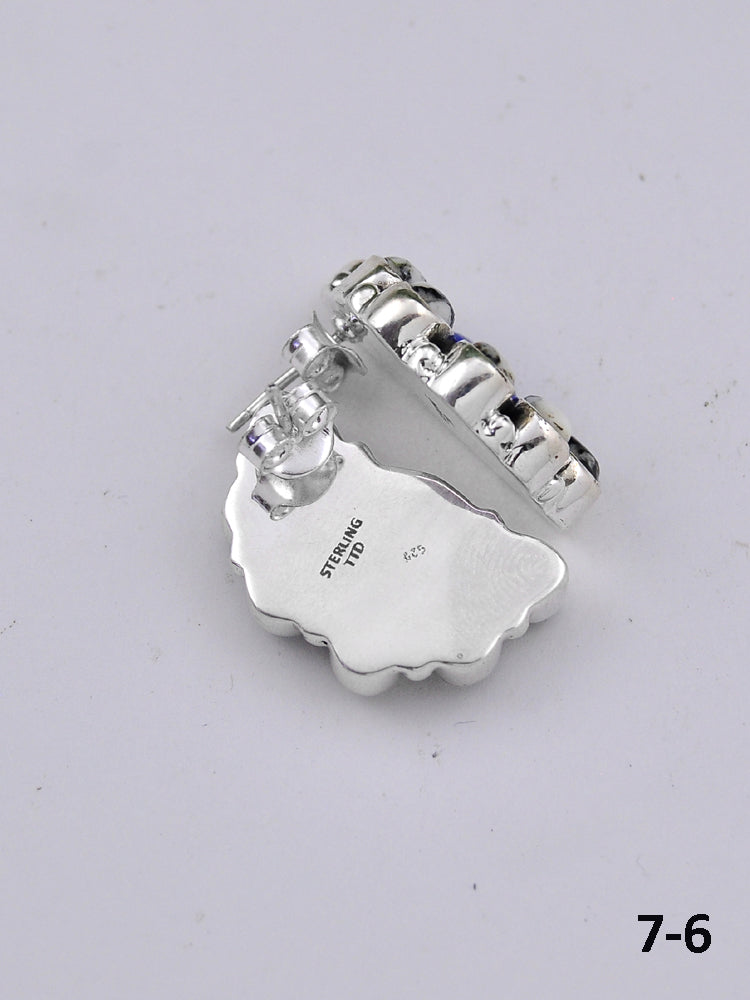 Southwest Made Multi Stones & Sterling Silver Post Earrings. It measures 1 inch long and 5/8 of an inch wide. Stamped and sign by sterling sliver.