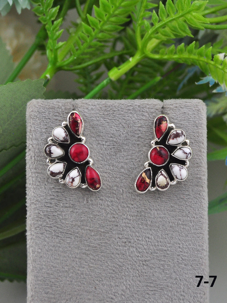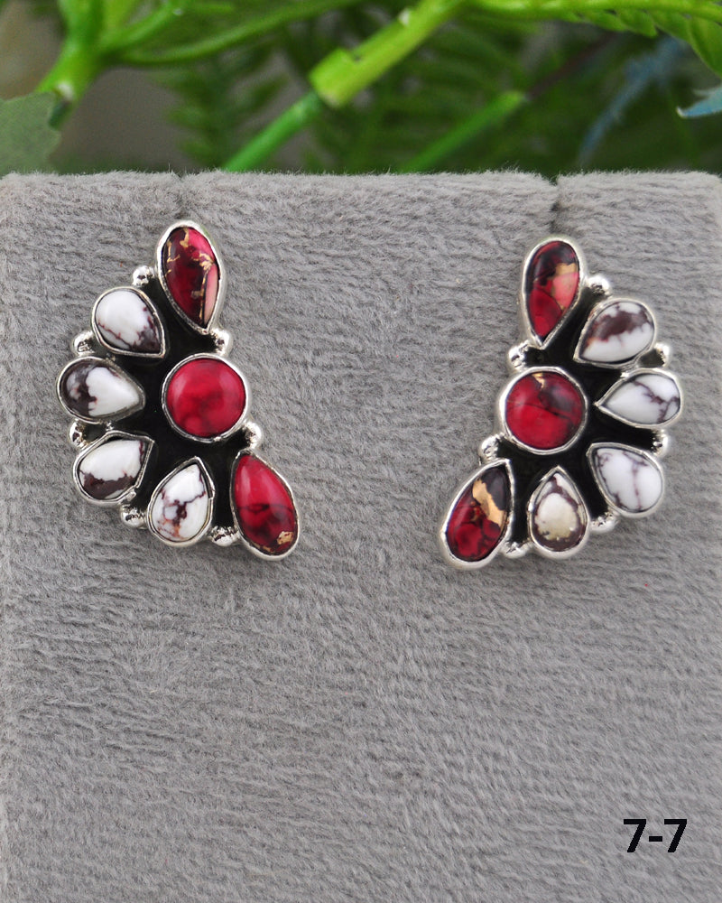 Southwest Made Multi Stones & Sterling Silver Post Earrings