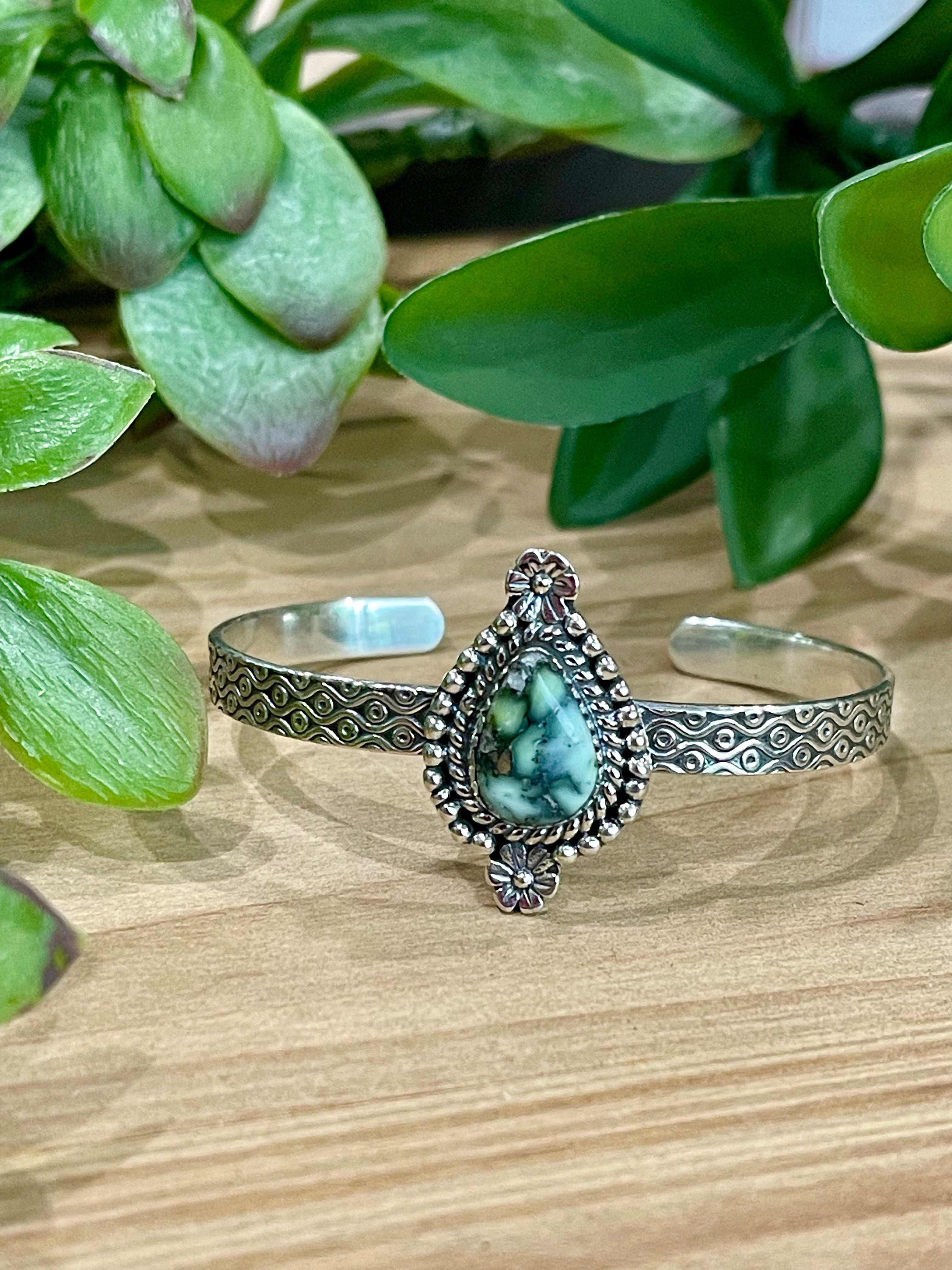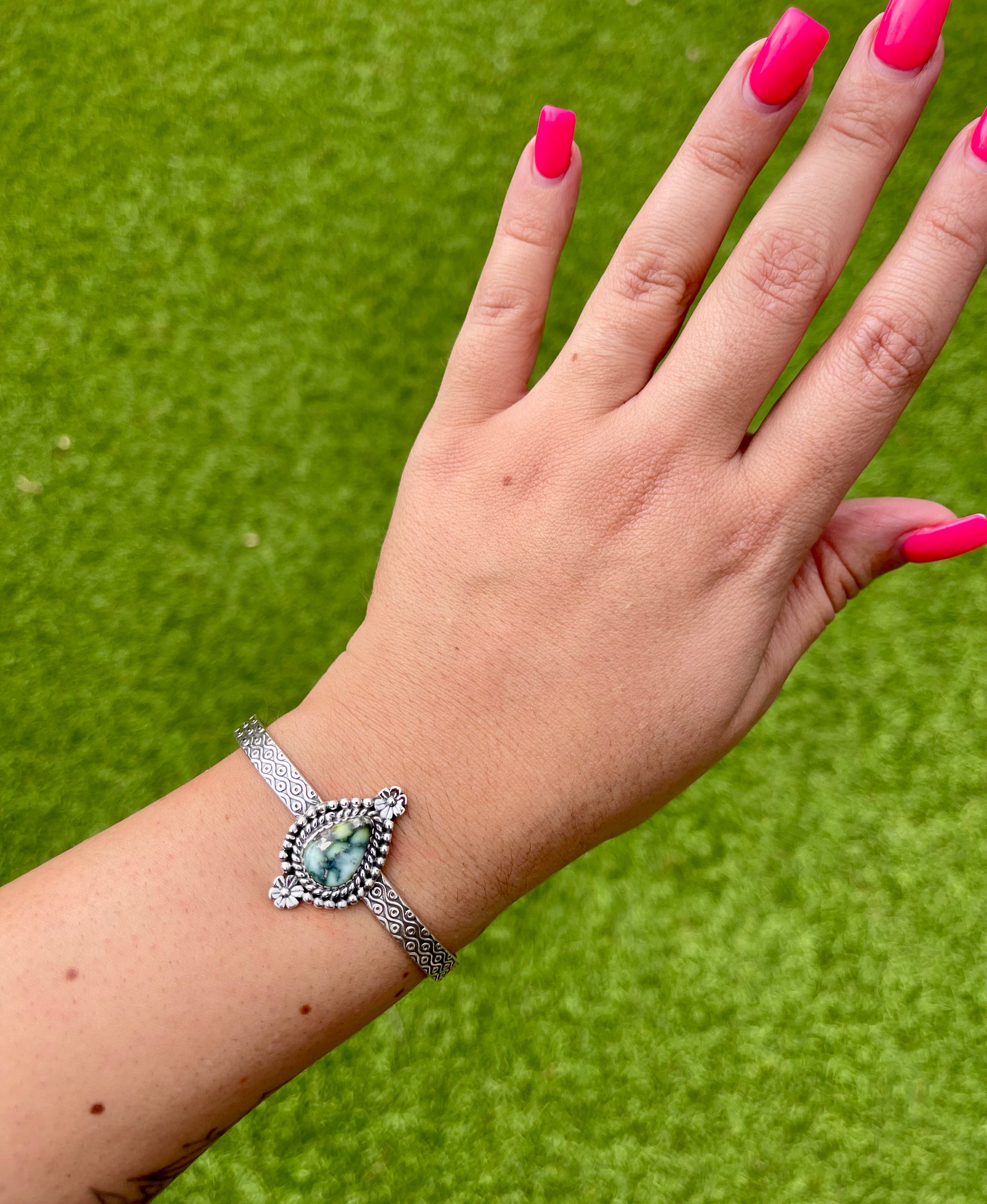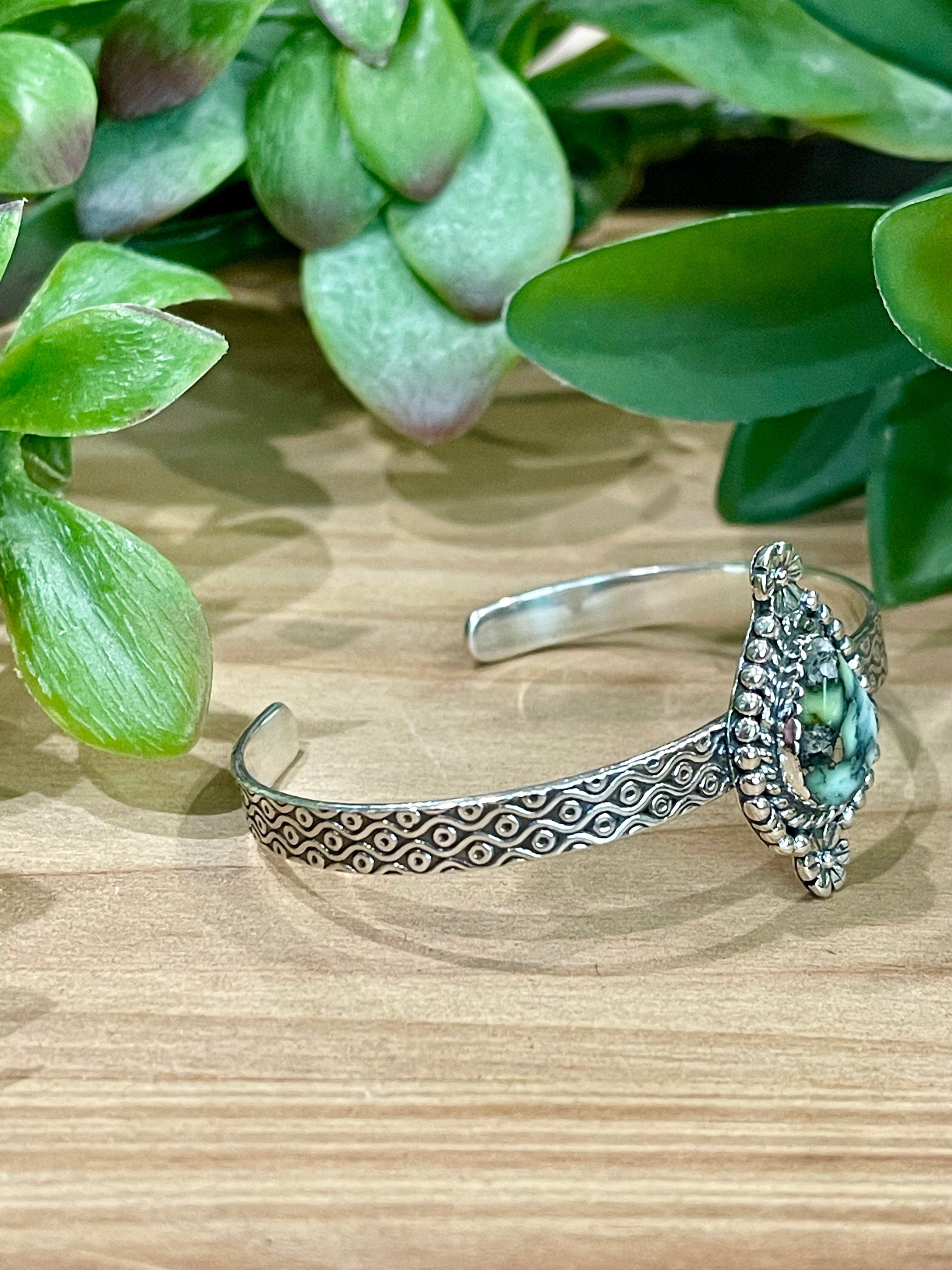 Southwest Handmade Palomino Variscite & Sterling Silver Cuff Bracelet