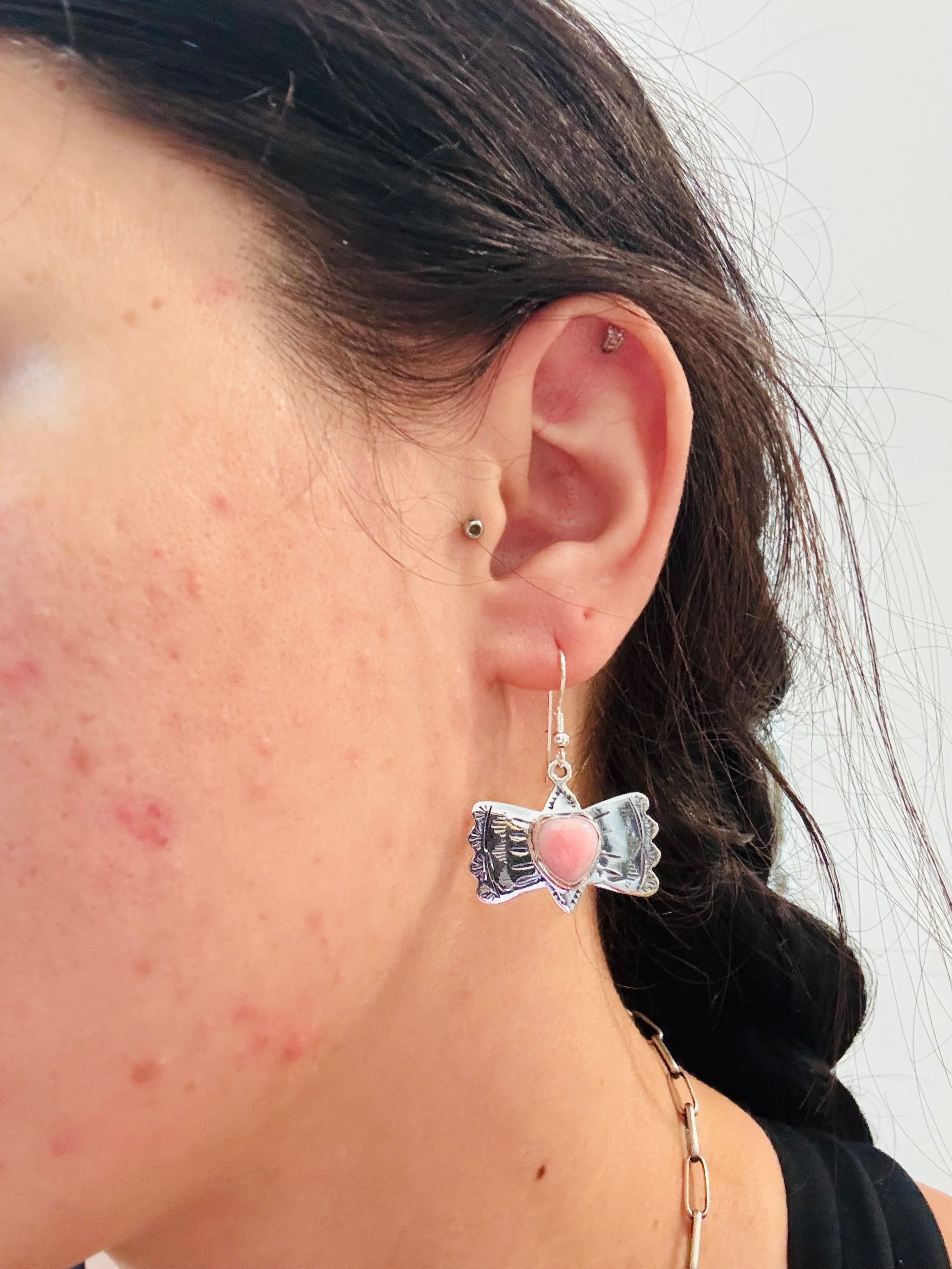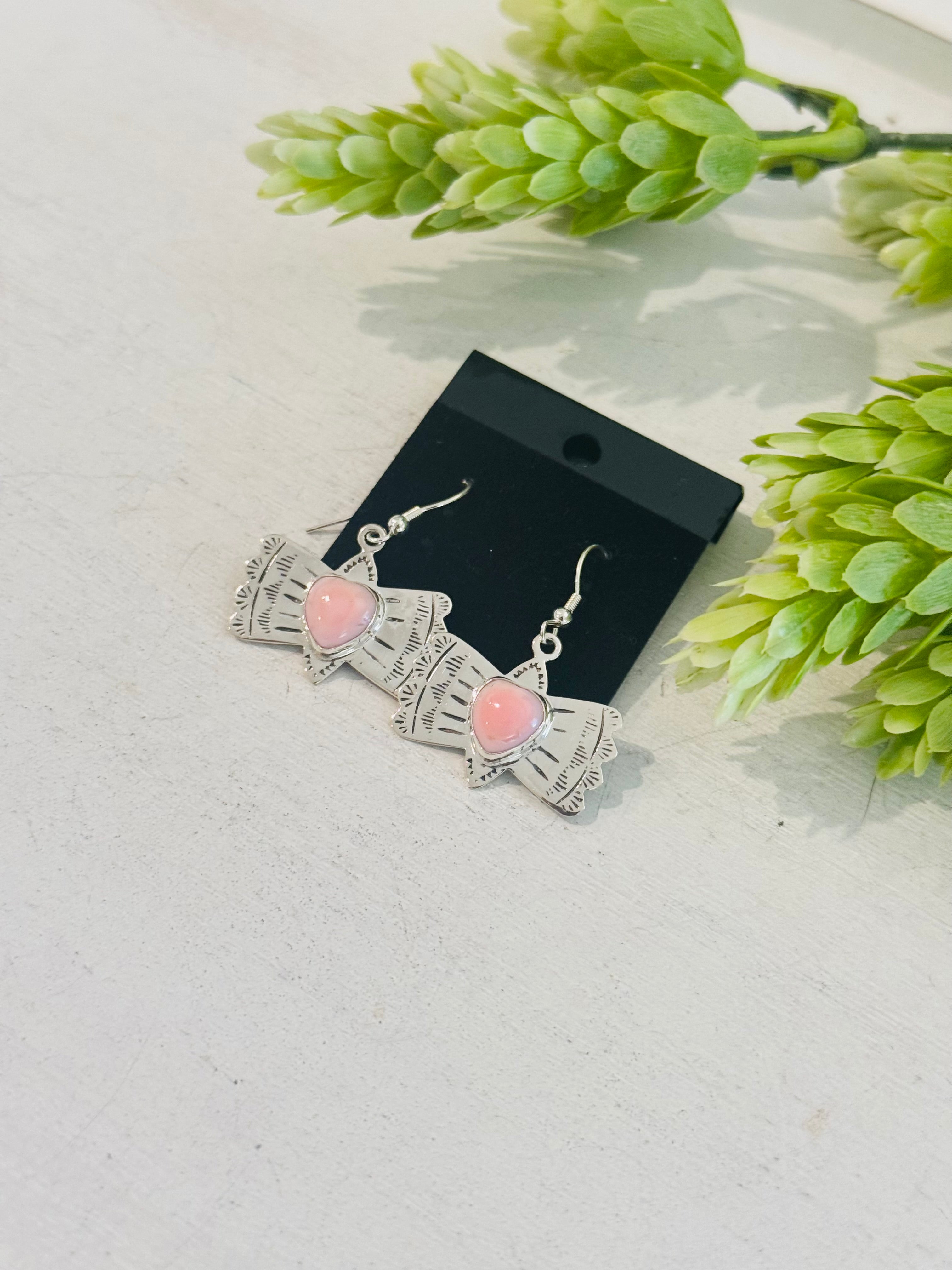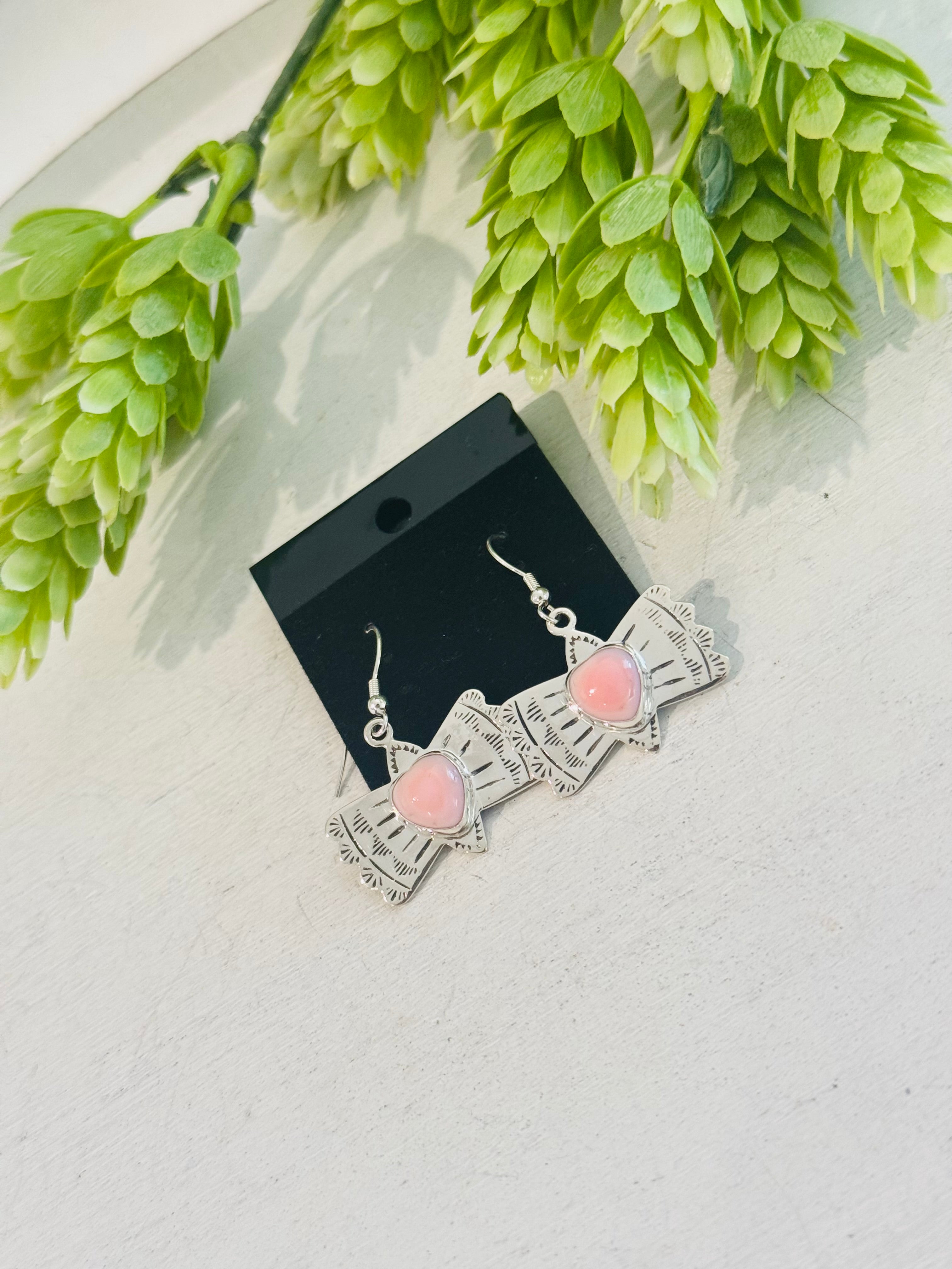 Southwest Made Pink Conch & Sterling Silver Dangle Earrings