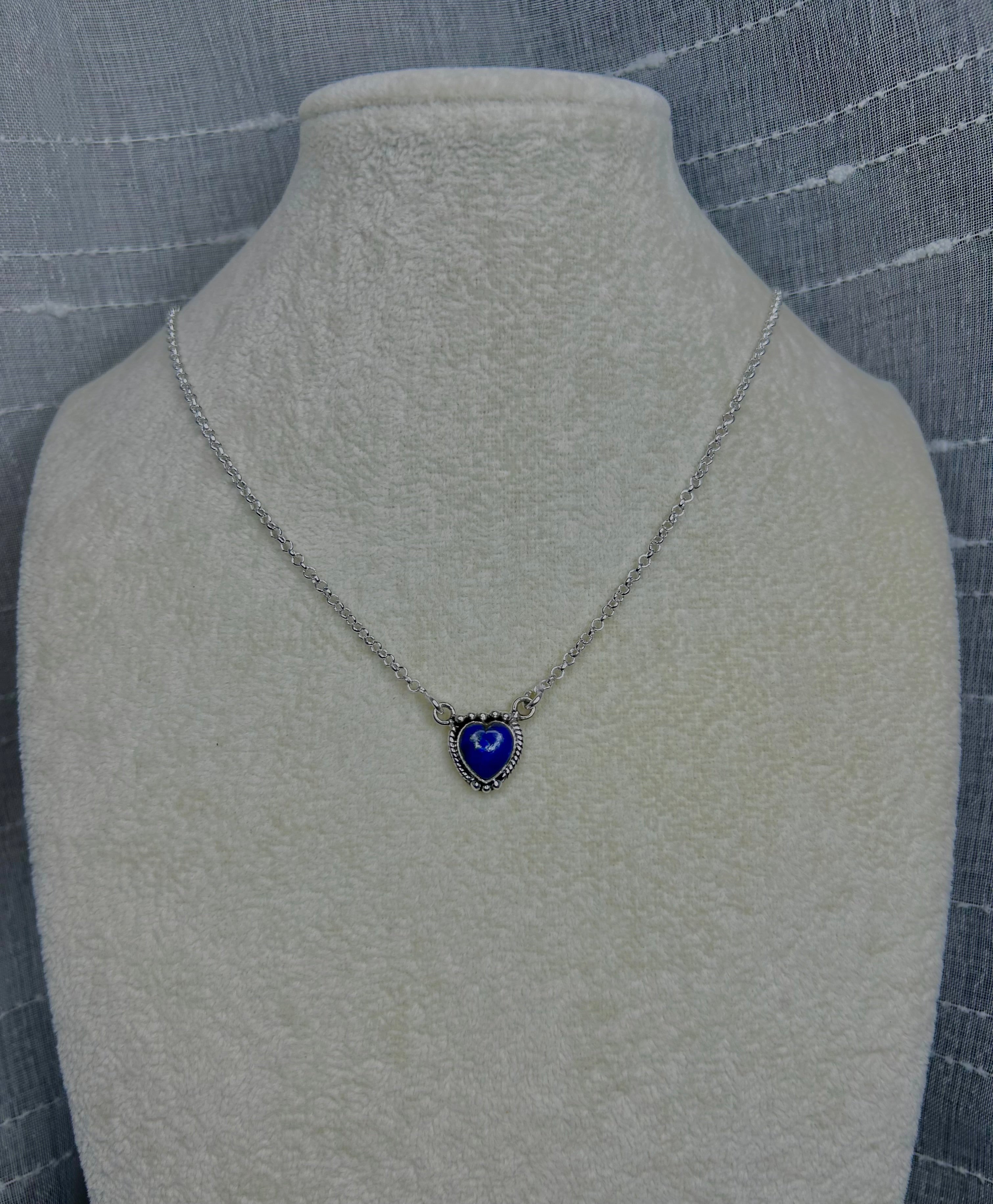 Southwest Made Lapis & Sterling Sliver Heart Necklace