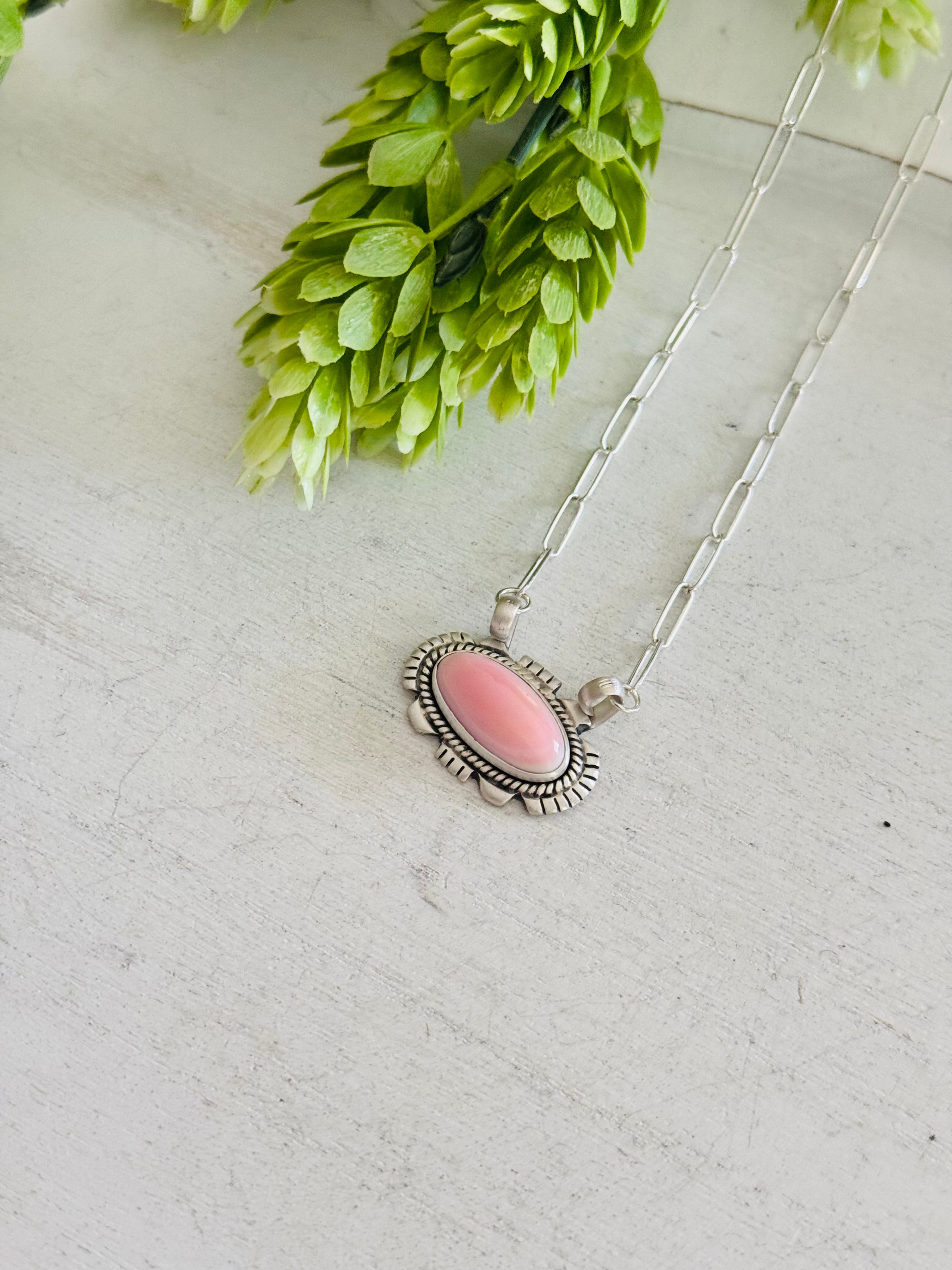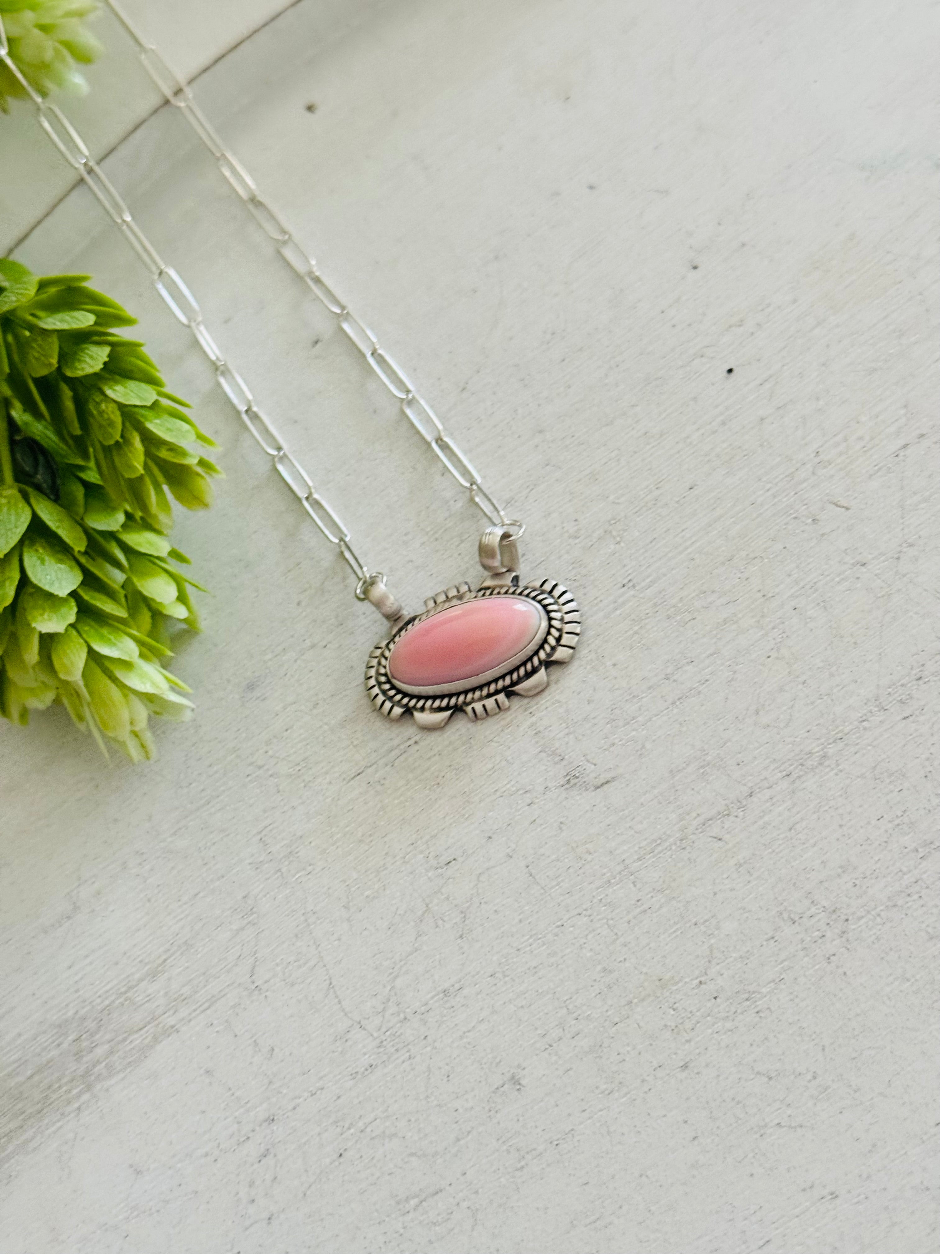 Southwest Made Pink Conch & Sterling Silver Necklace