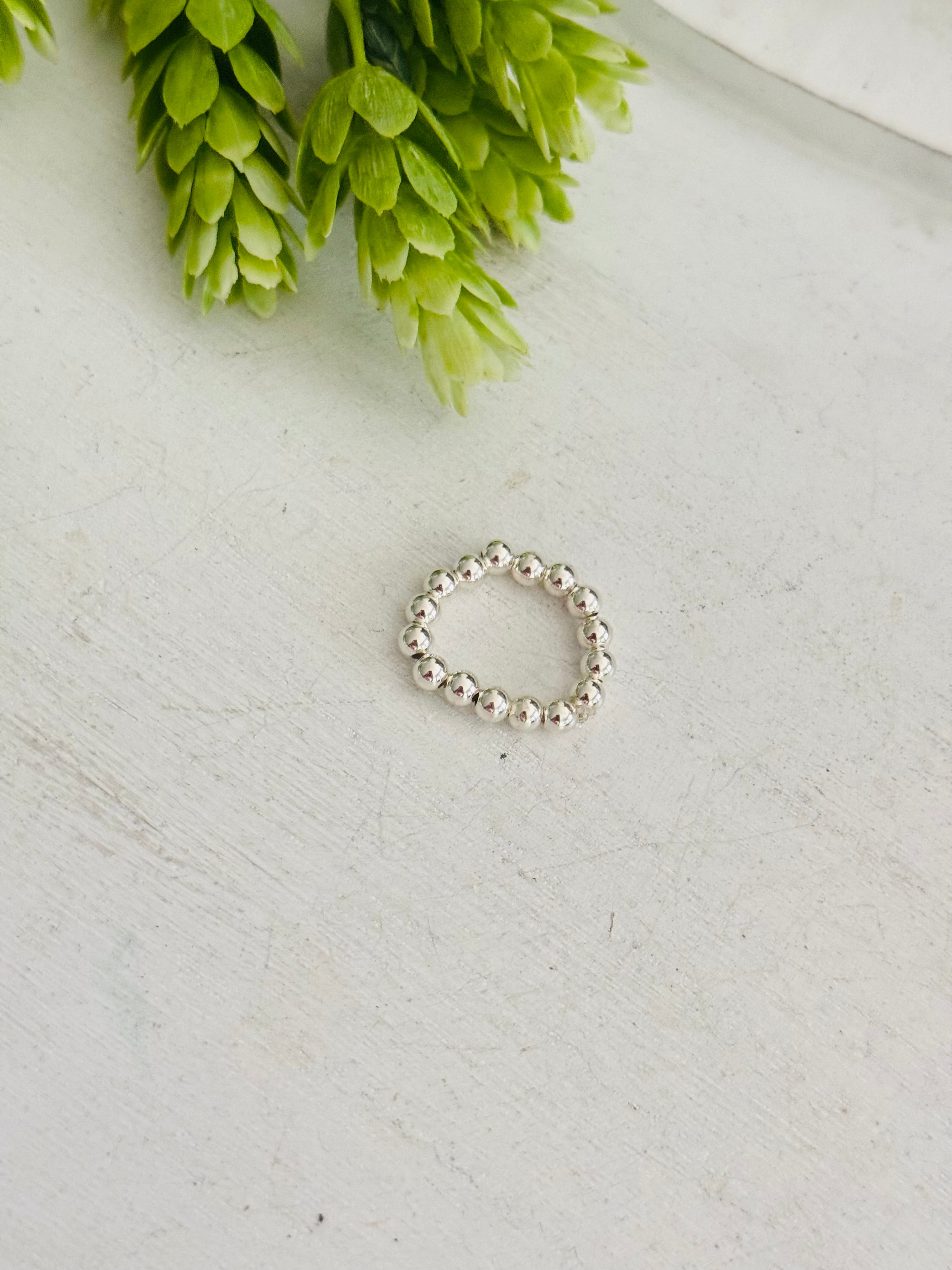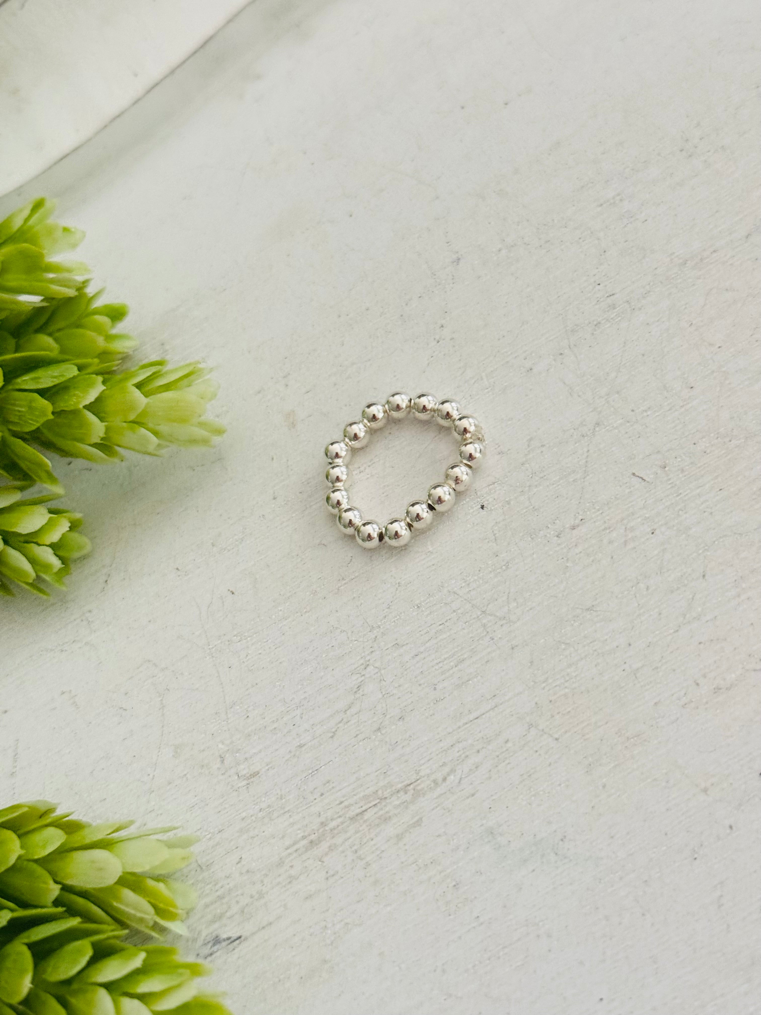 Southwest Made Sterling Sliver Stretch Beaded Ring Size 6-7. It measures 1/4 of an inch long.
