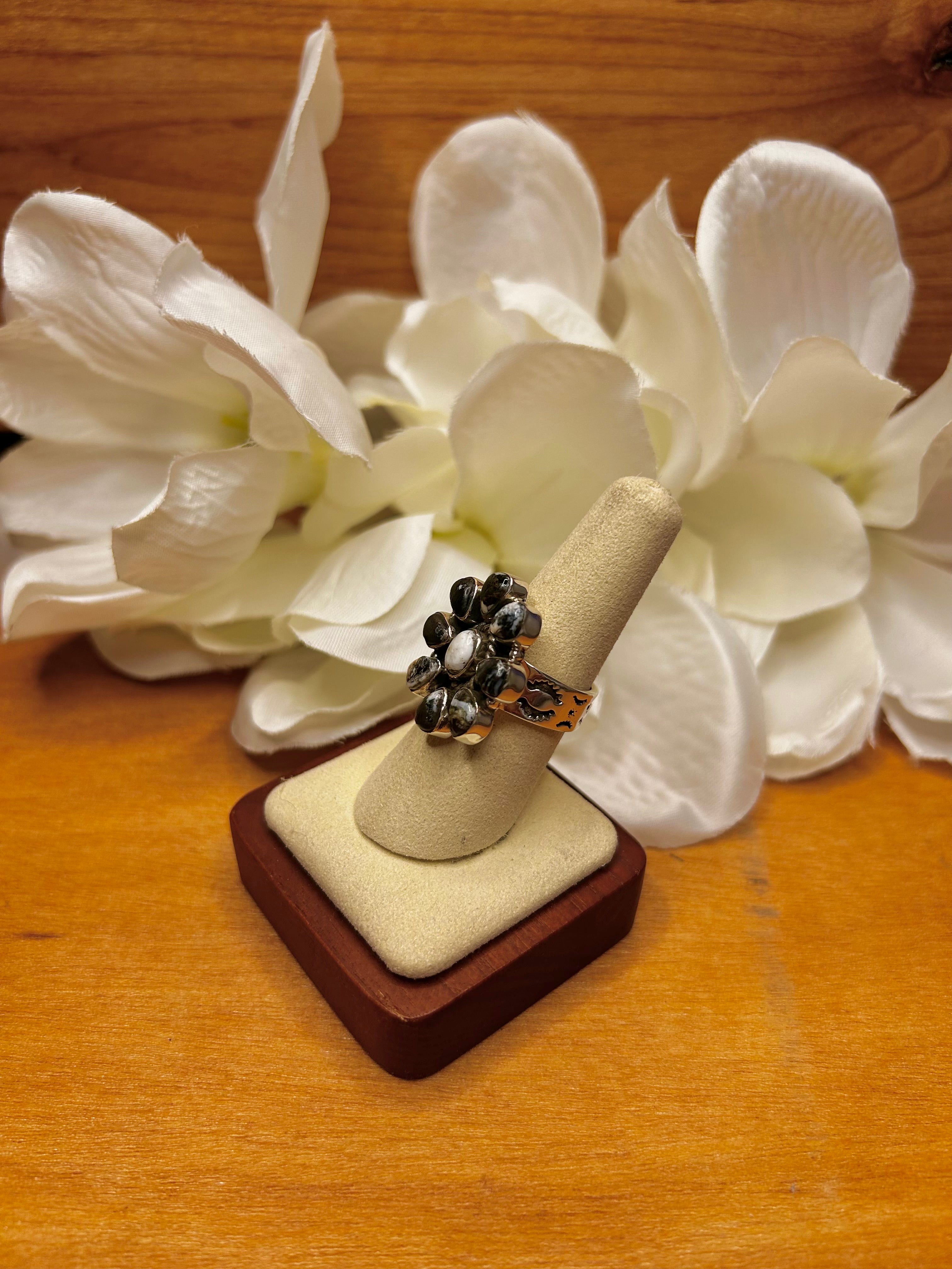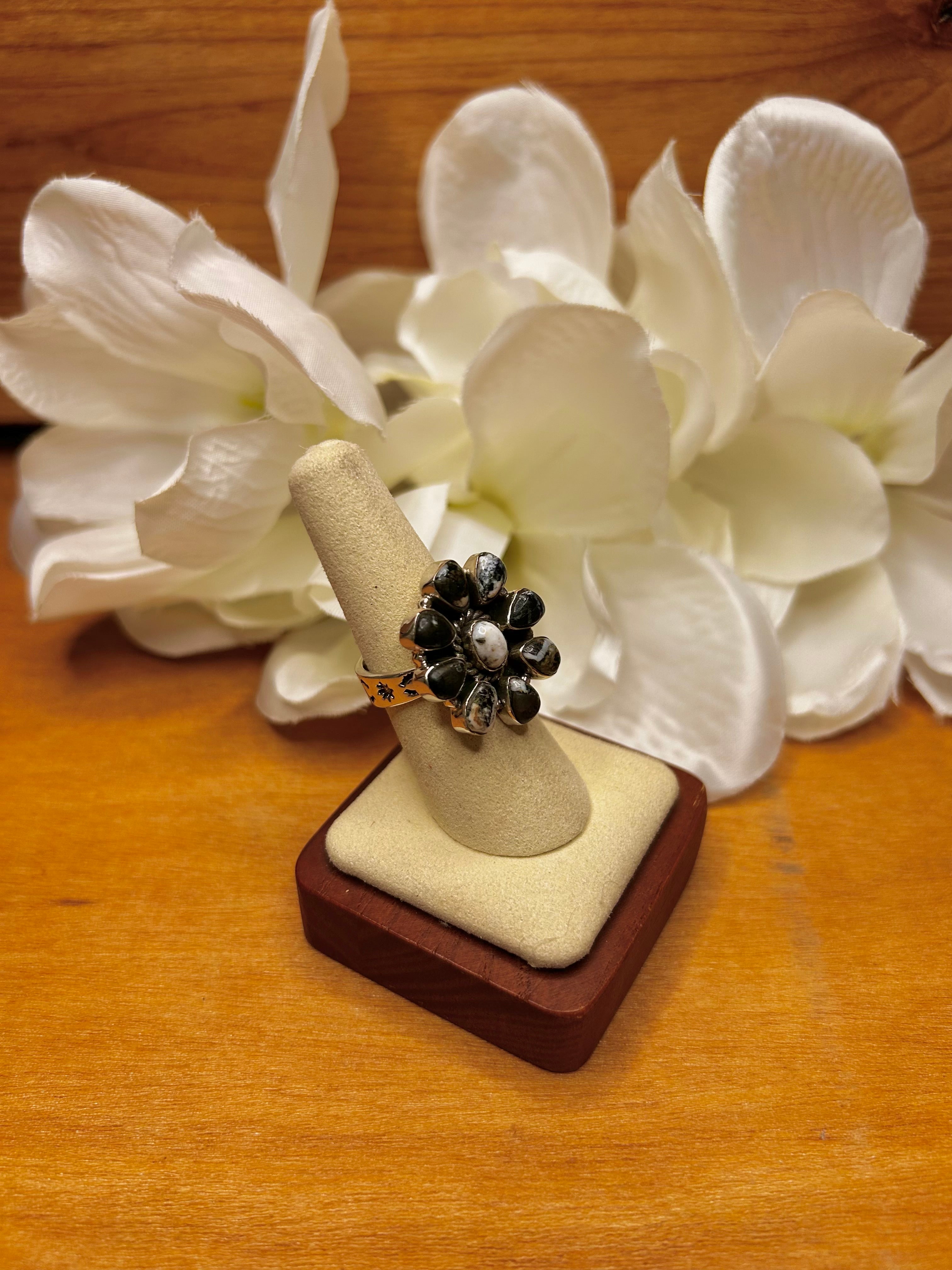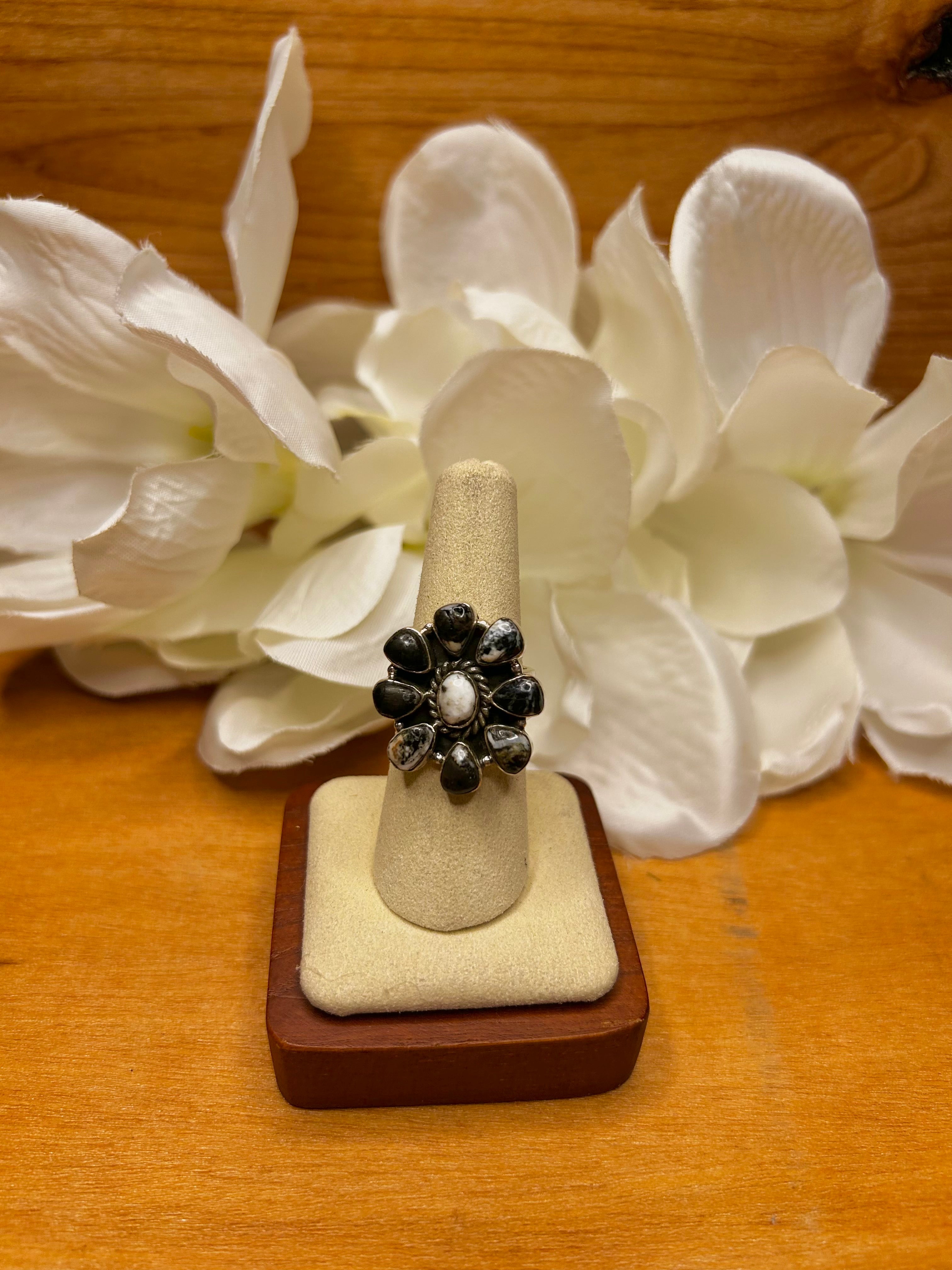 Southwest Made White Buffalo & Sterling Sliver Cluster Adjustable Ring