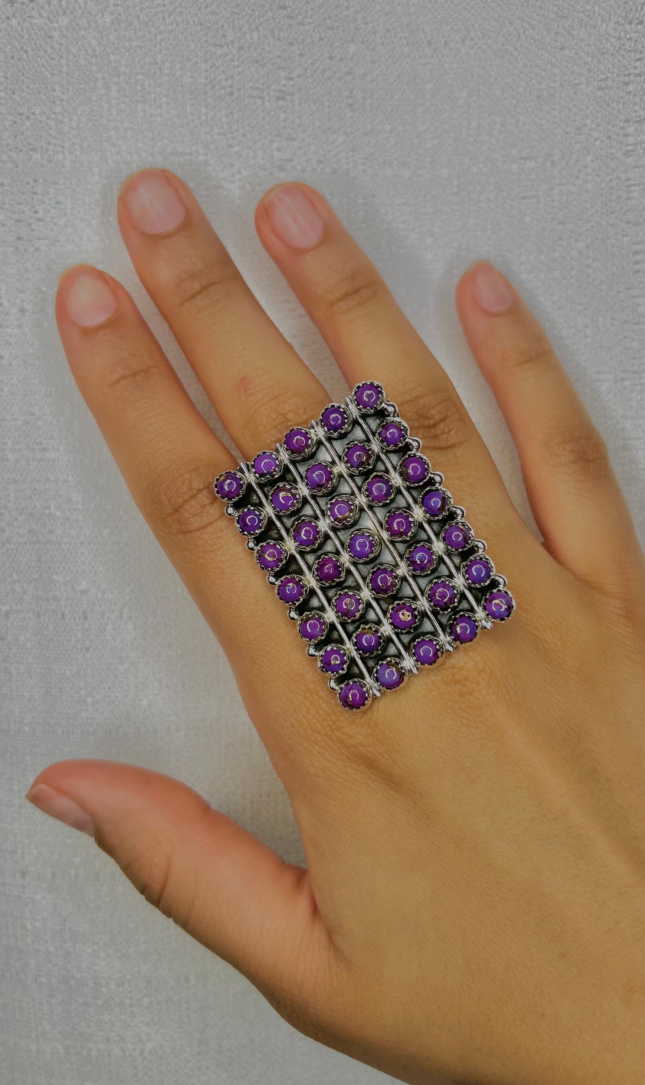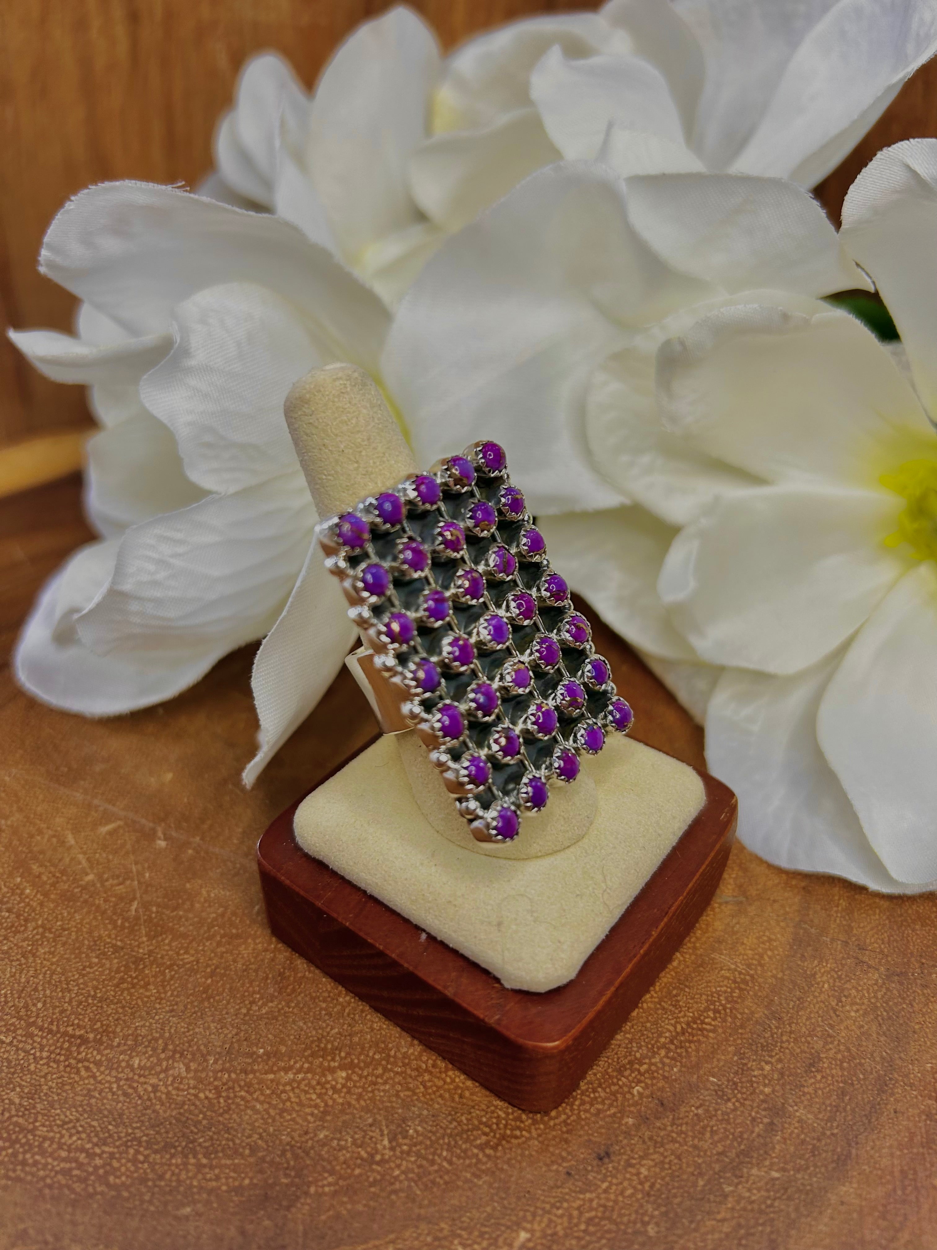 Southwest Made Purple Mohave & Sterling Sliver Cluster Adjustable Ring Size 9.75