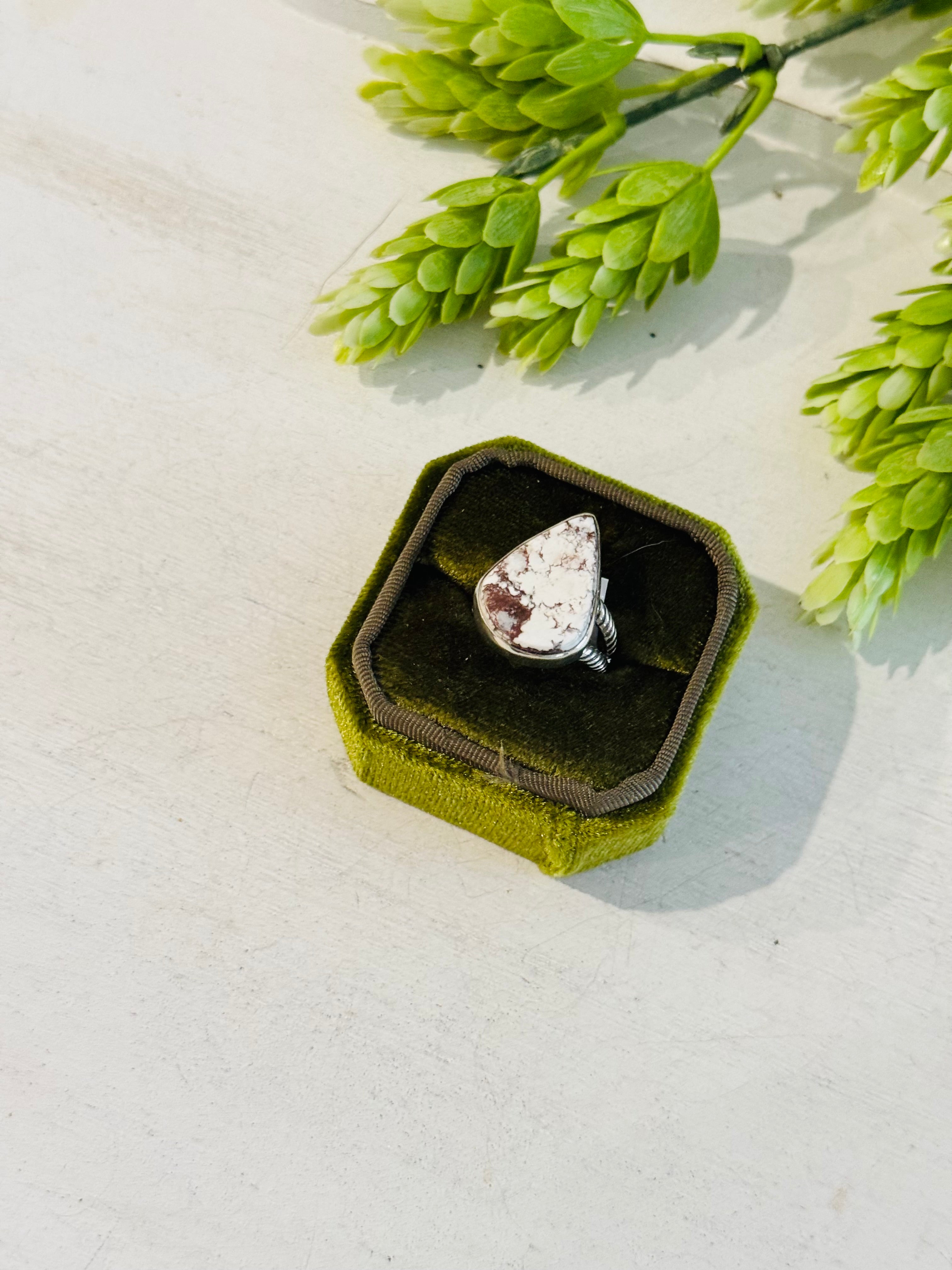 Southwest Made Wild Horse & Sterling Sliver Ring Size 6.75. It measures 7/8 of an inch long and 5/8 of an inch wide.