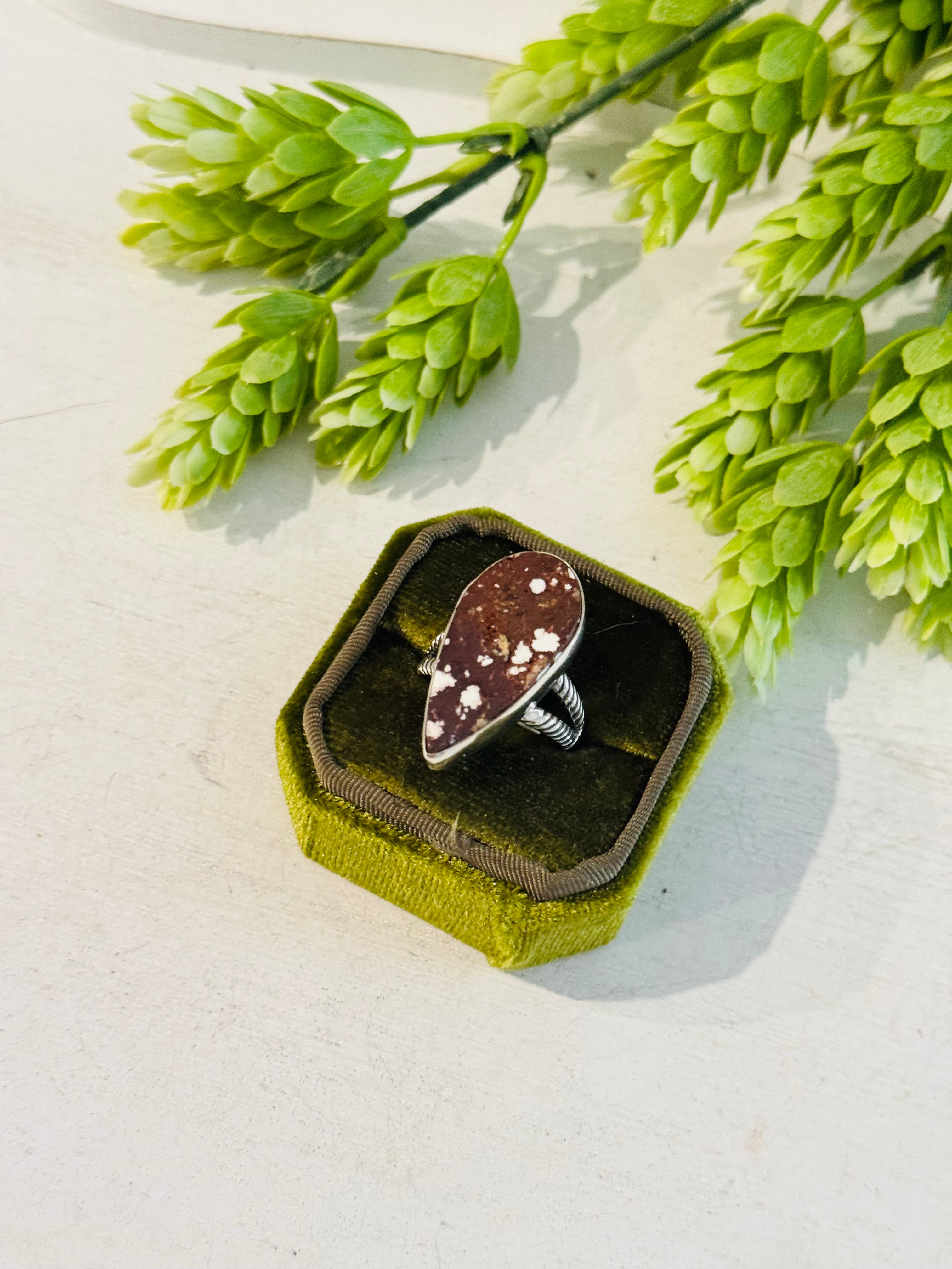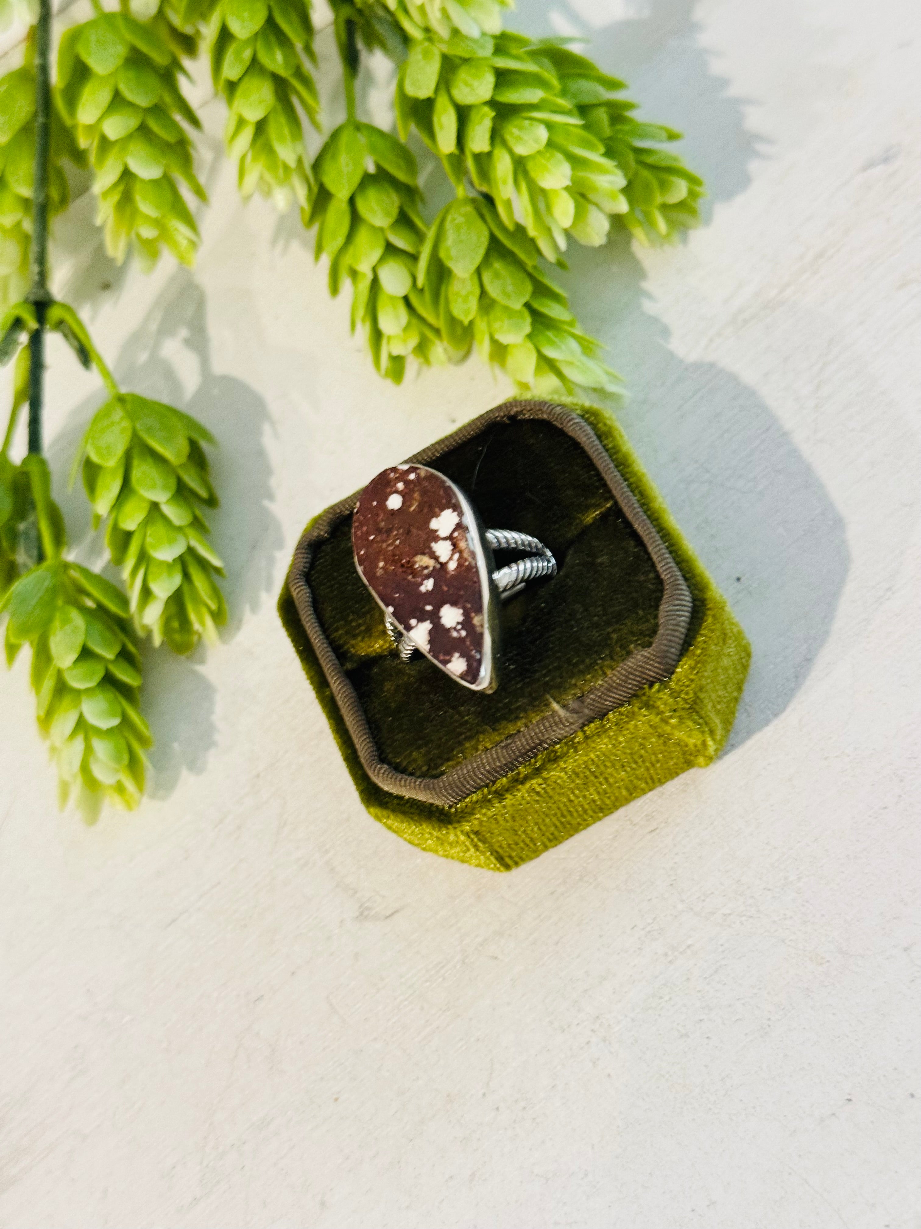 Southwest Made Wild Horse & Sterling Sliver Ring Size 9.75. It measures 1 1/8 inches long and 5/8 of an inch wide.