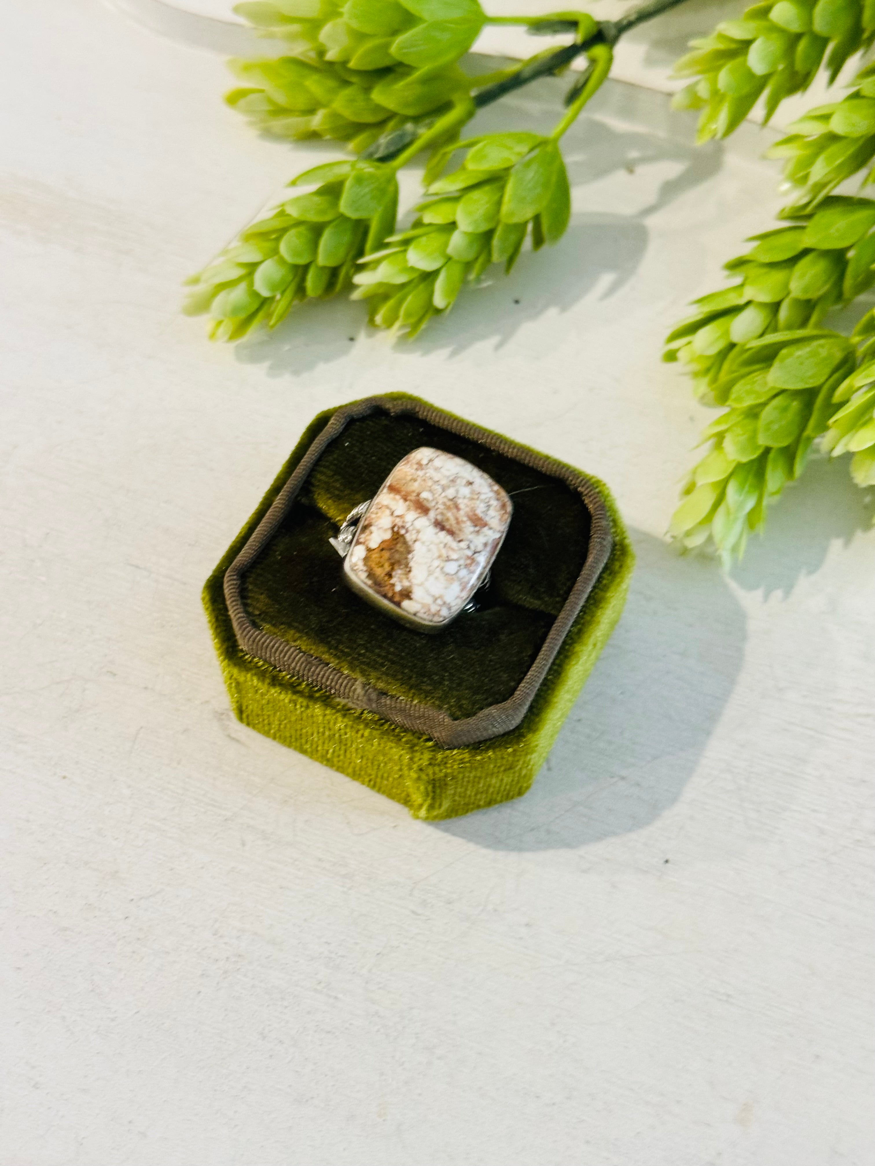 Southwest Made Wild Horse & Sterling Sliver Ring Size 8.75. It measures 7/8 of an inch long and 3/4 of an inch wide.