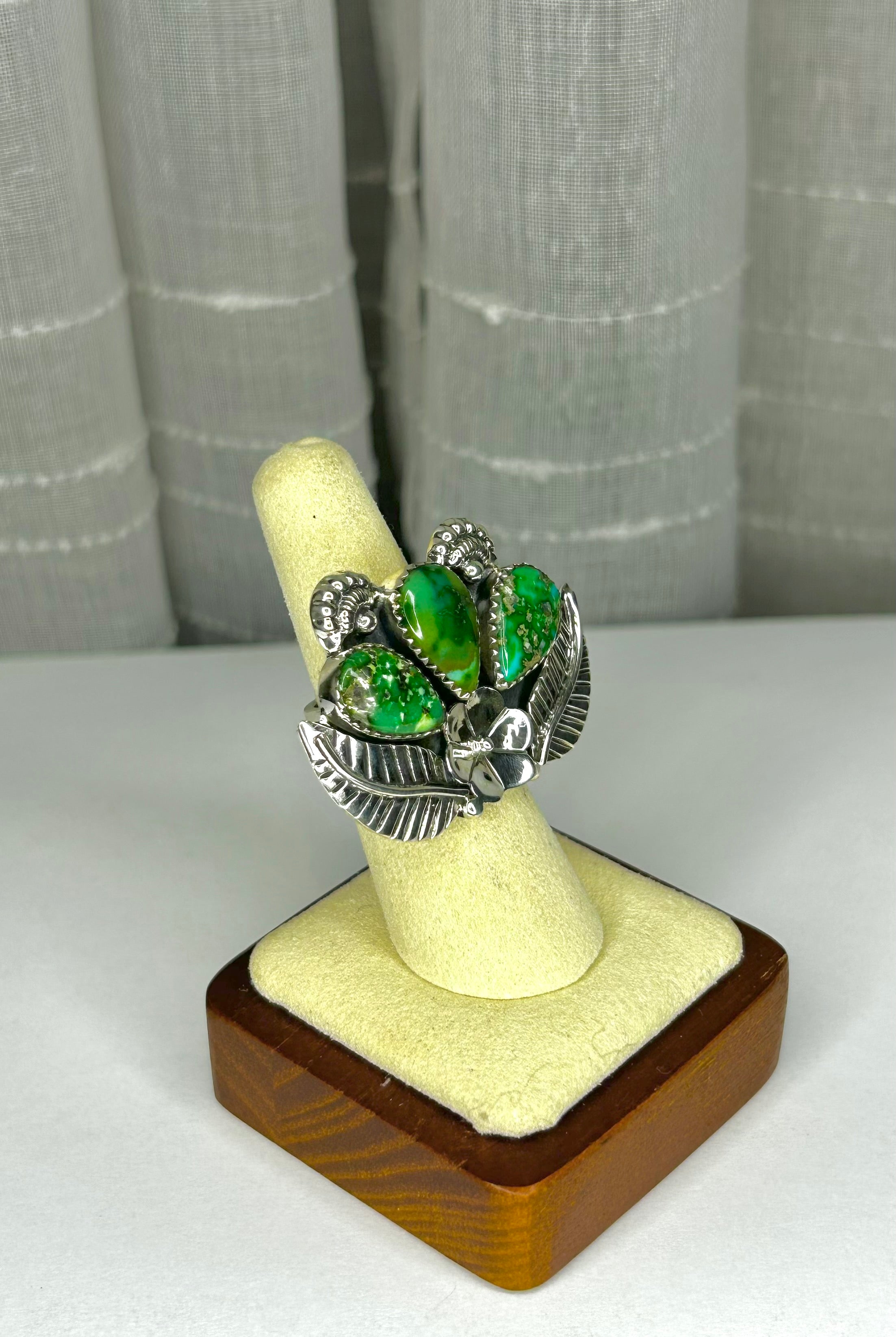 Southwest Made Sonoran Mountain Turquoise & Sterling Sliver Cluster Ring Size 7
