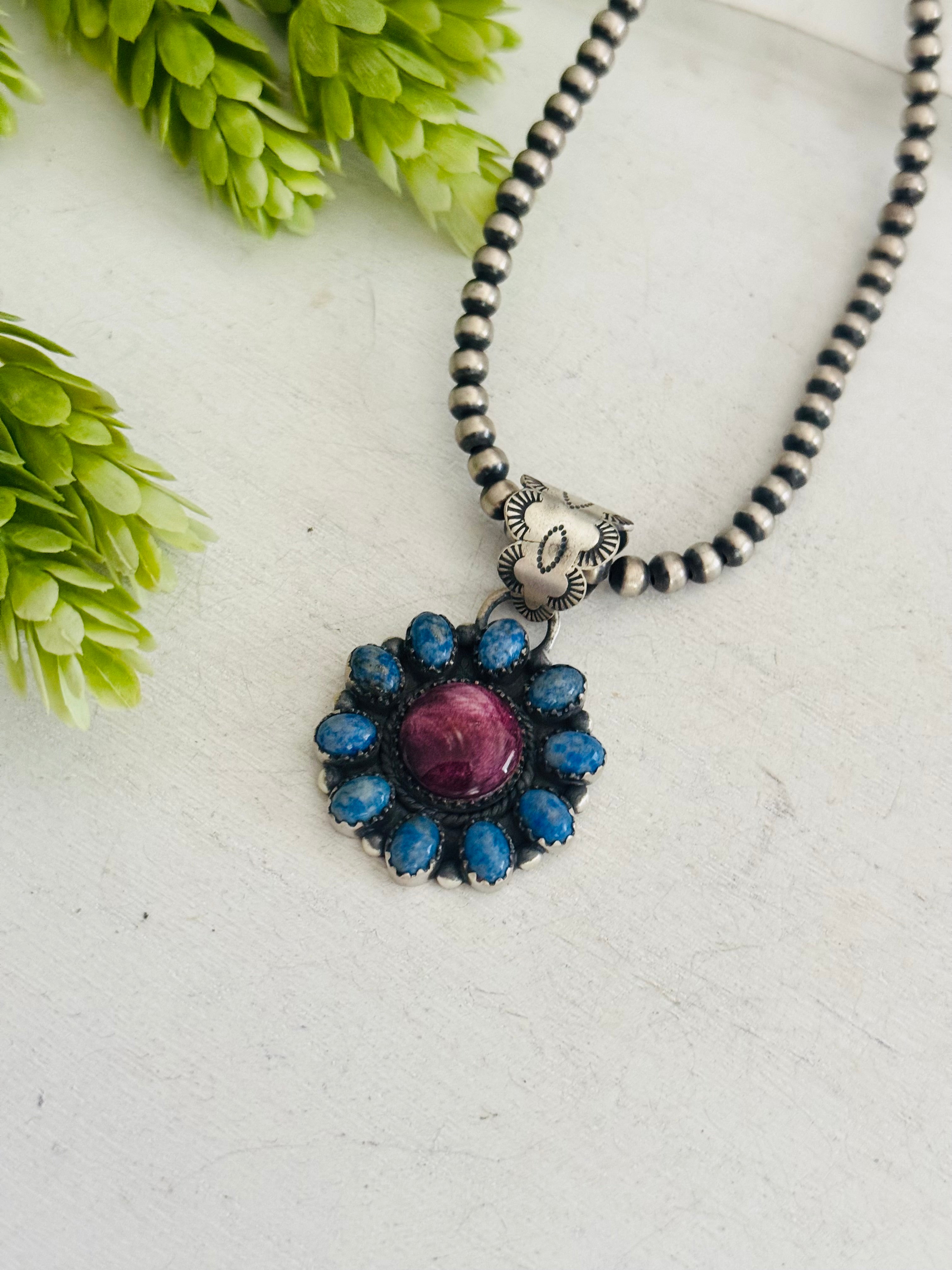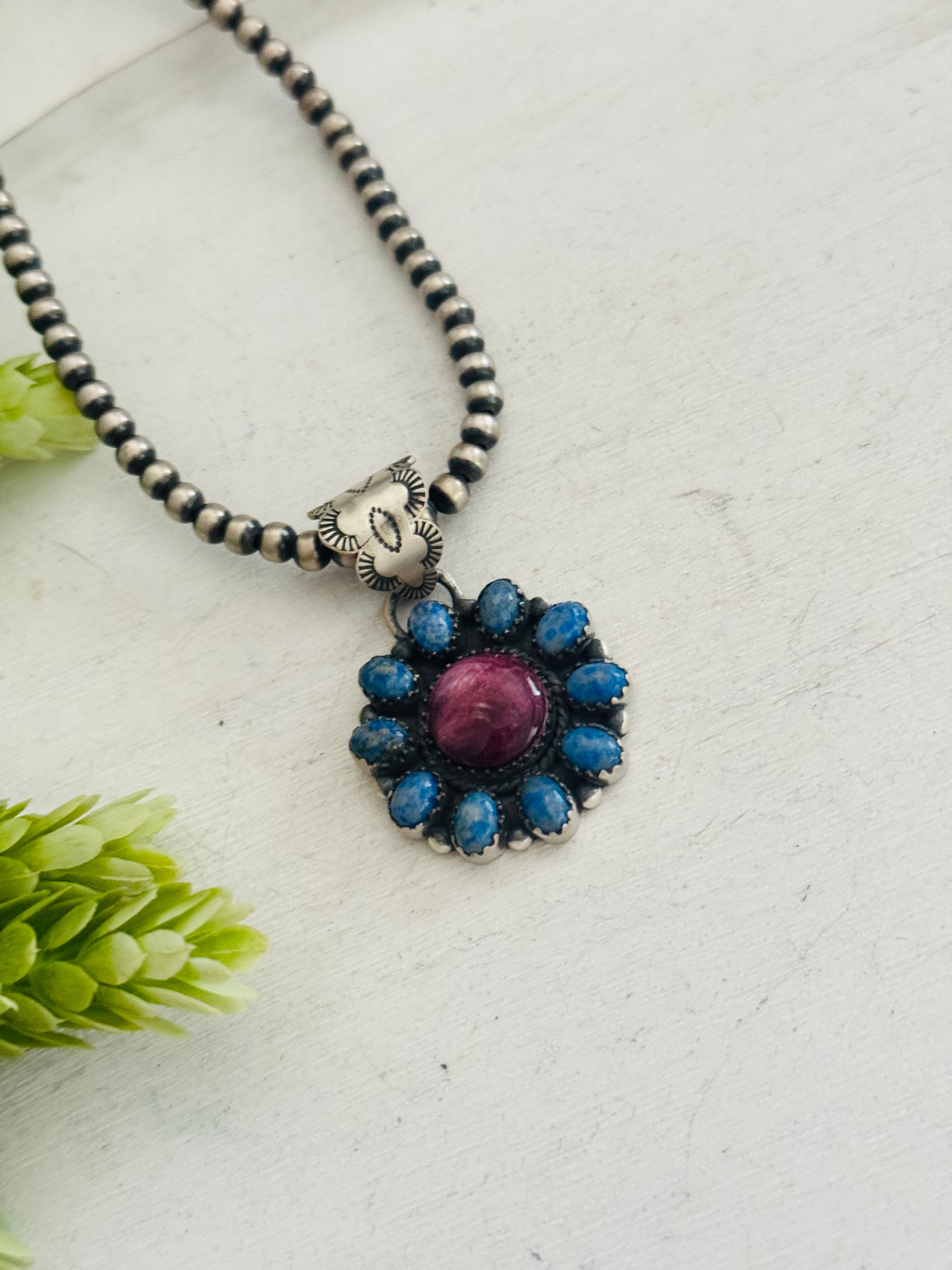 Southwest Multi Stone & Sterling Silver Cluster Pendant