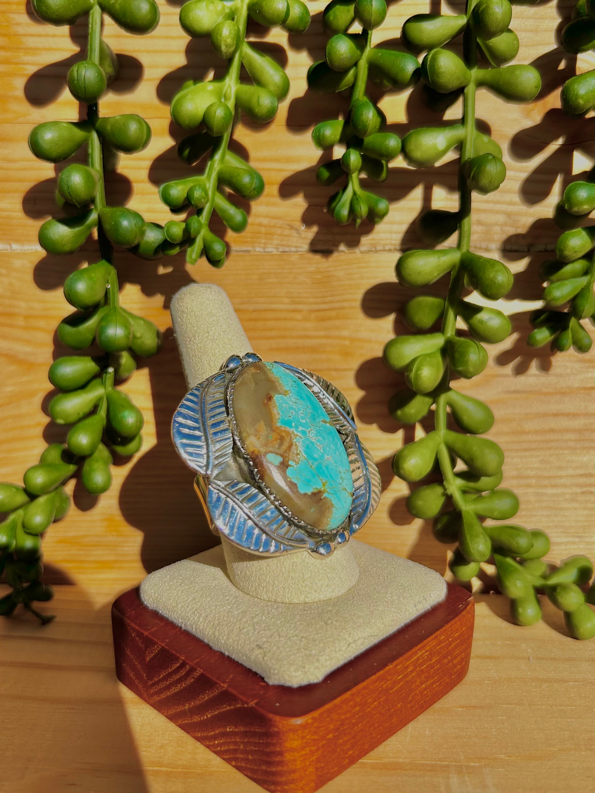 Southwest Number 8 Turquoise & Sterling Silver Ring Size 10.75