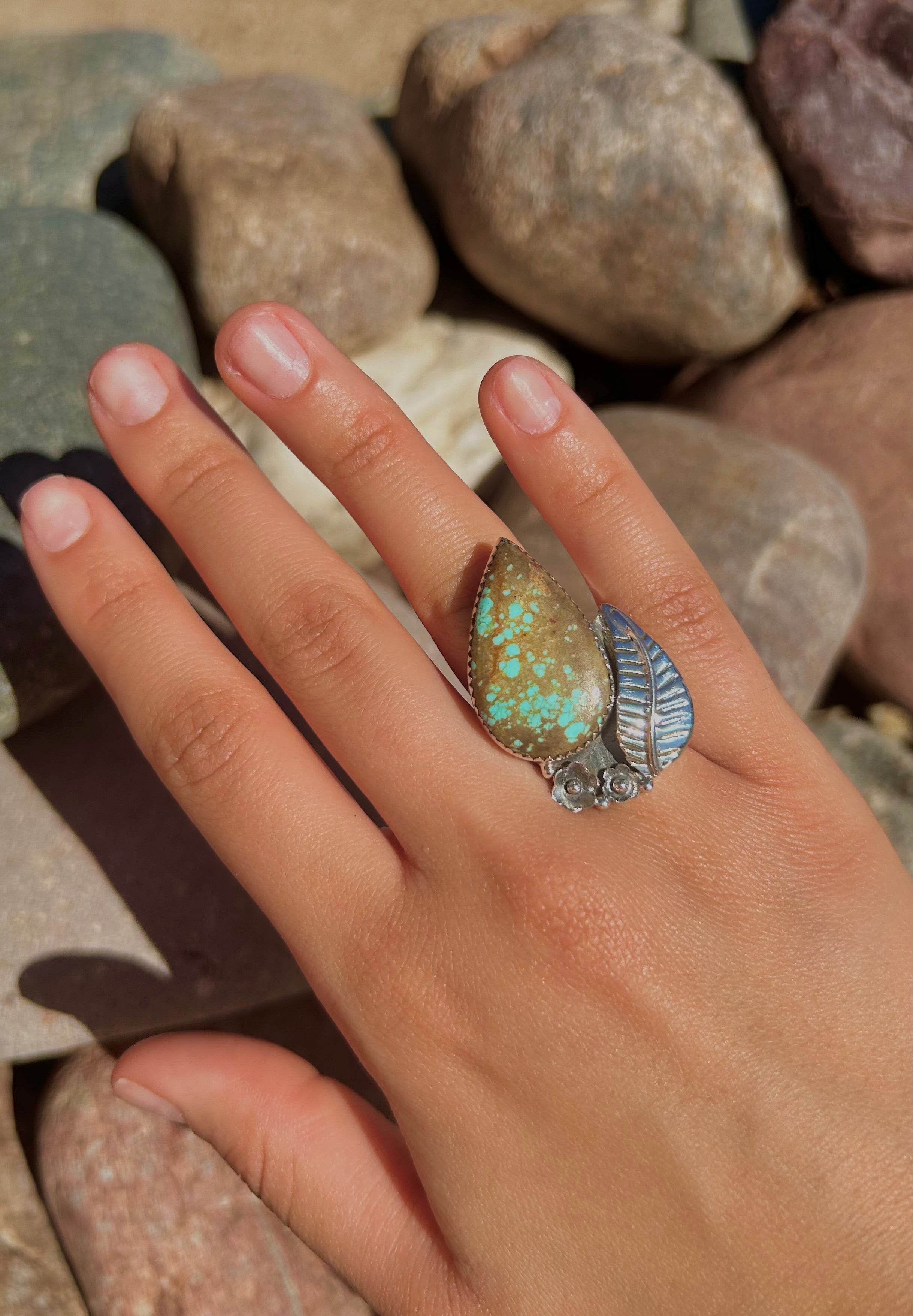 Southwest Number 8 Turquoise & Sterling Silver Ring Size 9