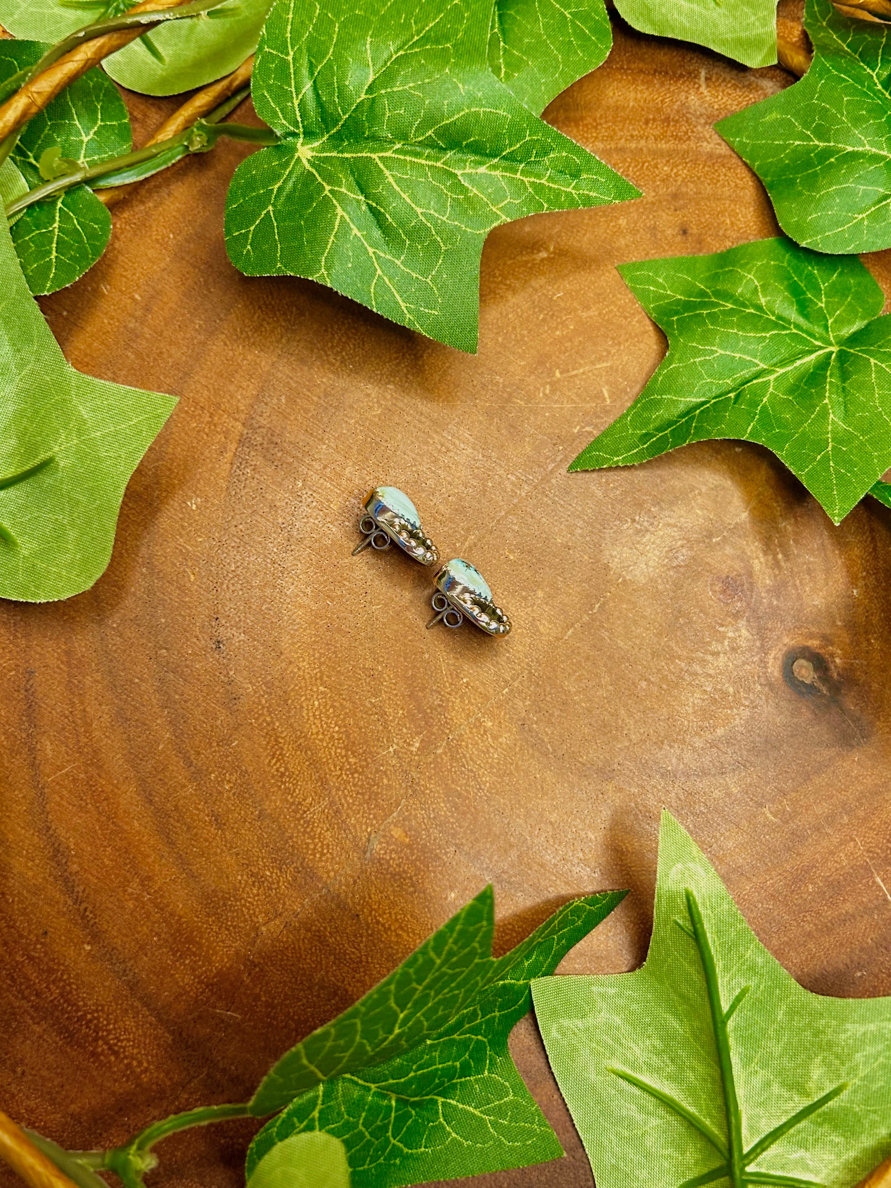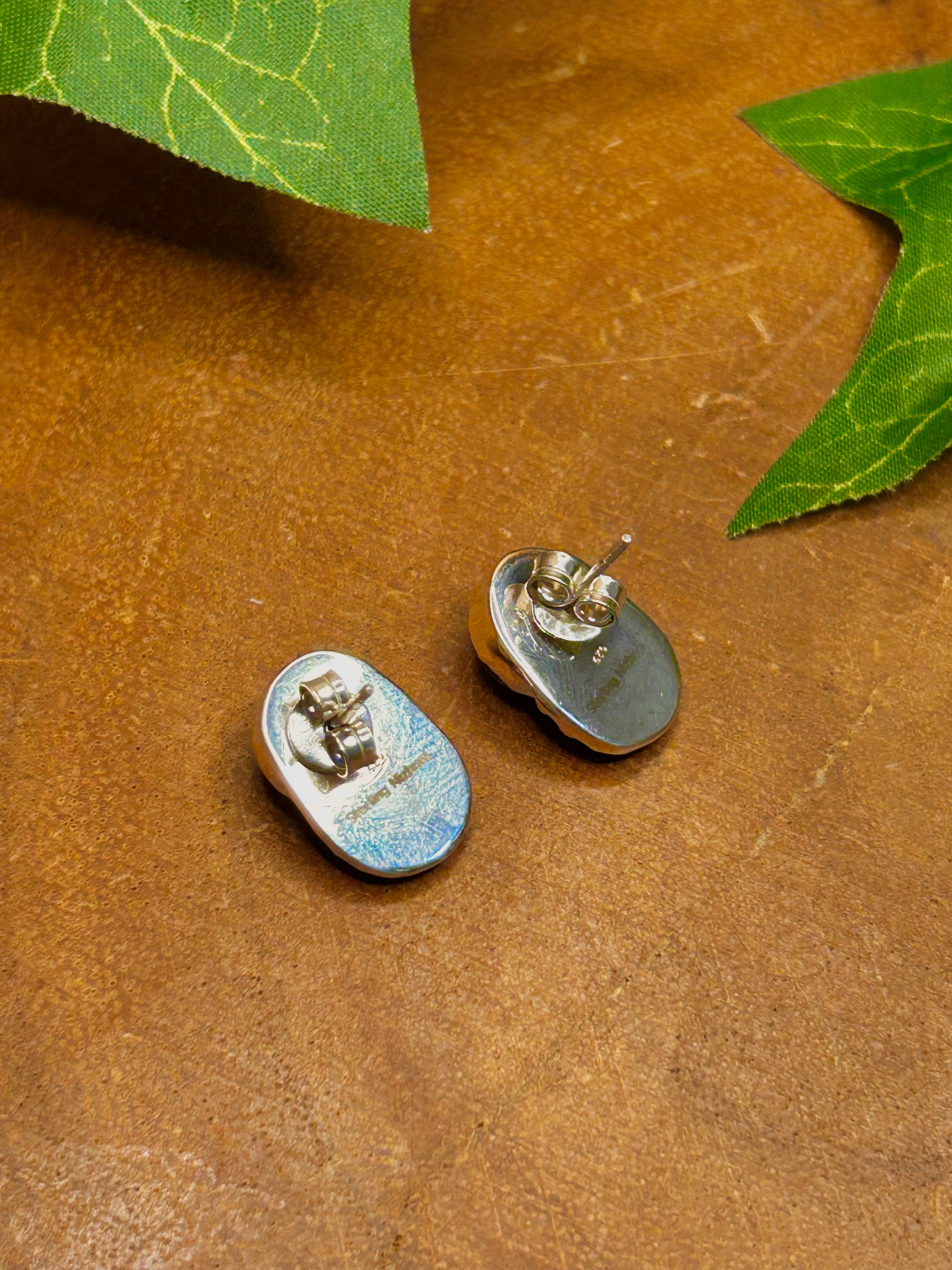 Southwest Made Golden Hill’s Turquoise & Sterling Silver Post Earrings. It measures 5/8 of an inch long and just a little over 3/8 of an inch wide. Stones may differ due to natural stones.