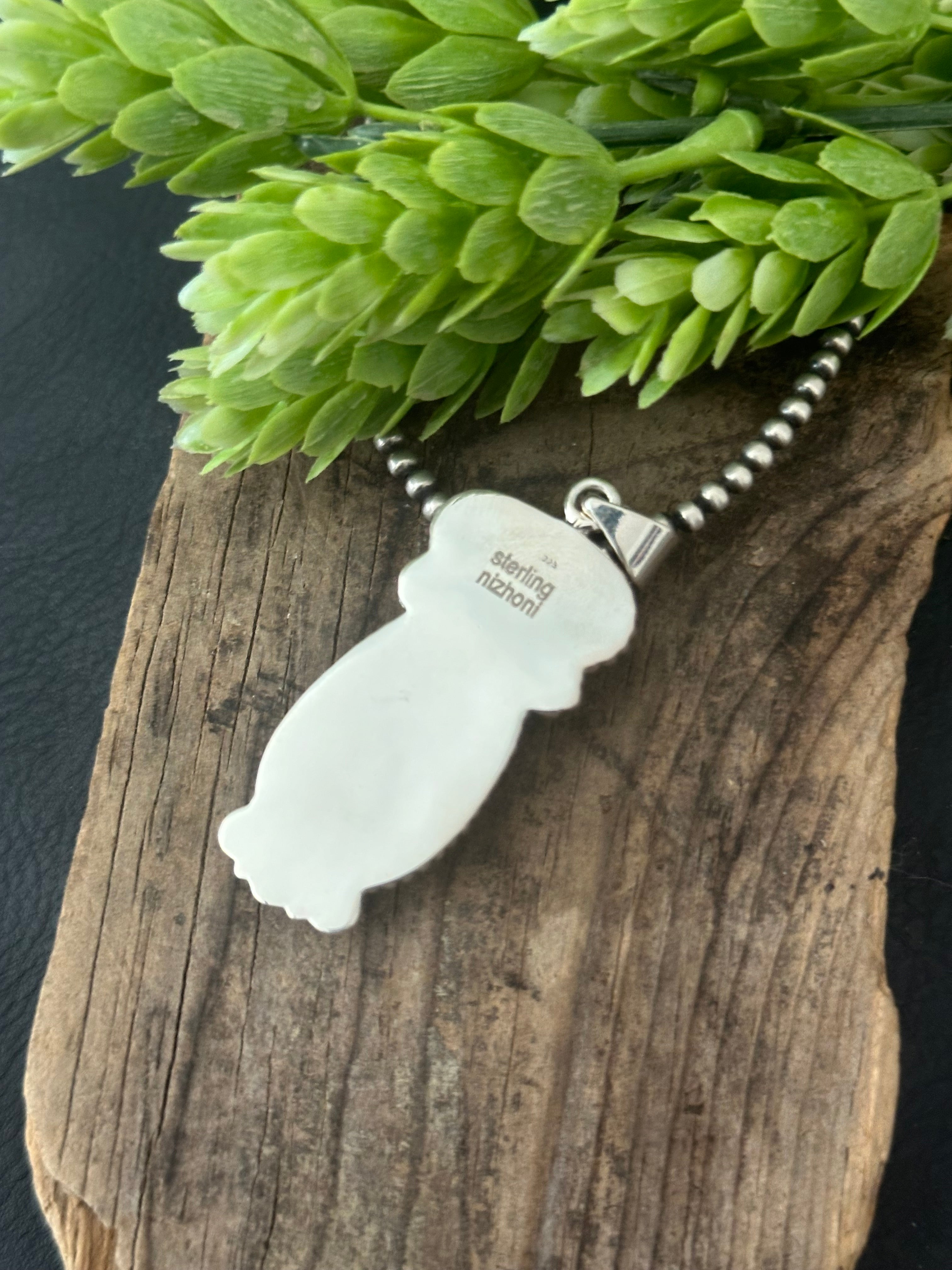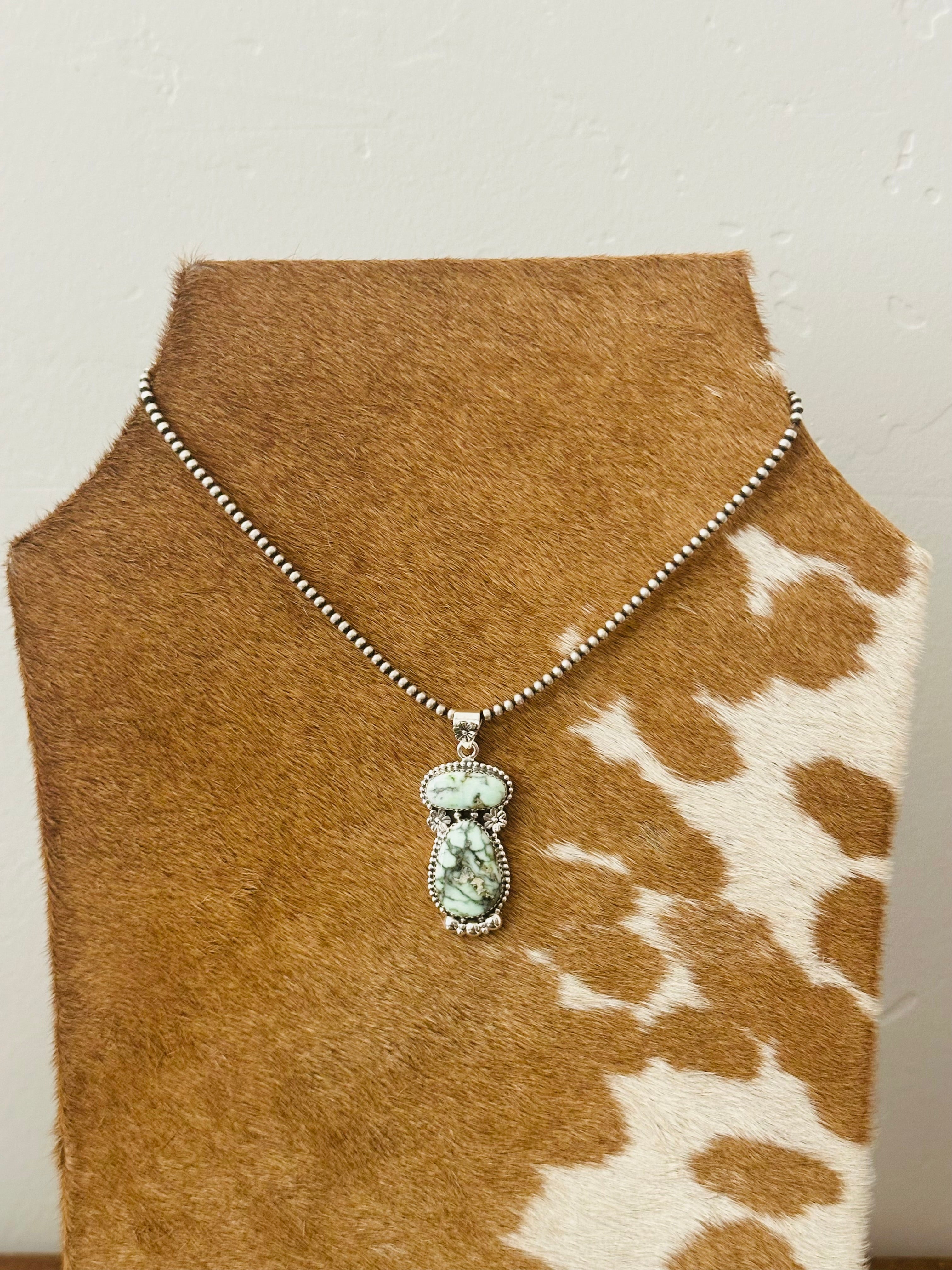 Beautiful Necklace. Southwest Made Palomino Variscite & Sterling Silver Pendant. It measures 2 1/4 inches long and 1 1/8 inches wide. Signed by the artist and stamped sterling silver.