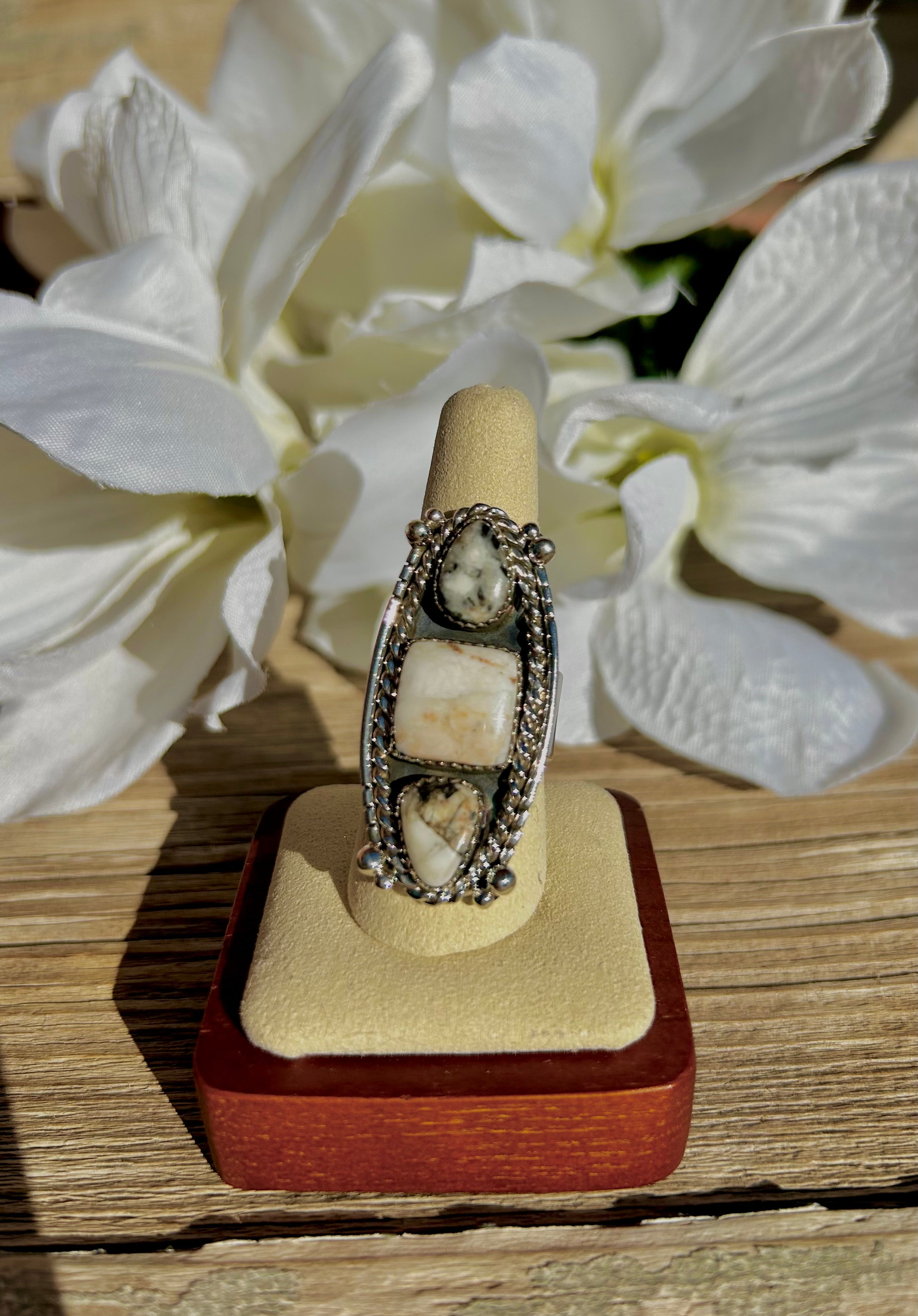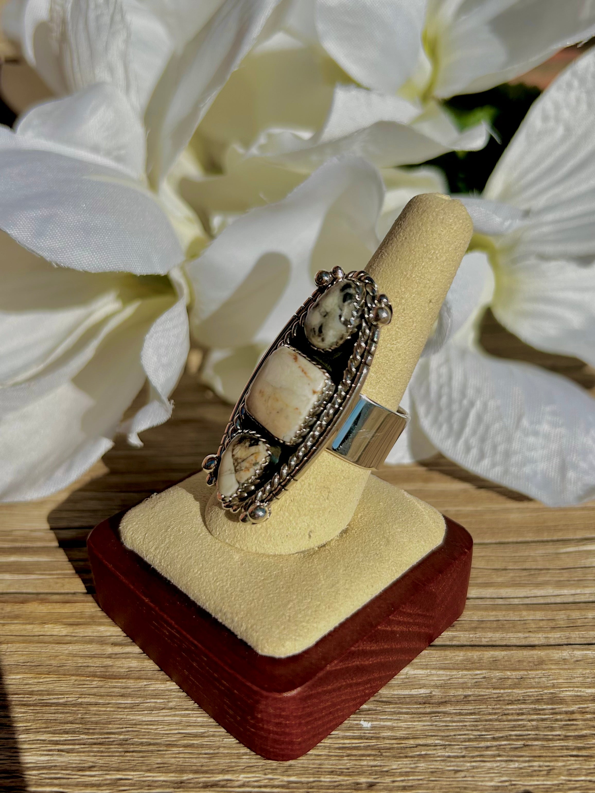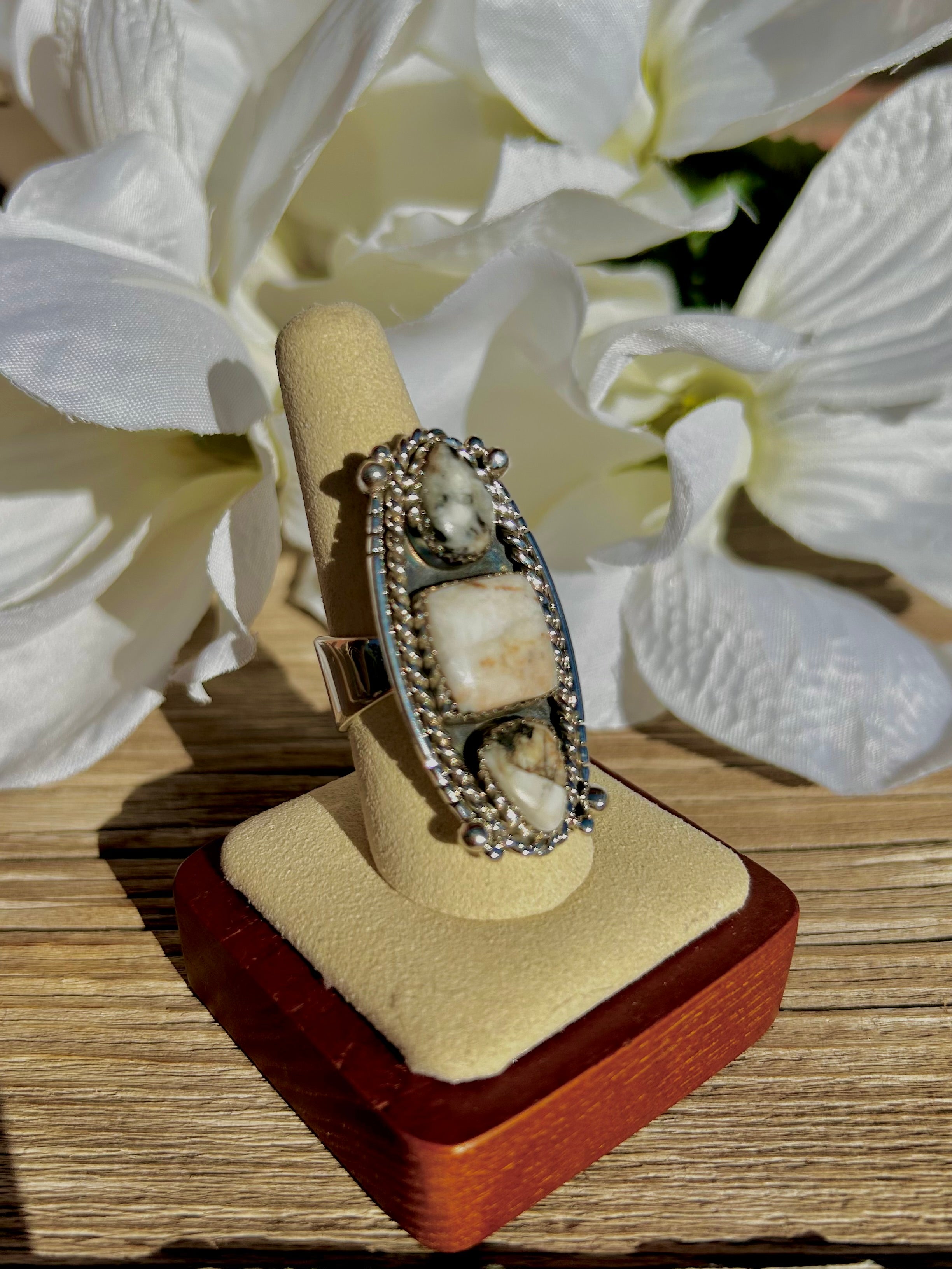 Southwest White Buffalo & Sterling Silver Ring Size 9.75