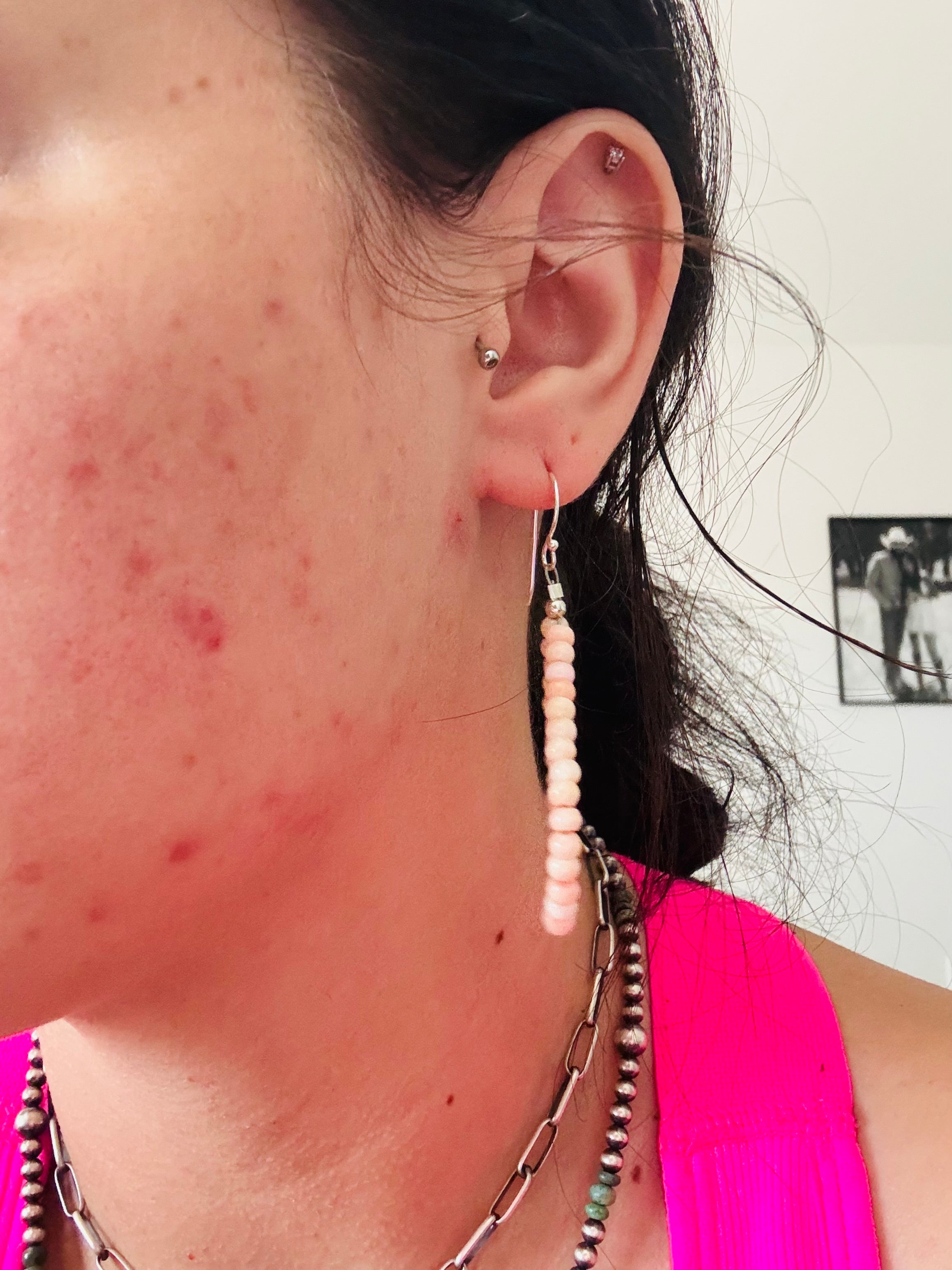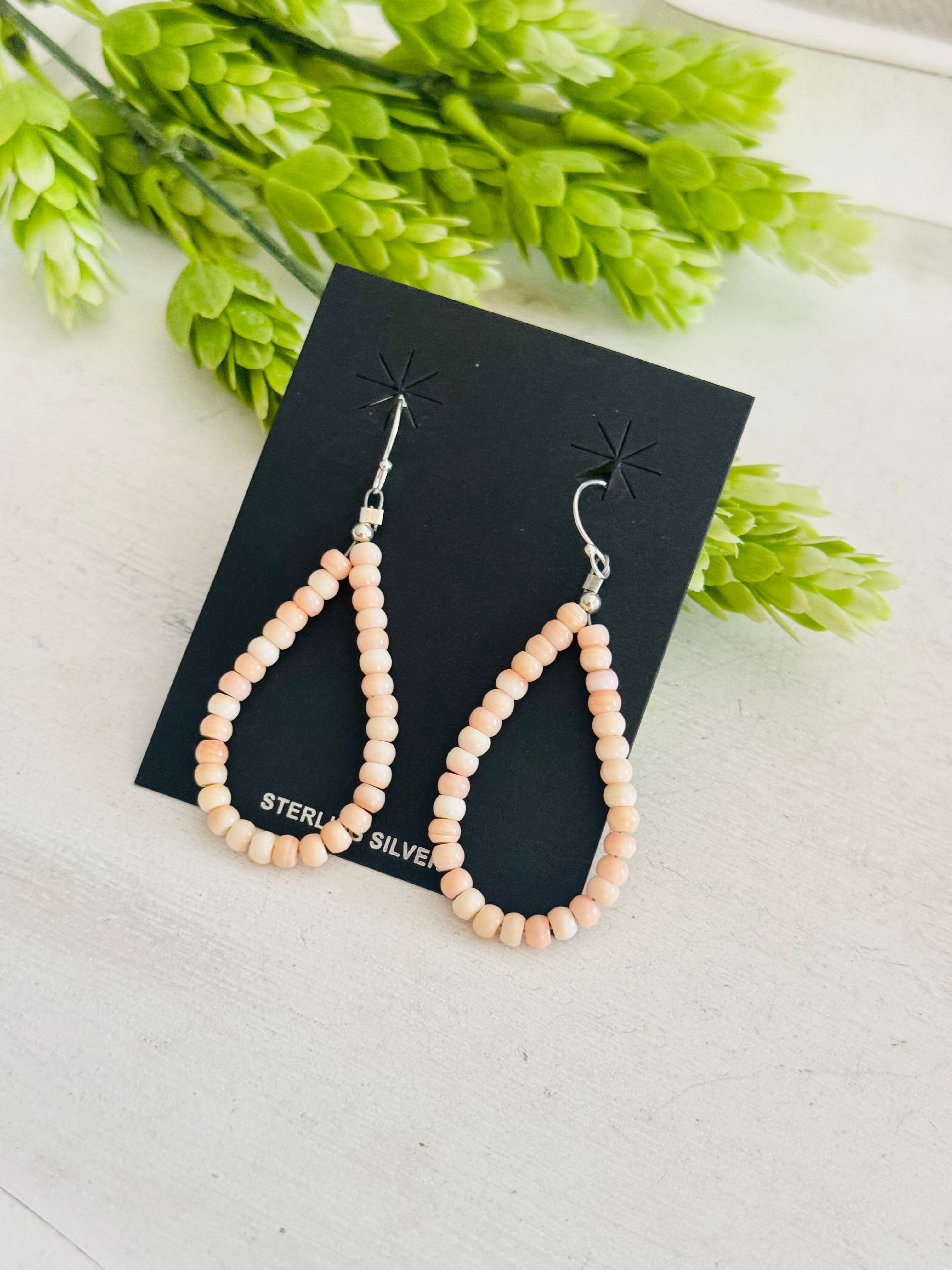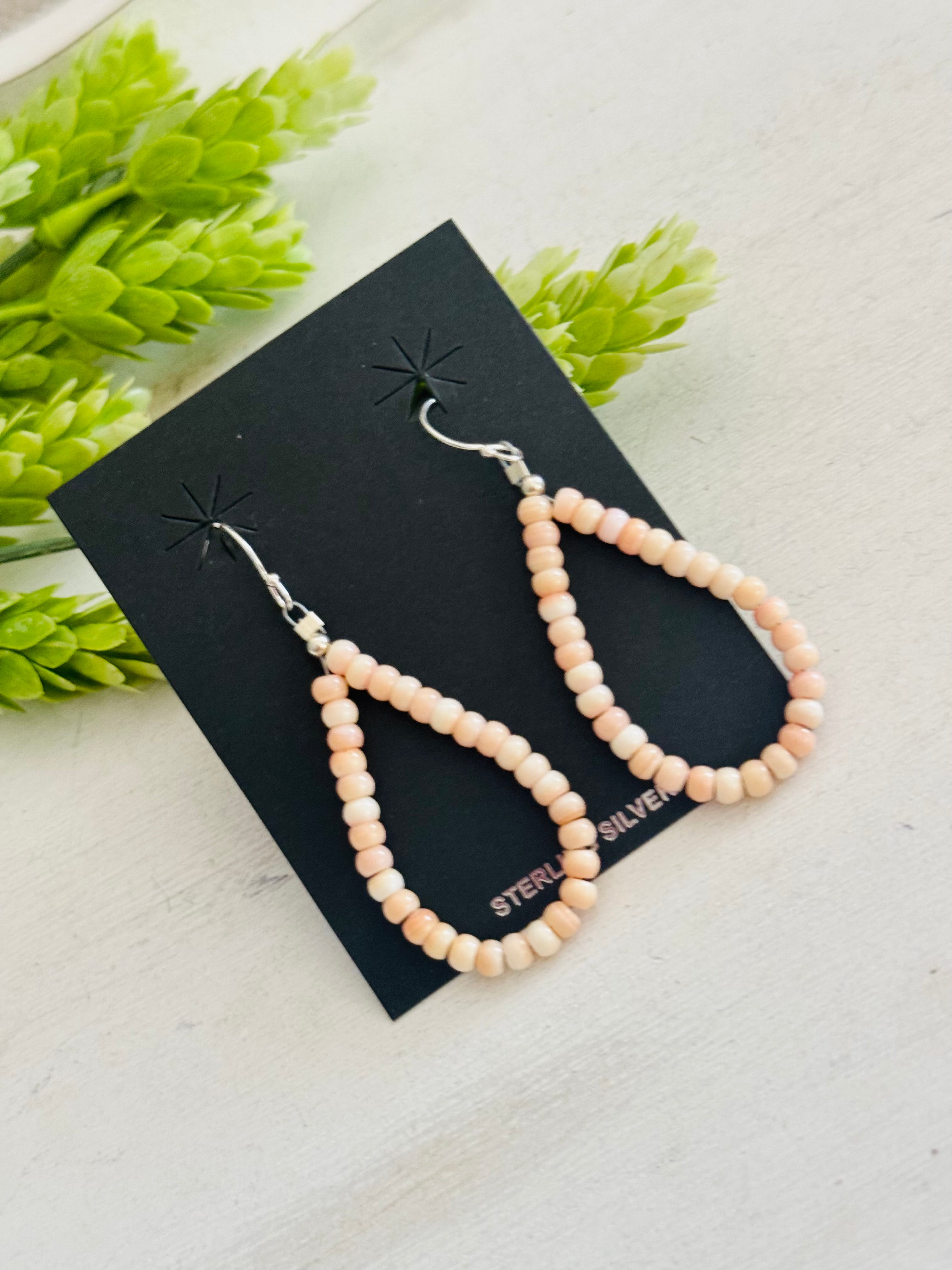 Southwest Strung Pink Conch & Sterling Silver Beaded Dangle Earrings