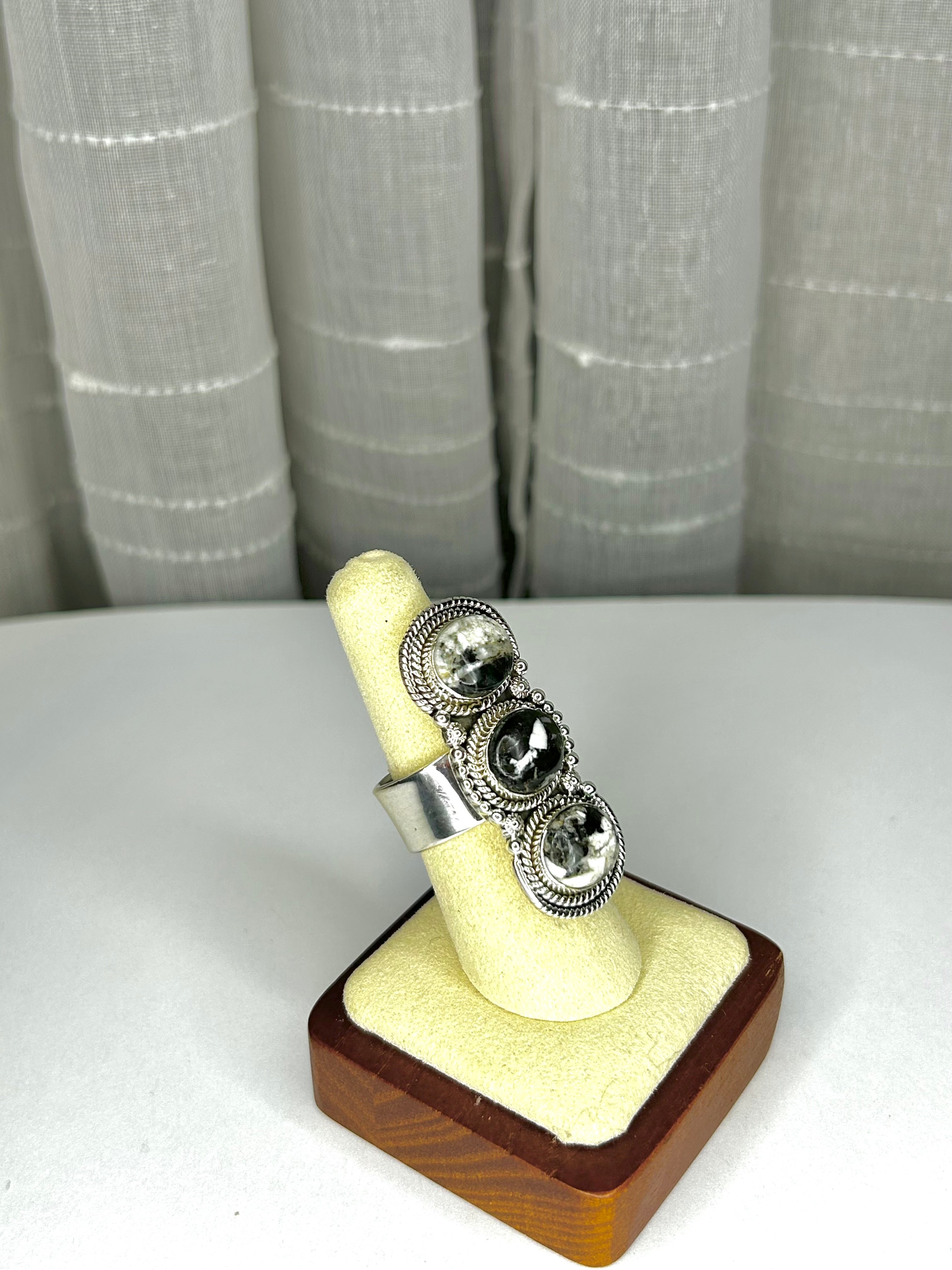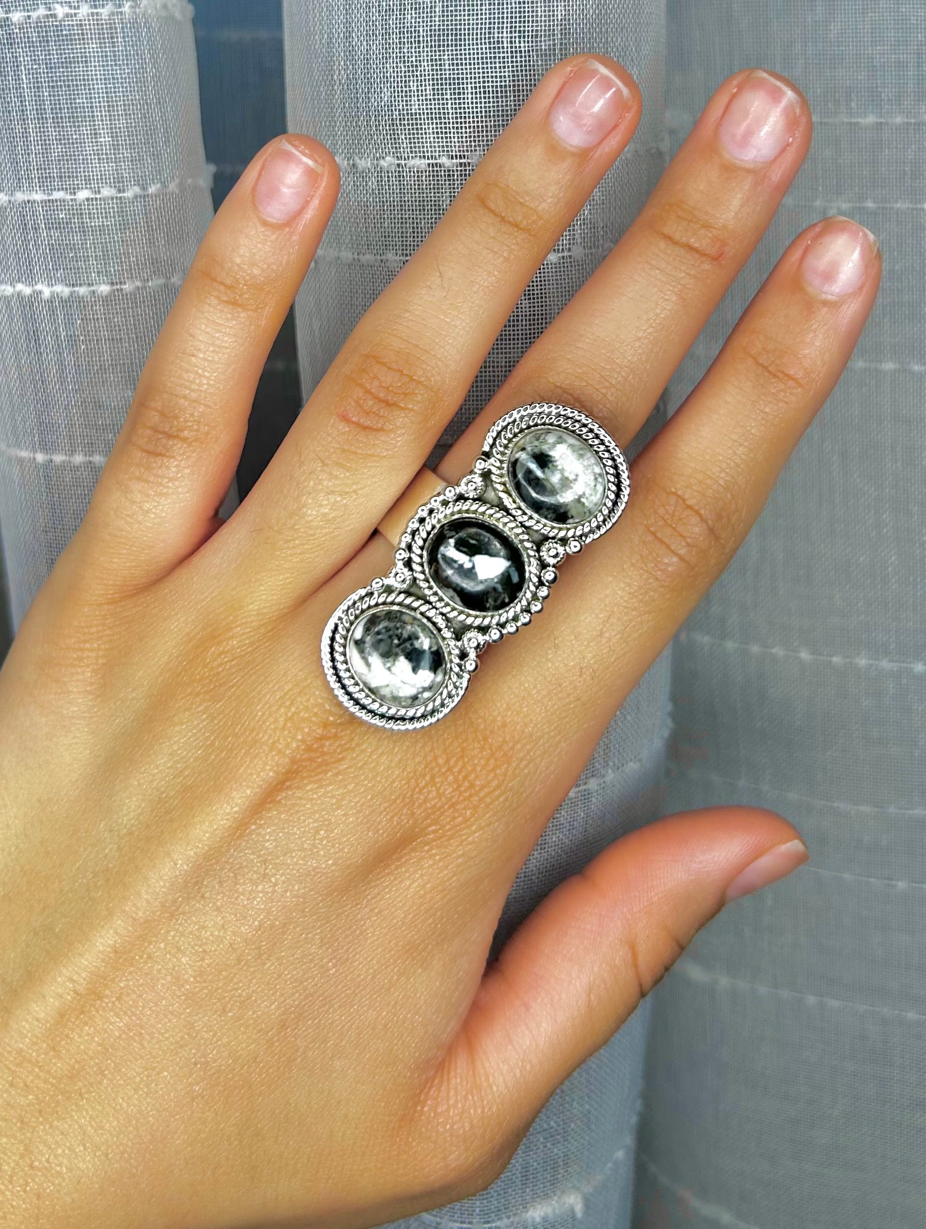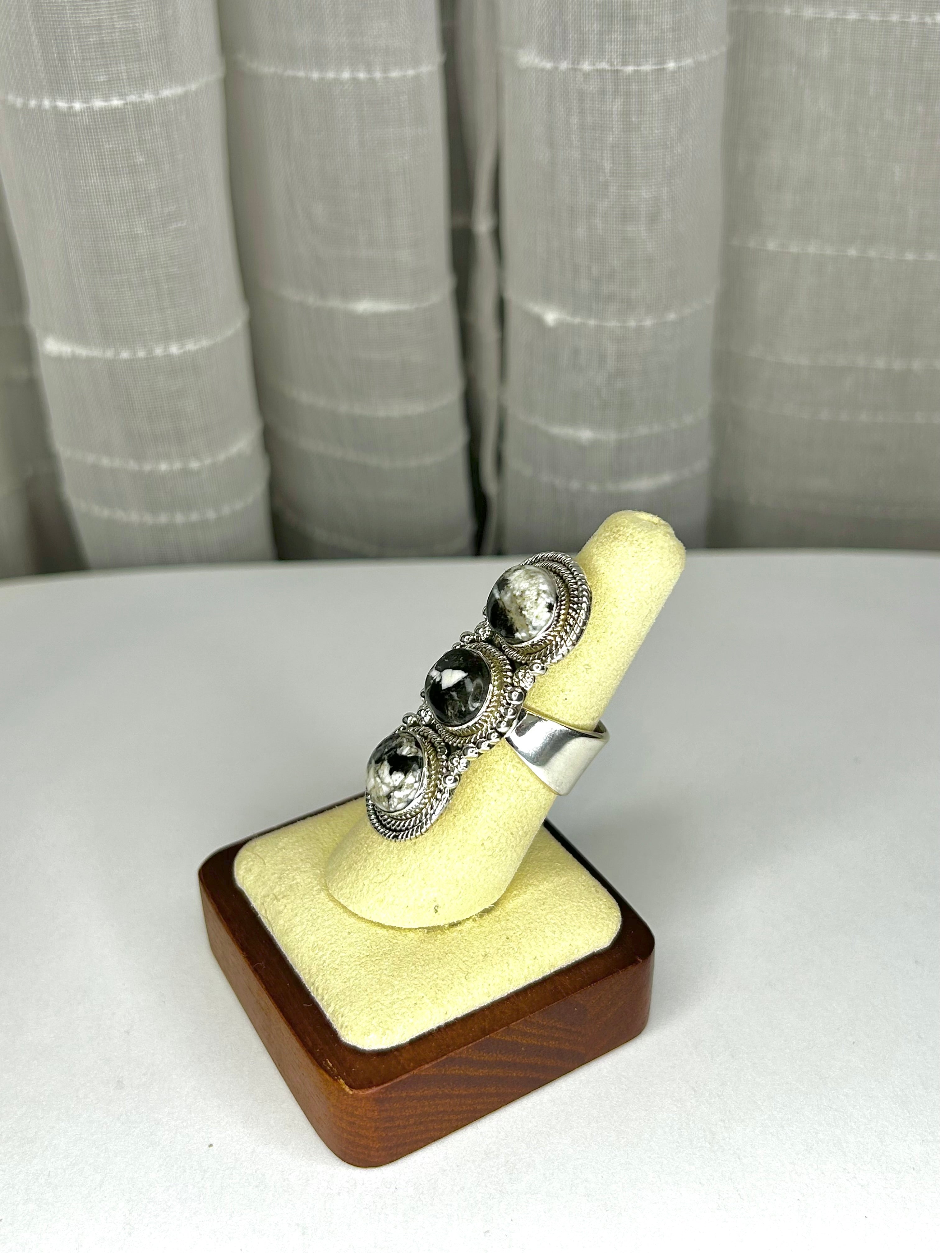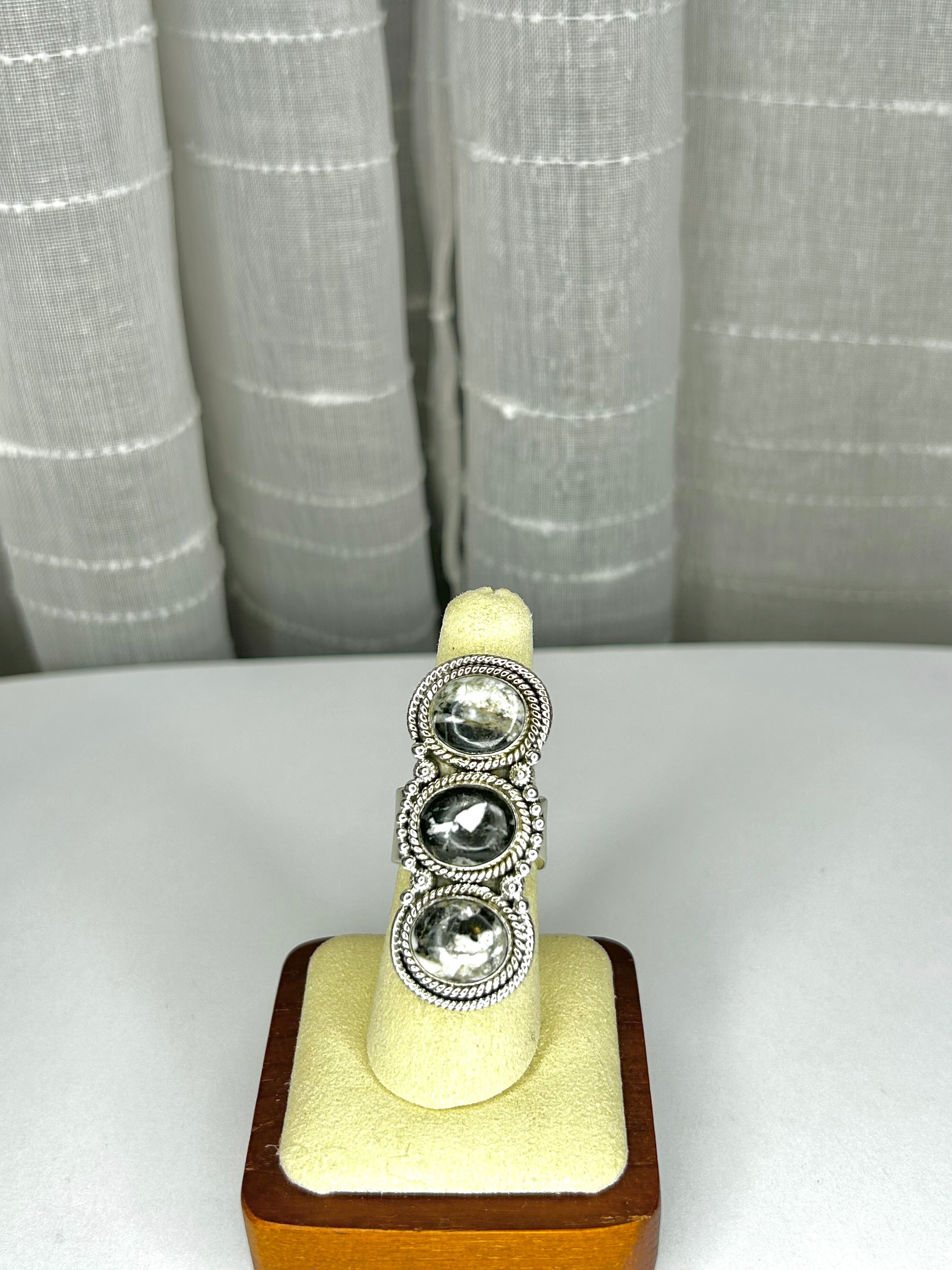 Southwest White Buffalo & Sterling Sliver Cluster Ring