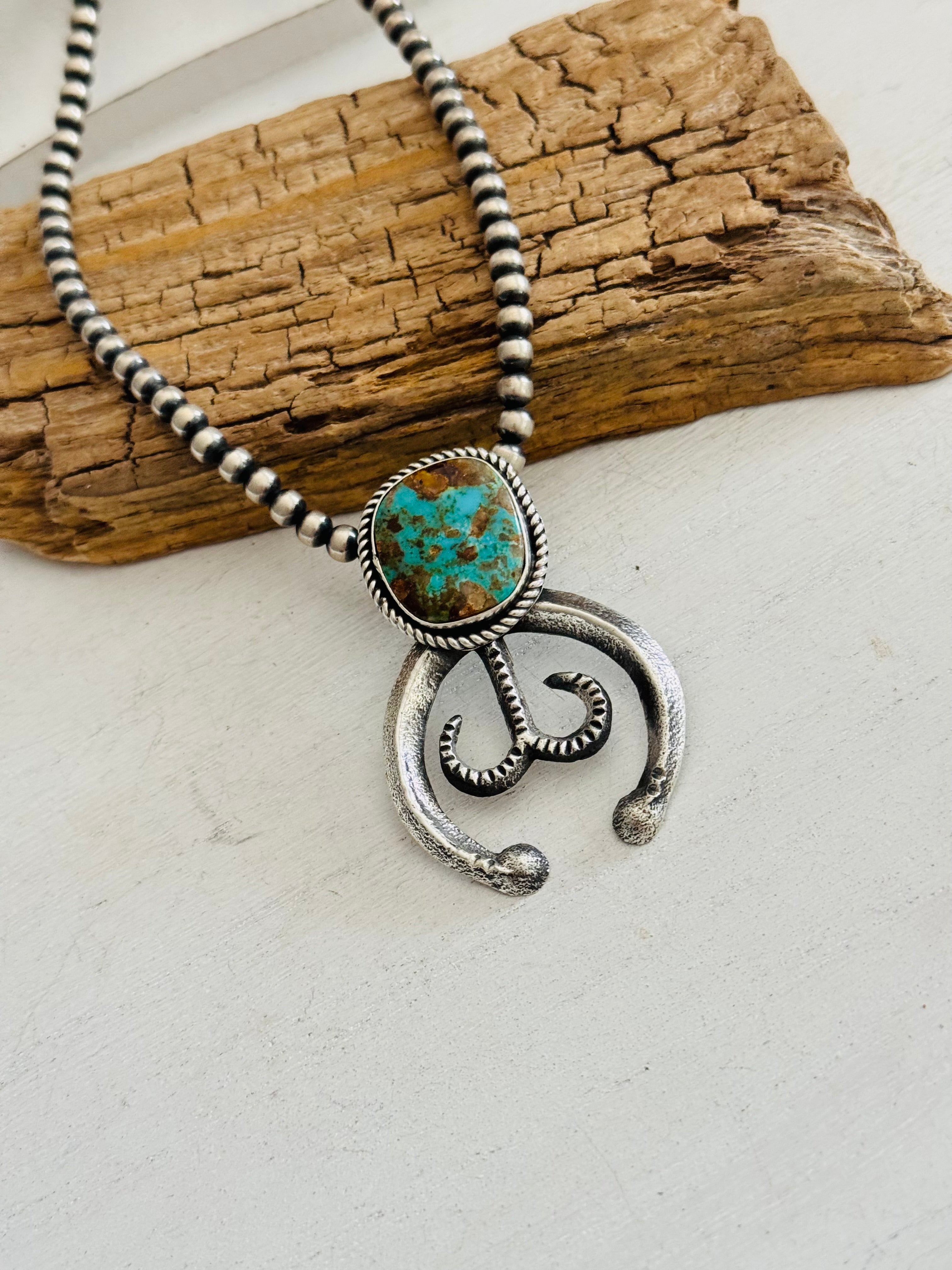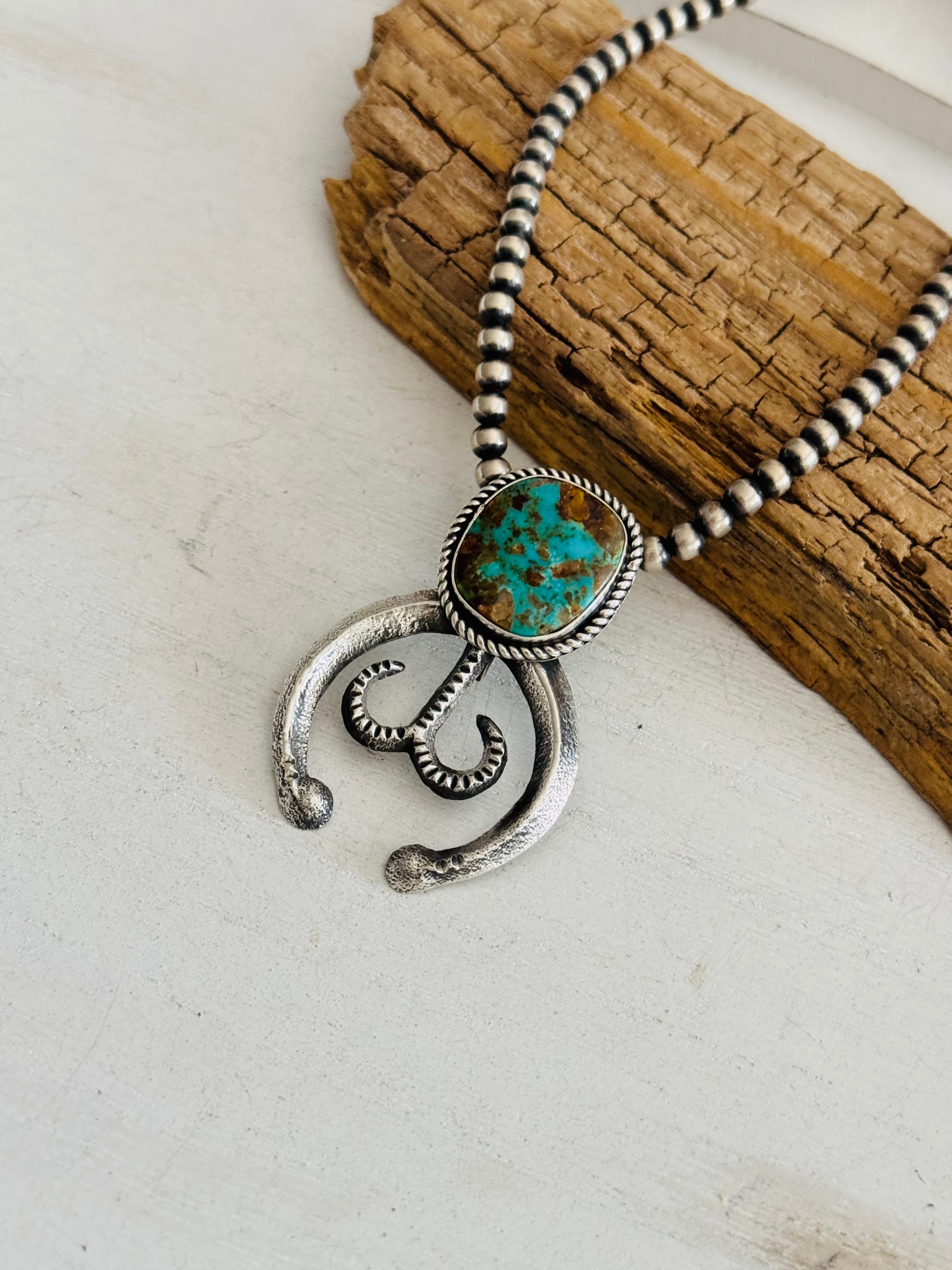 Stanford Yazzie Kingman Turquoise & Sterling Silver Naja Pendant