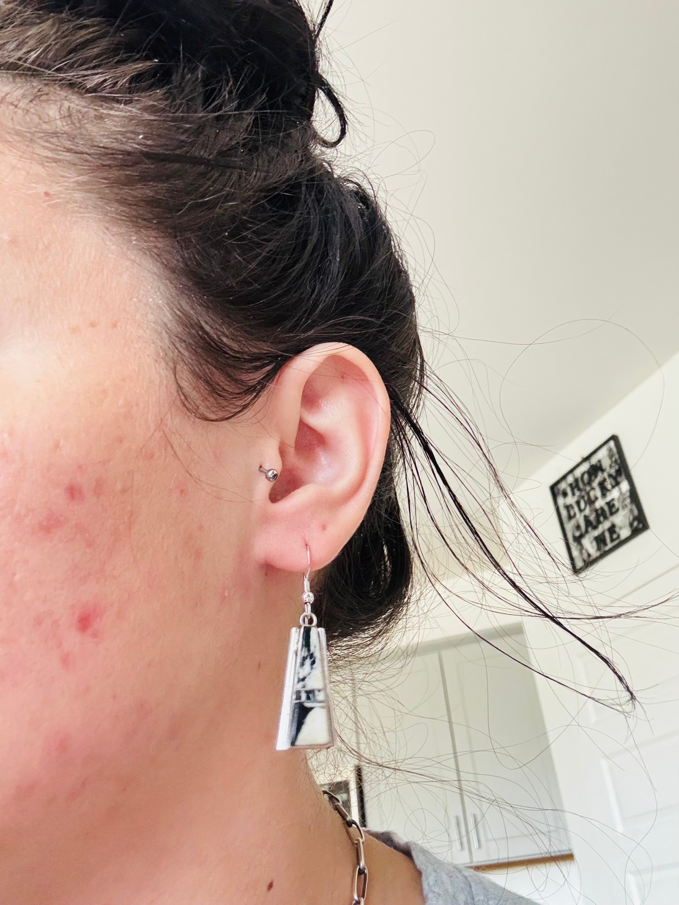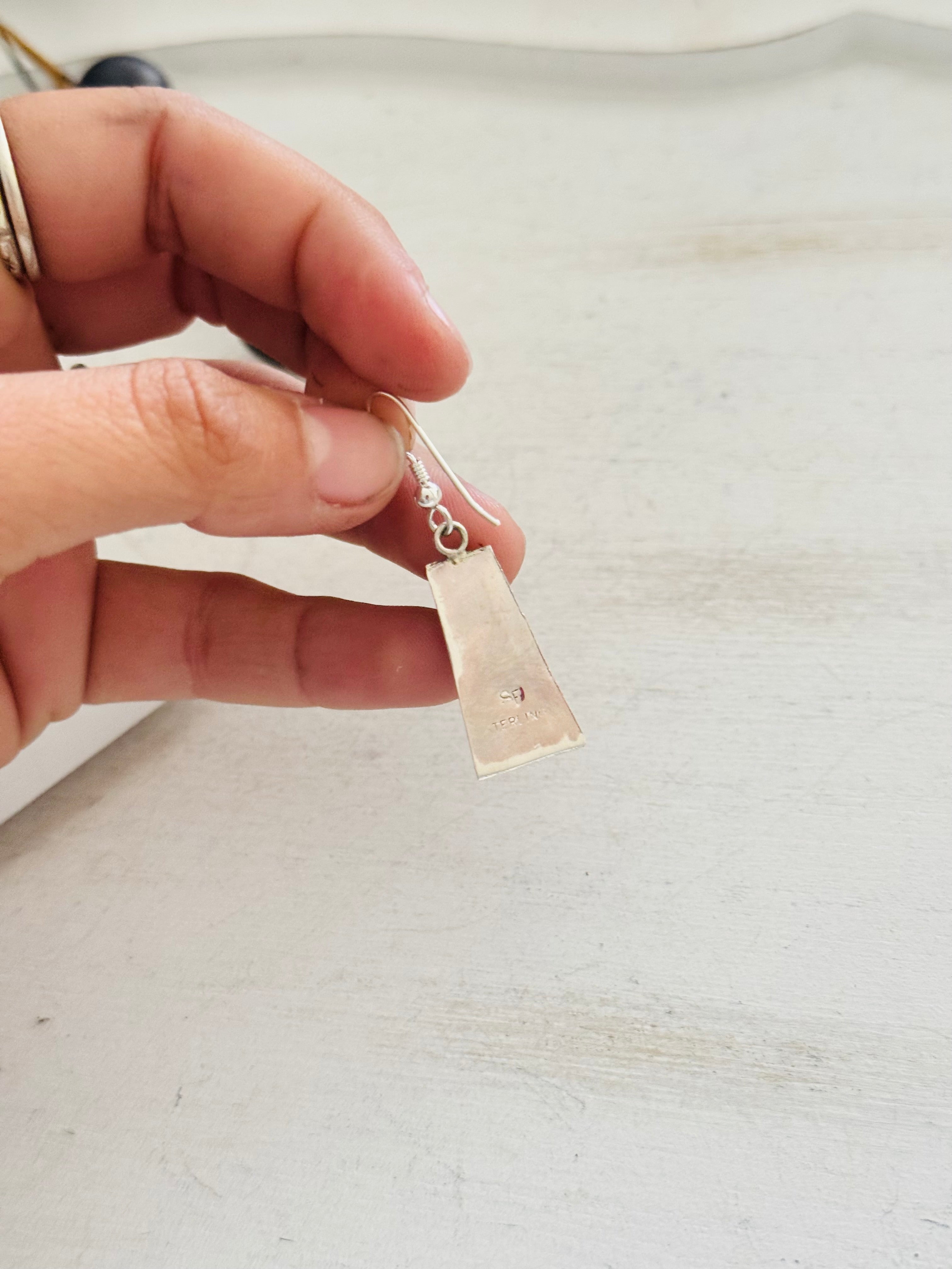 Steve Francisco White Buffalo & Sterling Silver Dangle Inlay Earrings. It measures 1 3/4 inches long and 1/2 of an inch wide. Signed by the artist and stamped sterling silver.