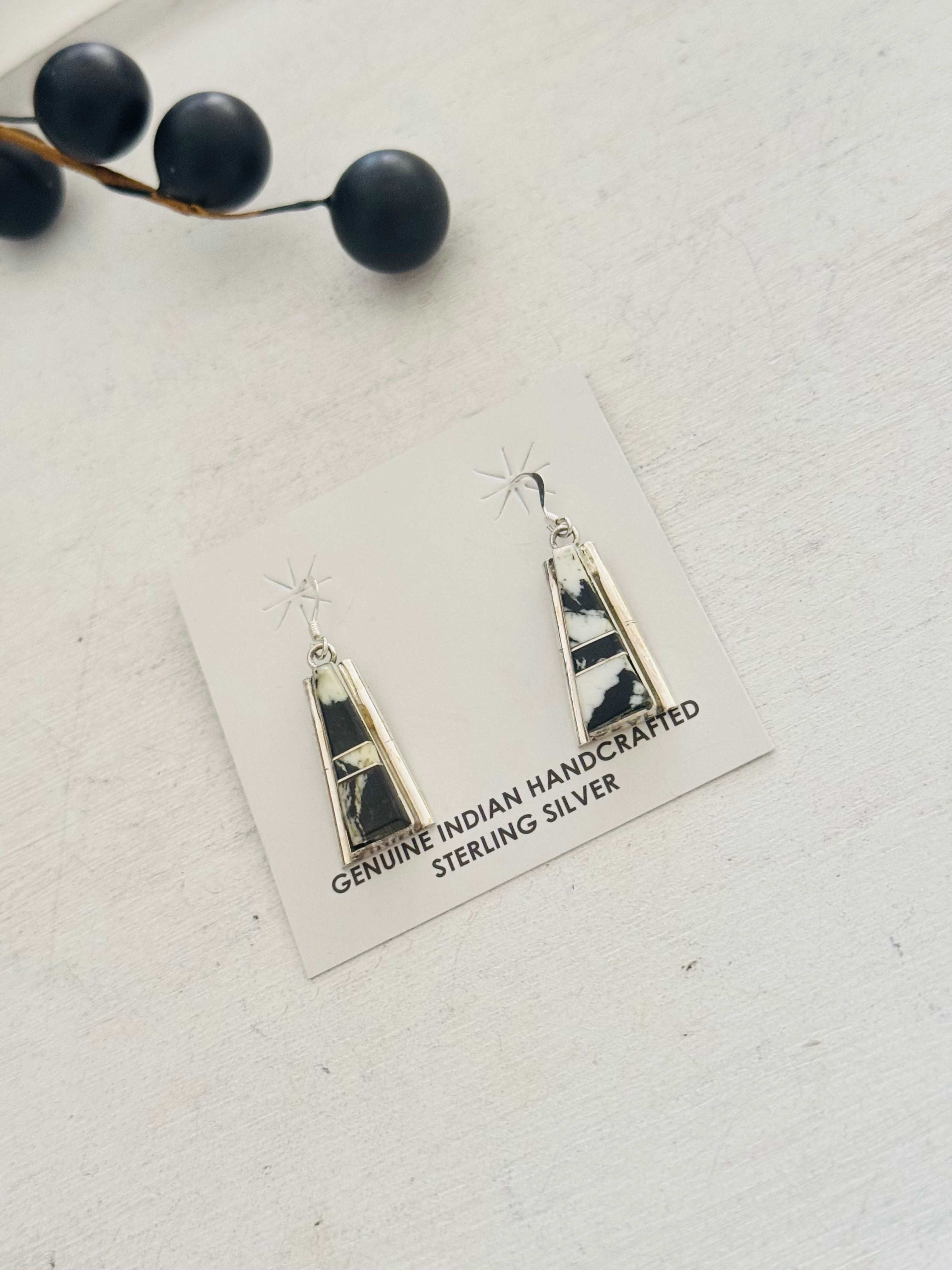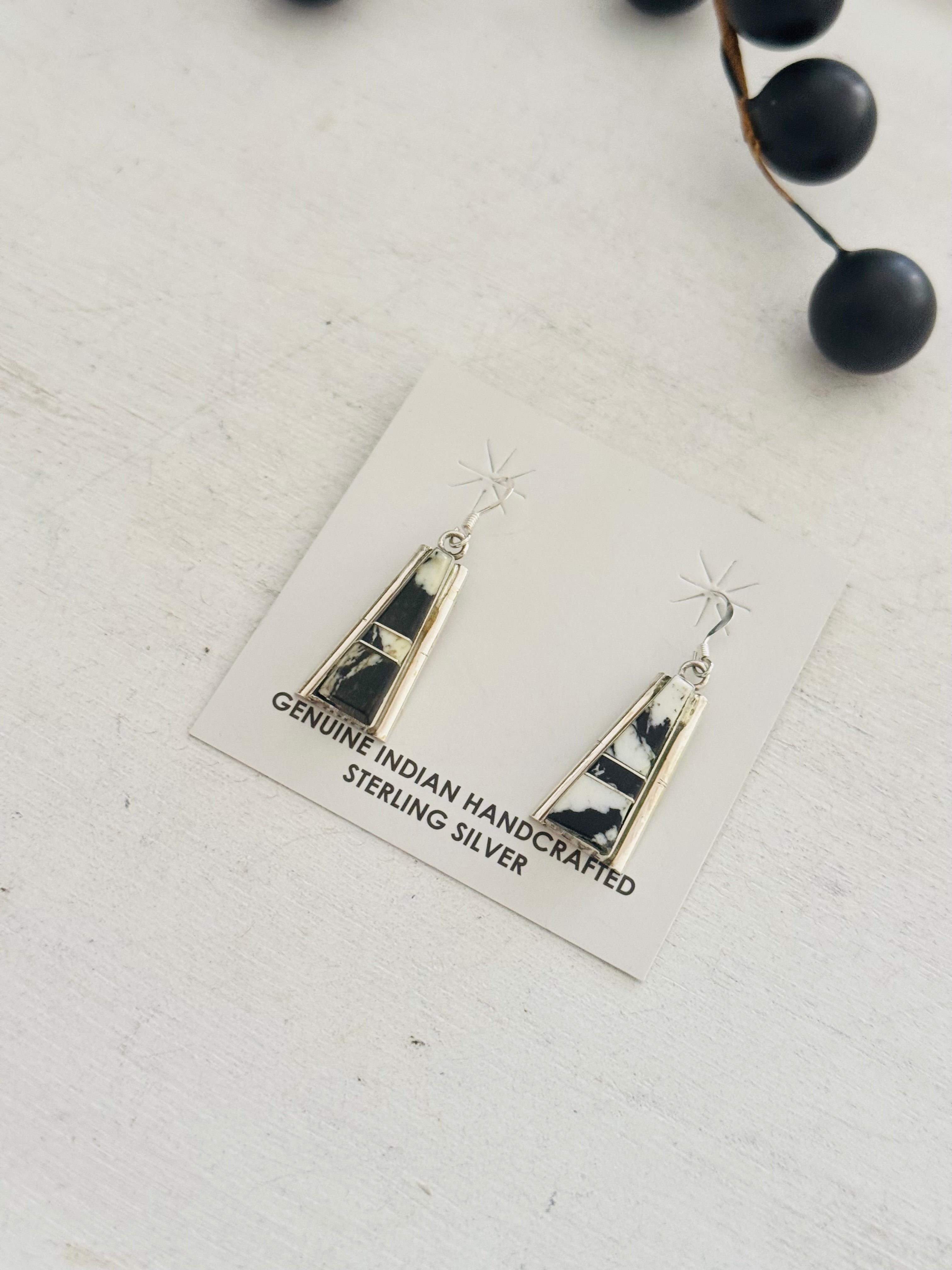 Steve Francisco White Buffalo & Sterling Silver Dangle Inlay Earrings