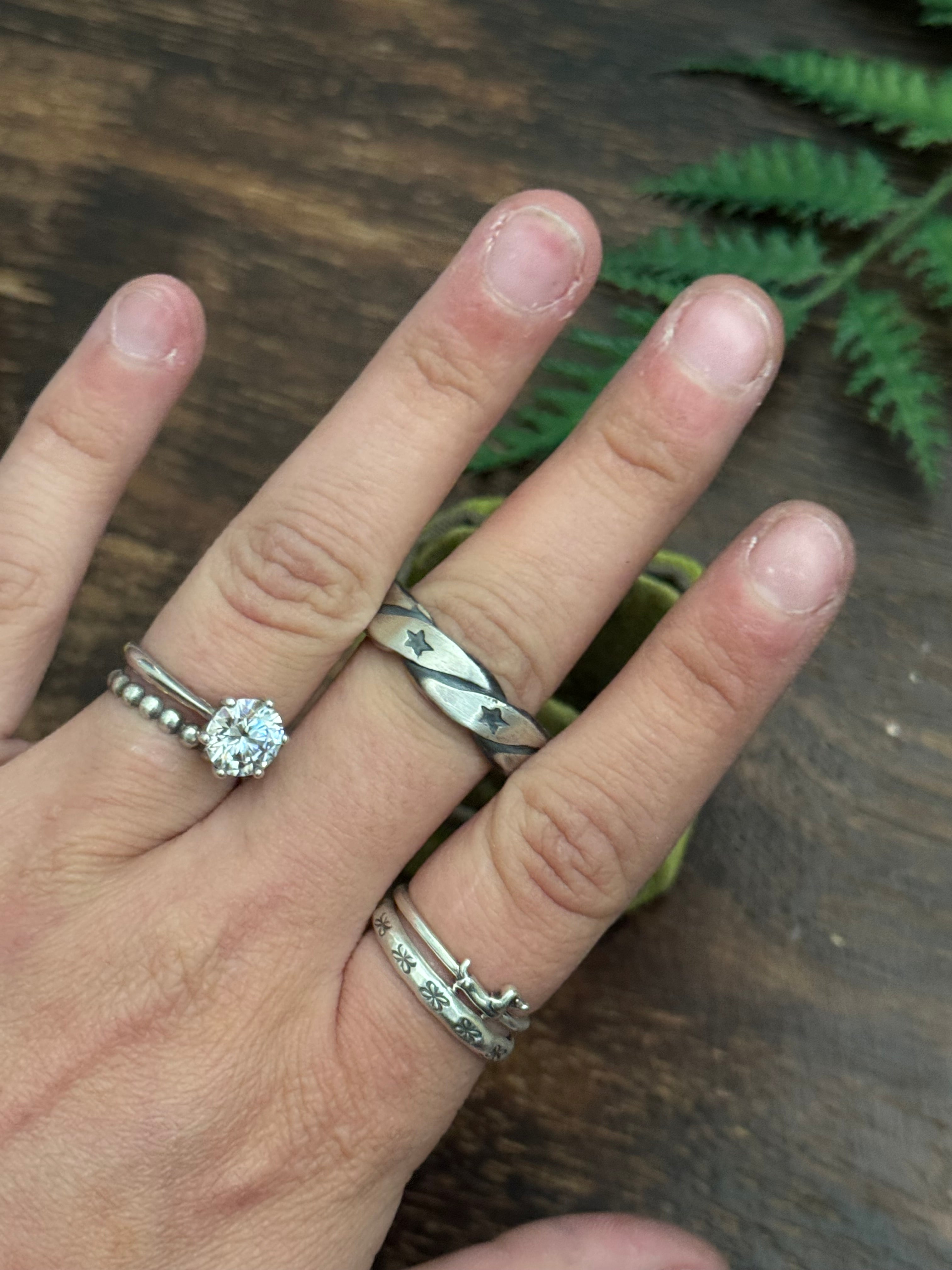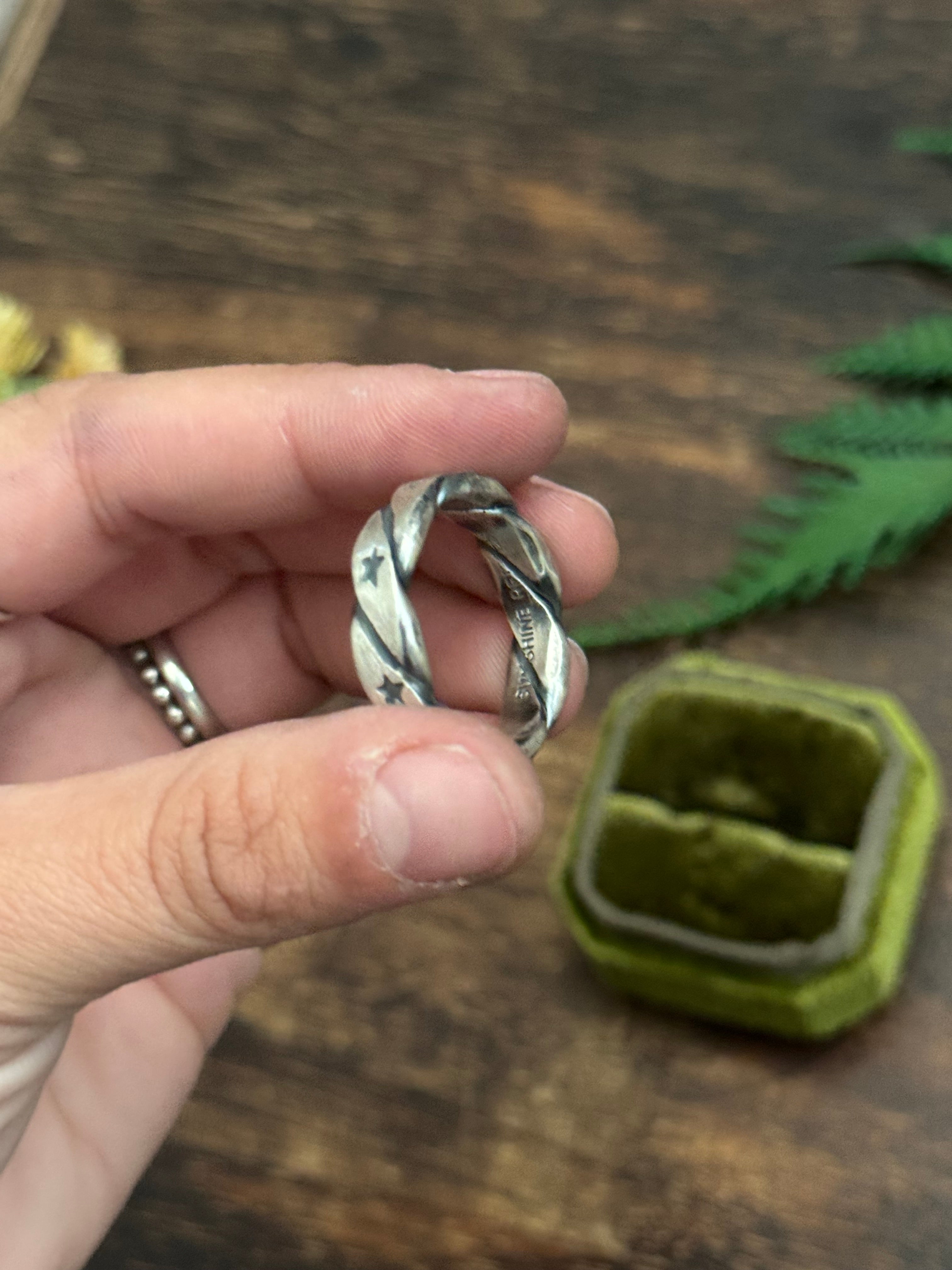 A beautiful Ring. Sunshine Reeve & Sterling Silver Ring. It measures just over 1/4 of an inch long. Signed by the artist and stamped sterling silver.