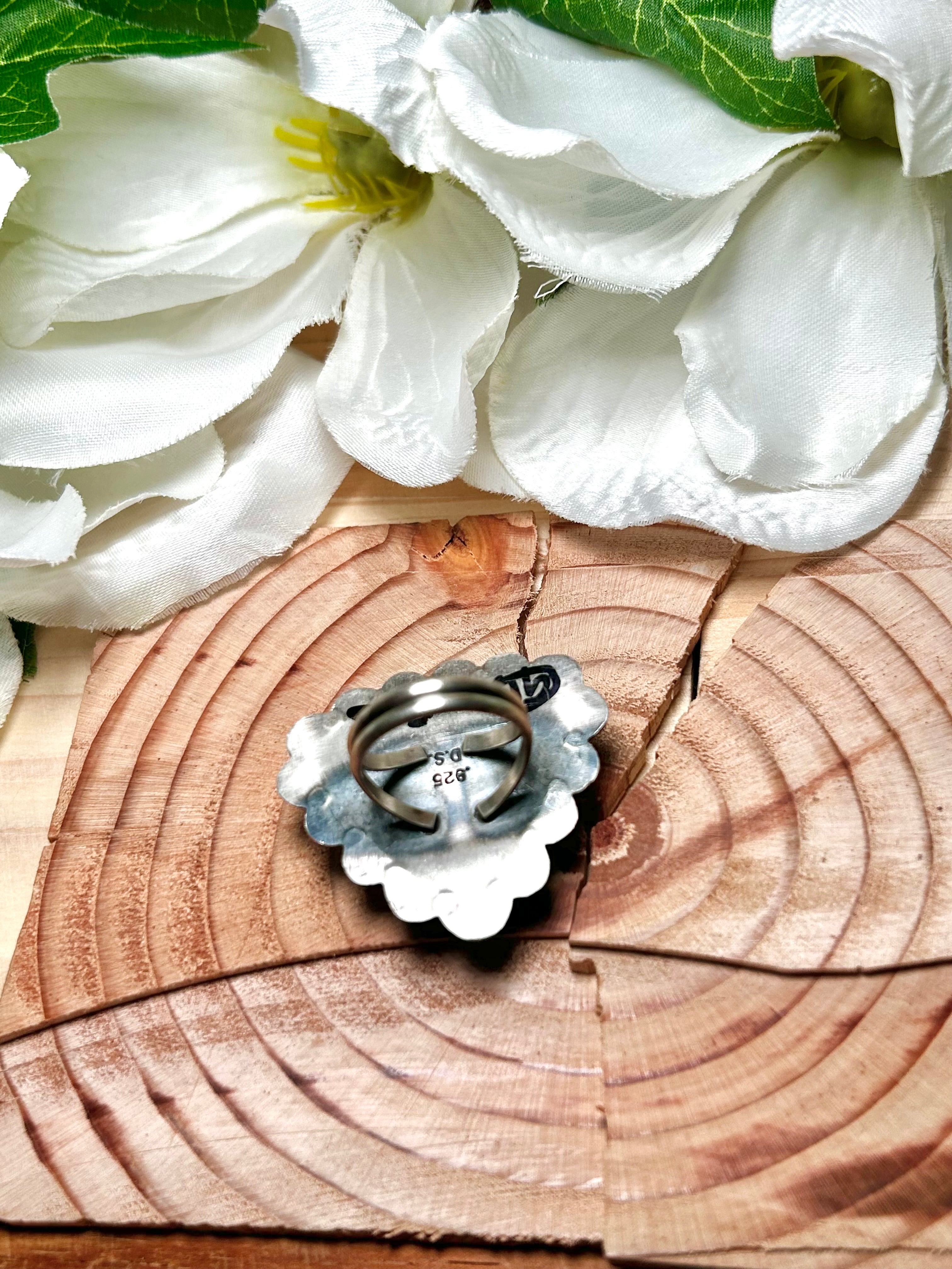 Dave Skeets White Buffalo & Sterling Silver Ring Size 5.75
