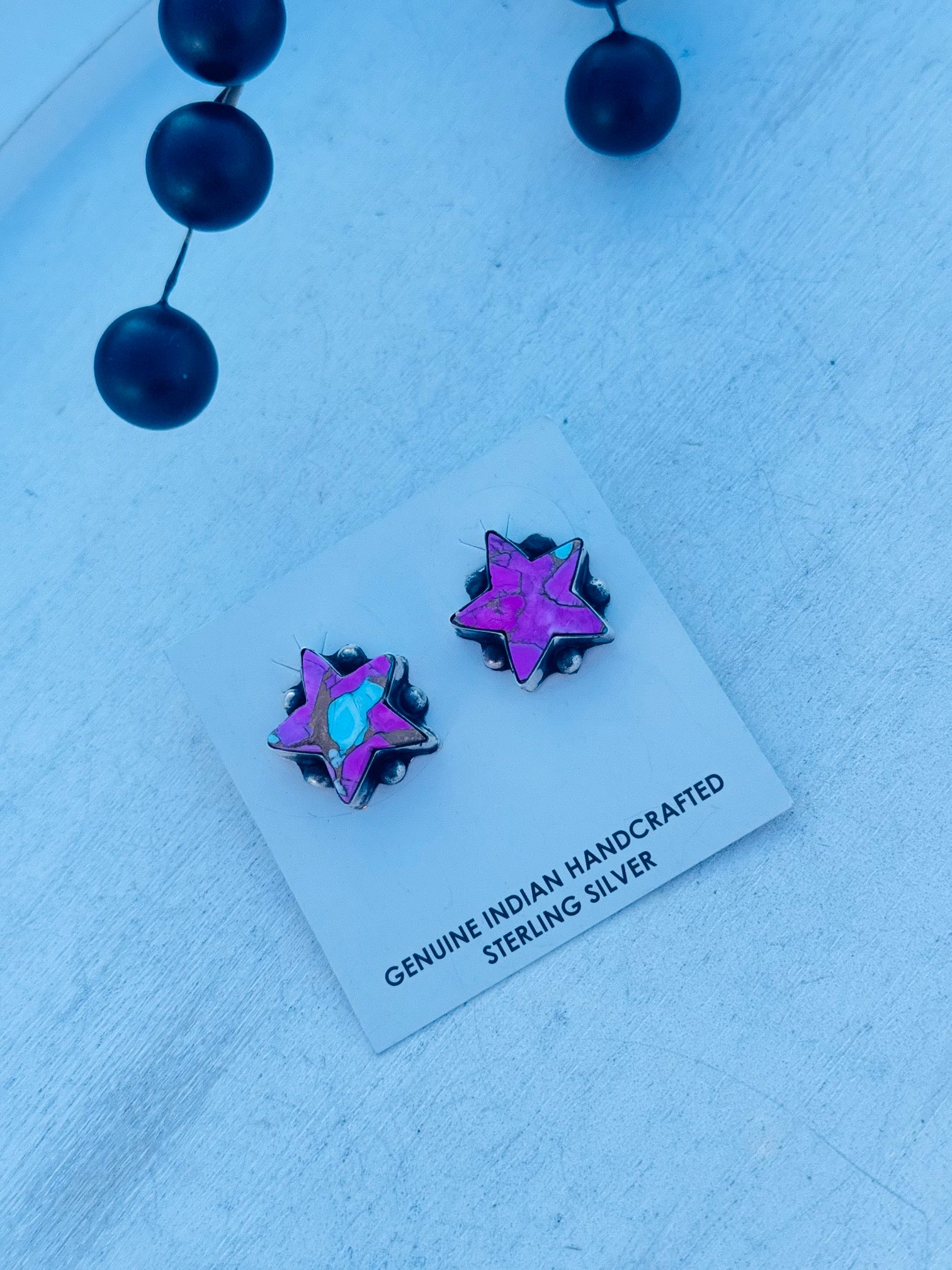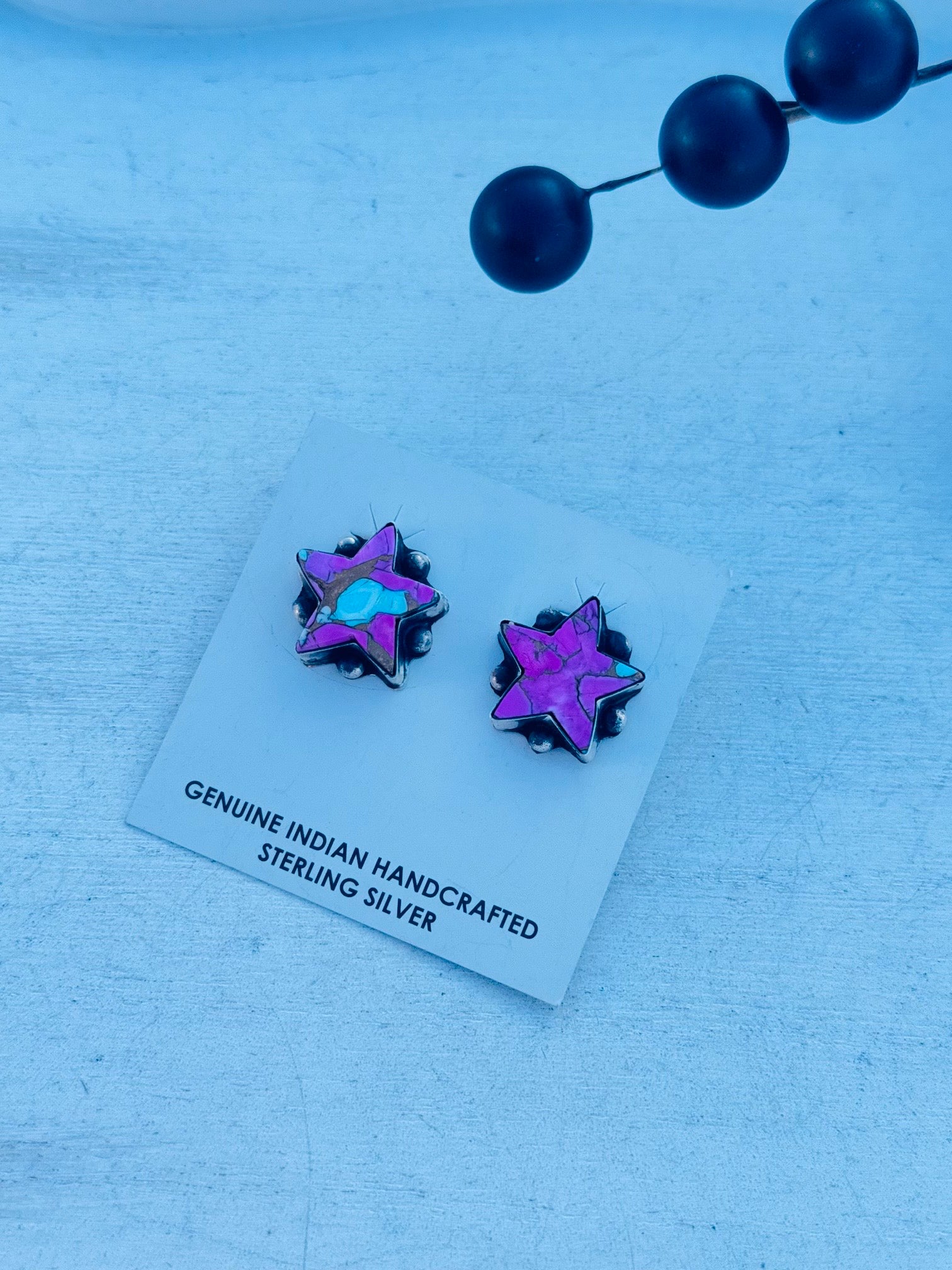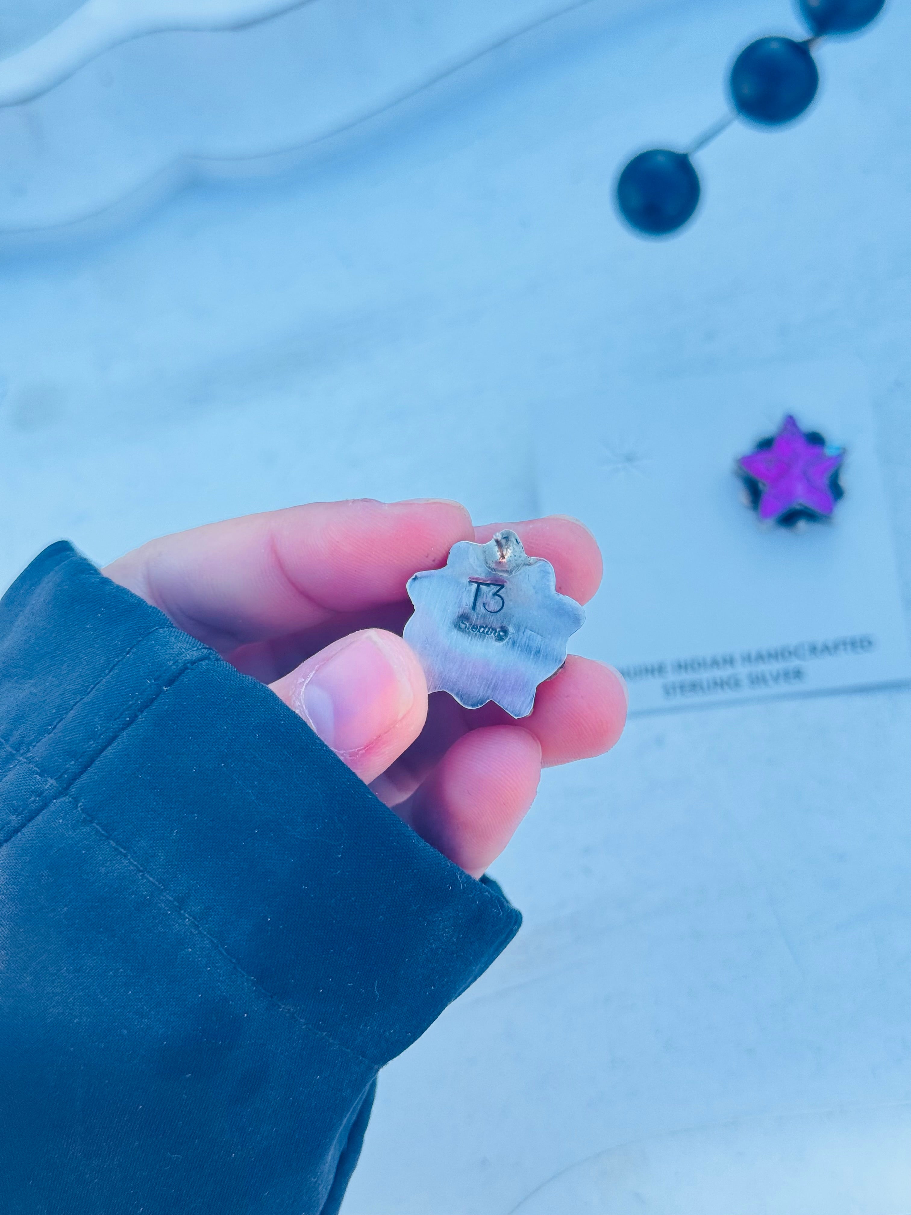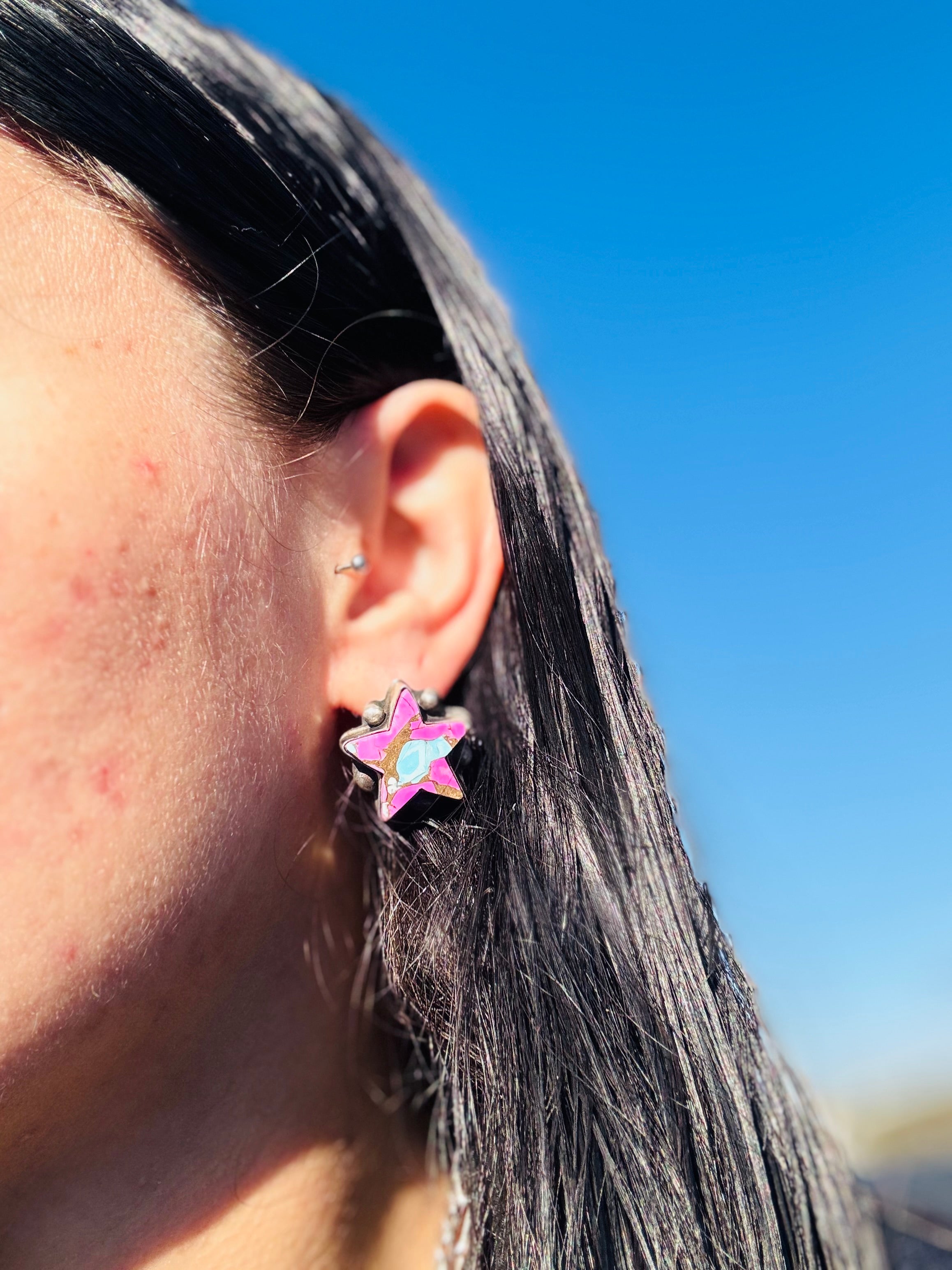 Tia Long Cotton Candy Composite & Sterling Silver Post Star Earrings. It measures just over 3/4 of an inch round. Signed by artist and stamped sterling silver.