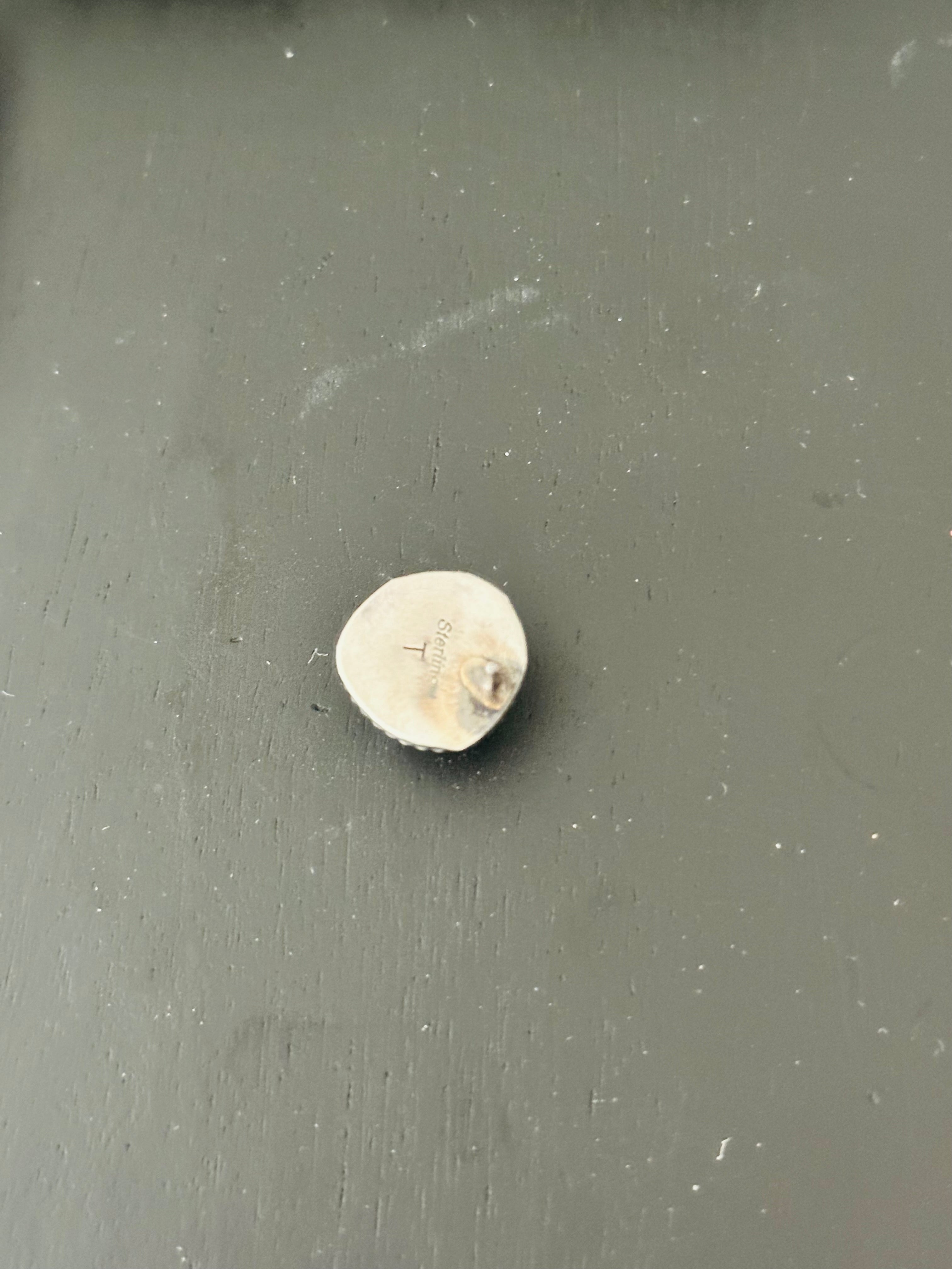 A beautiful earrings. Tim Yazzie Golden Hill’s Turquoise & Sterling Silver Post Earrings. It measures 3/4 of an inch long and 1/2 of an inch wide. Signed by the artist and stamped sterling silver.