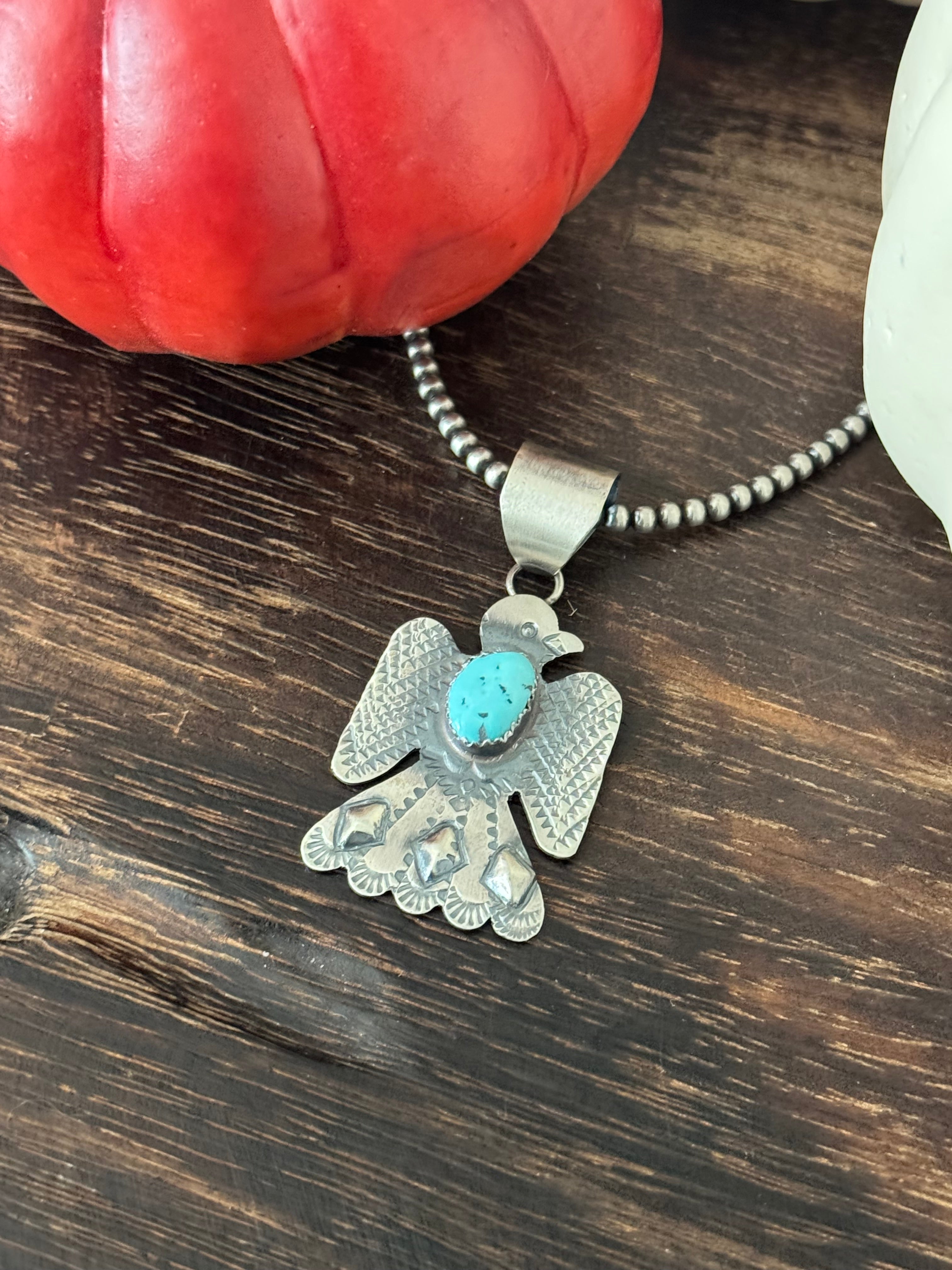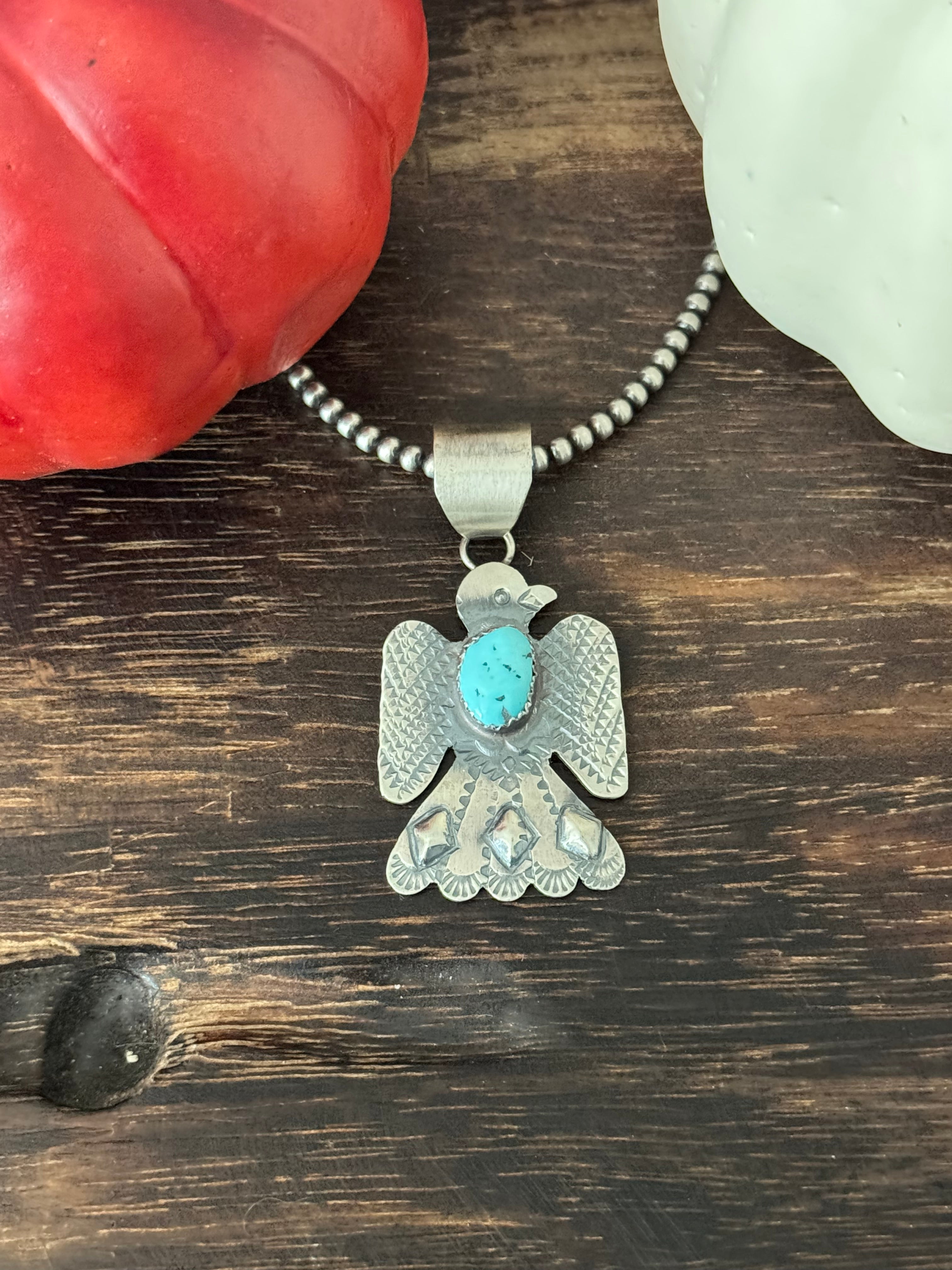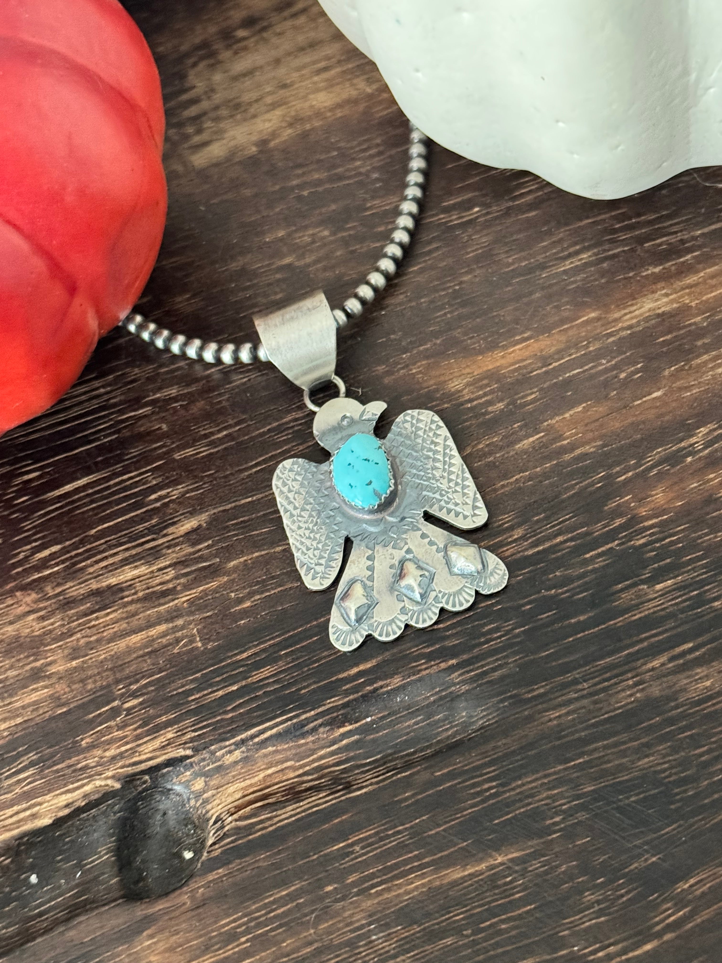 Timothy Yazzie Kingman Turquoise & Sterling Silver Thunderbird Pendant