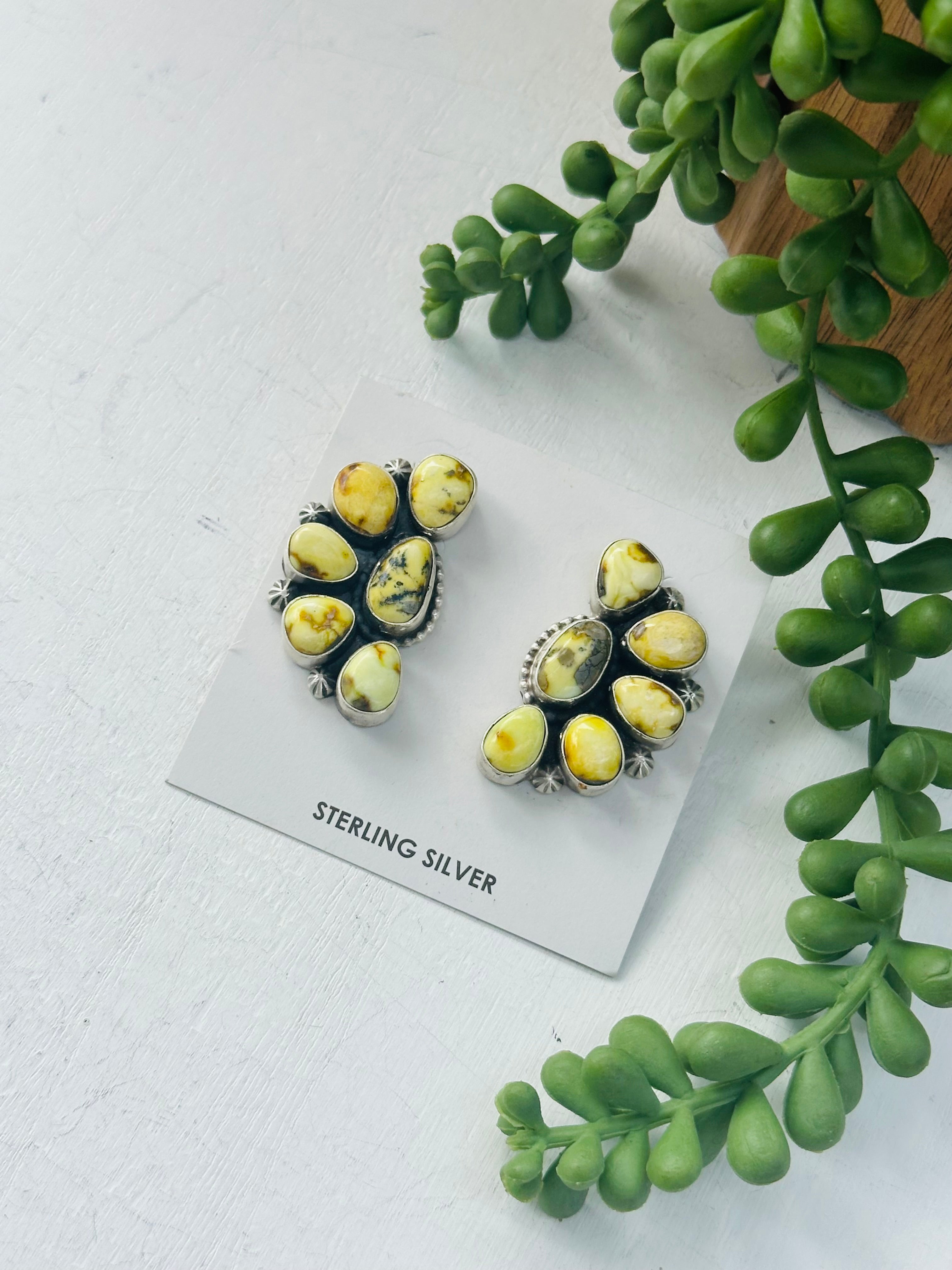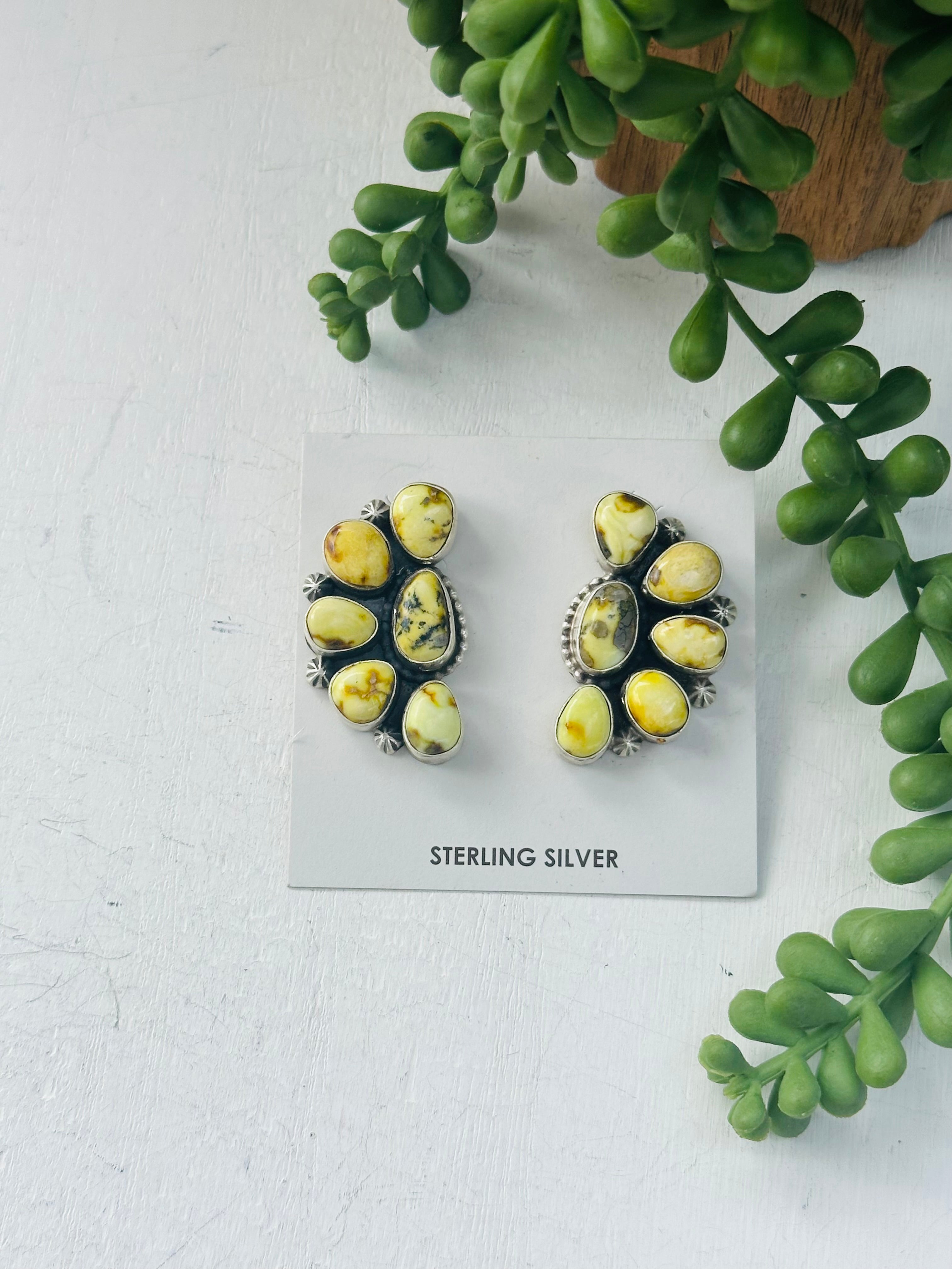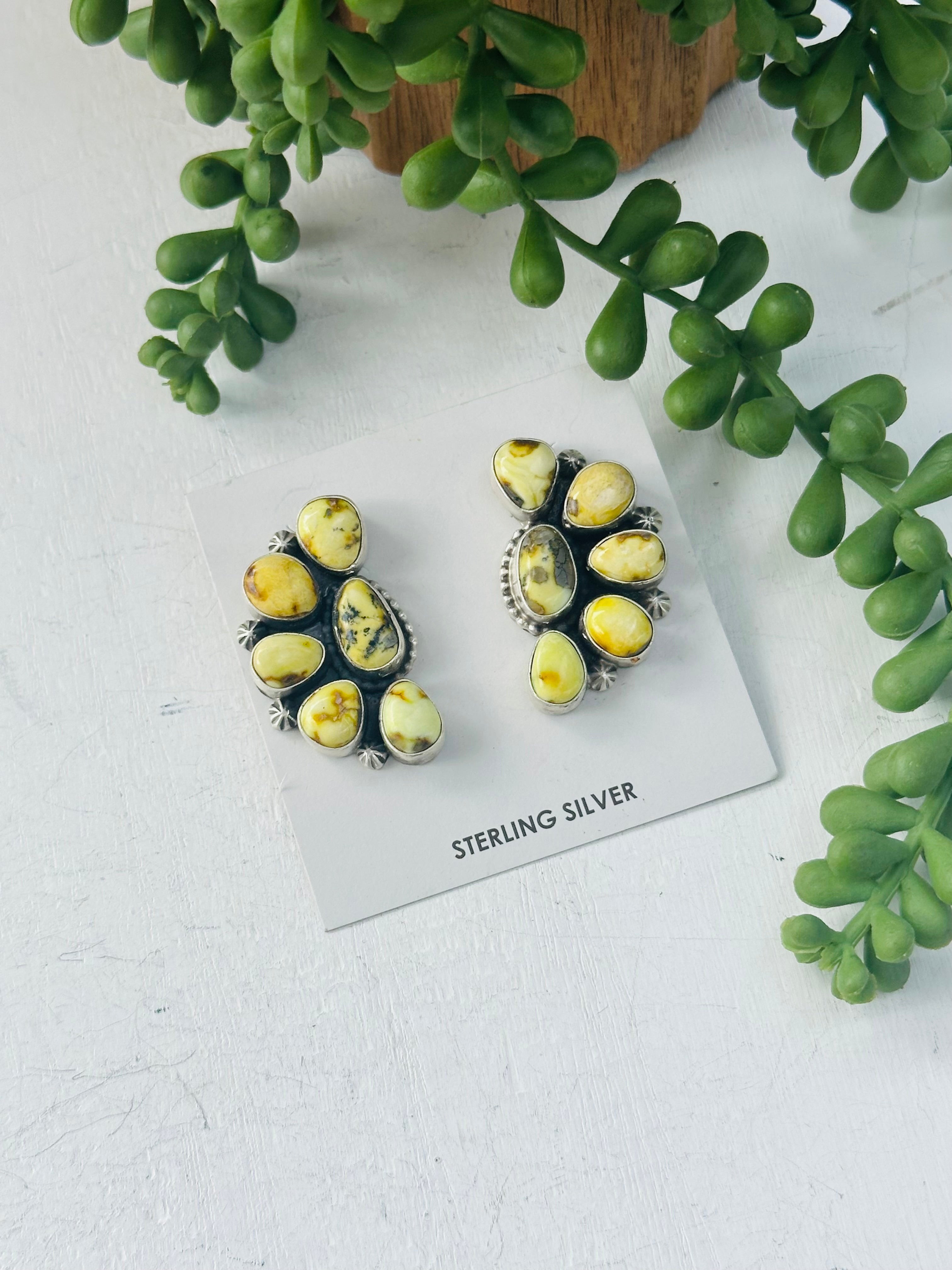 Timothy Yazzie Palomino Variscite & Sterling Silver Cluster Post Dangle Earrings