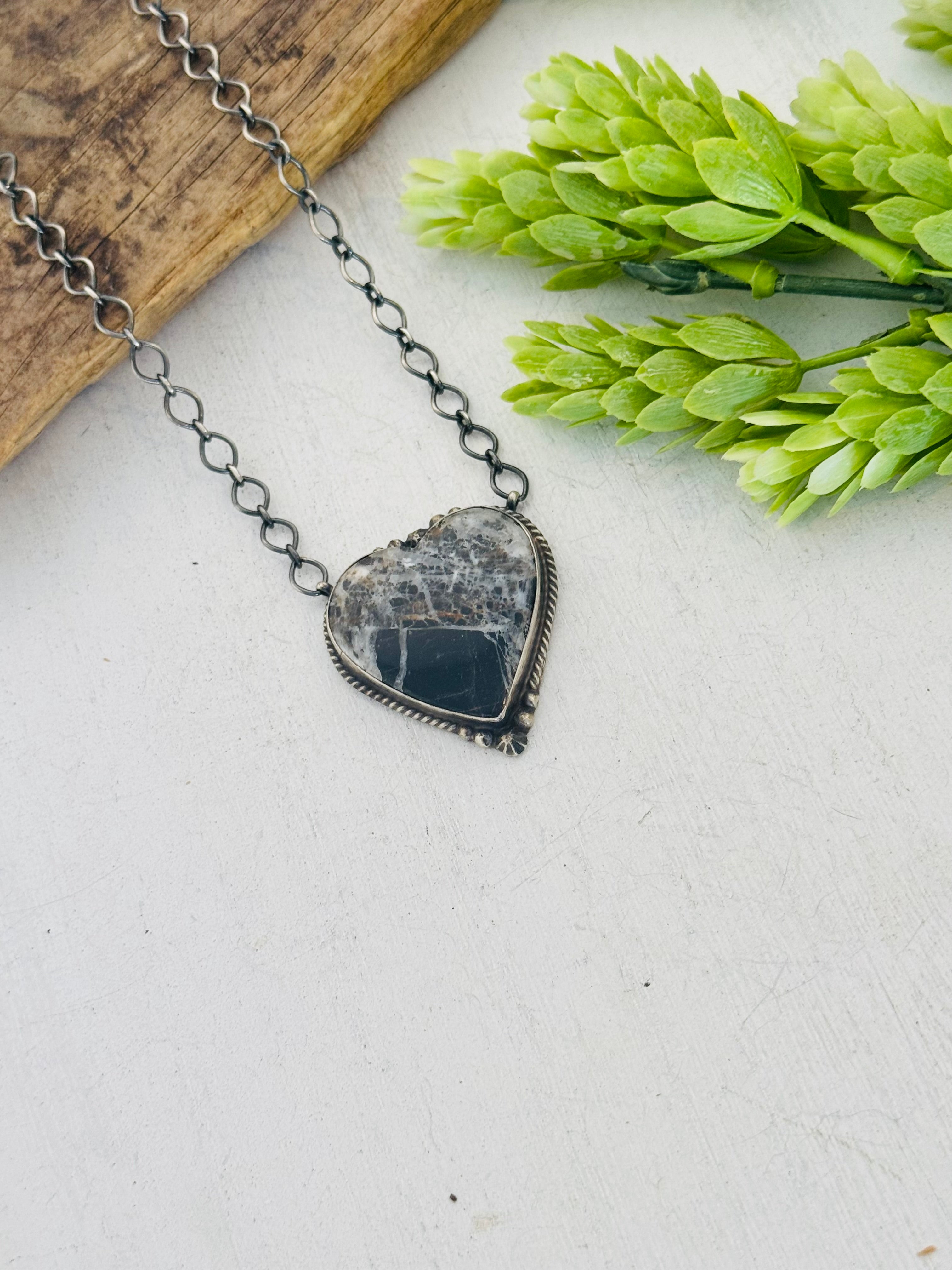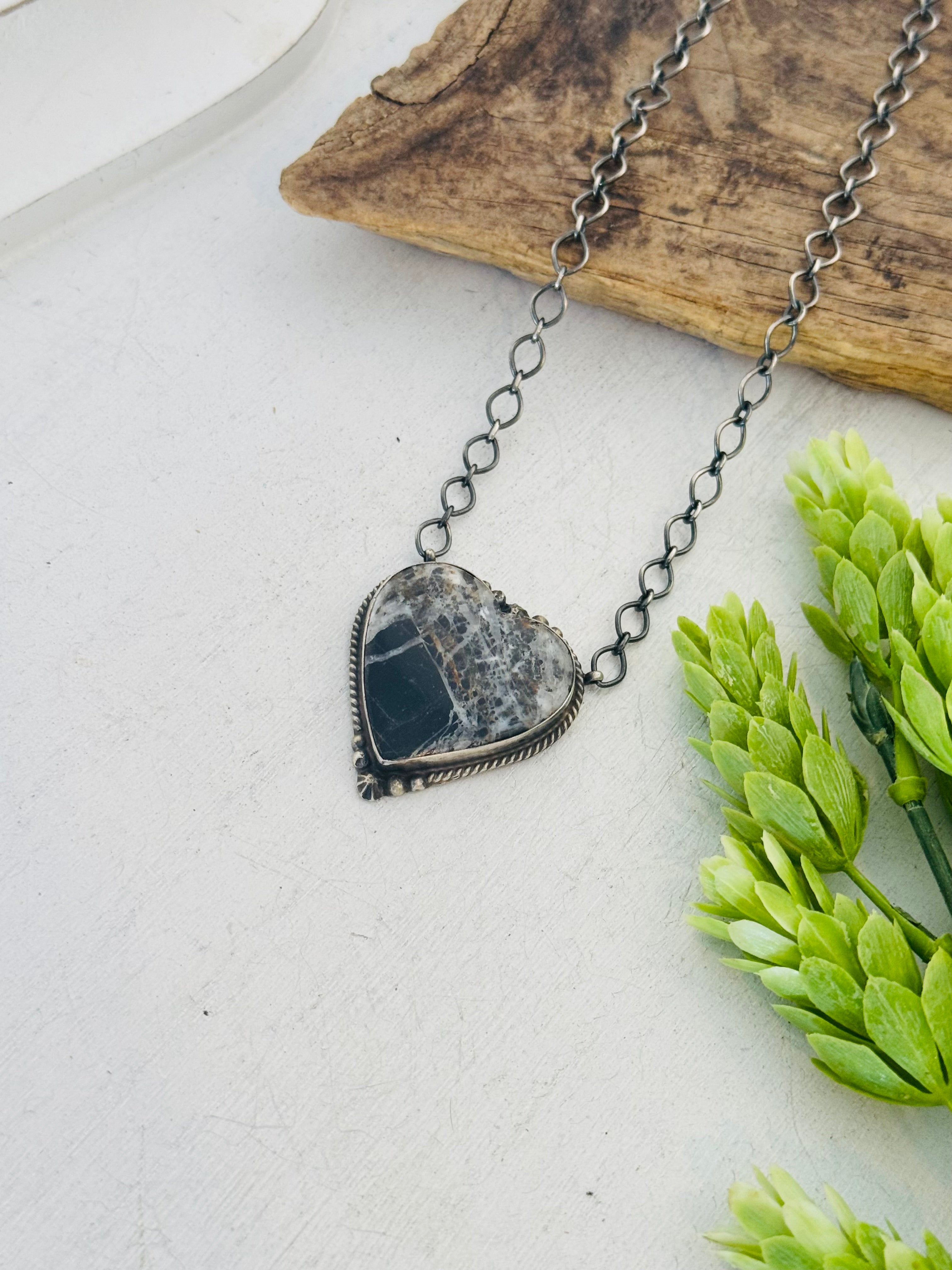Jon Frank White Buffalo & Sterling Silver Heart Necklace
