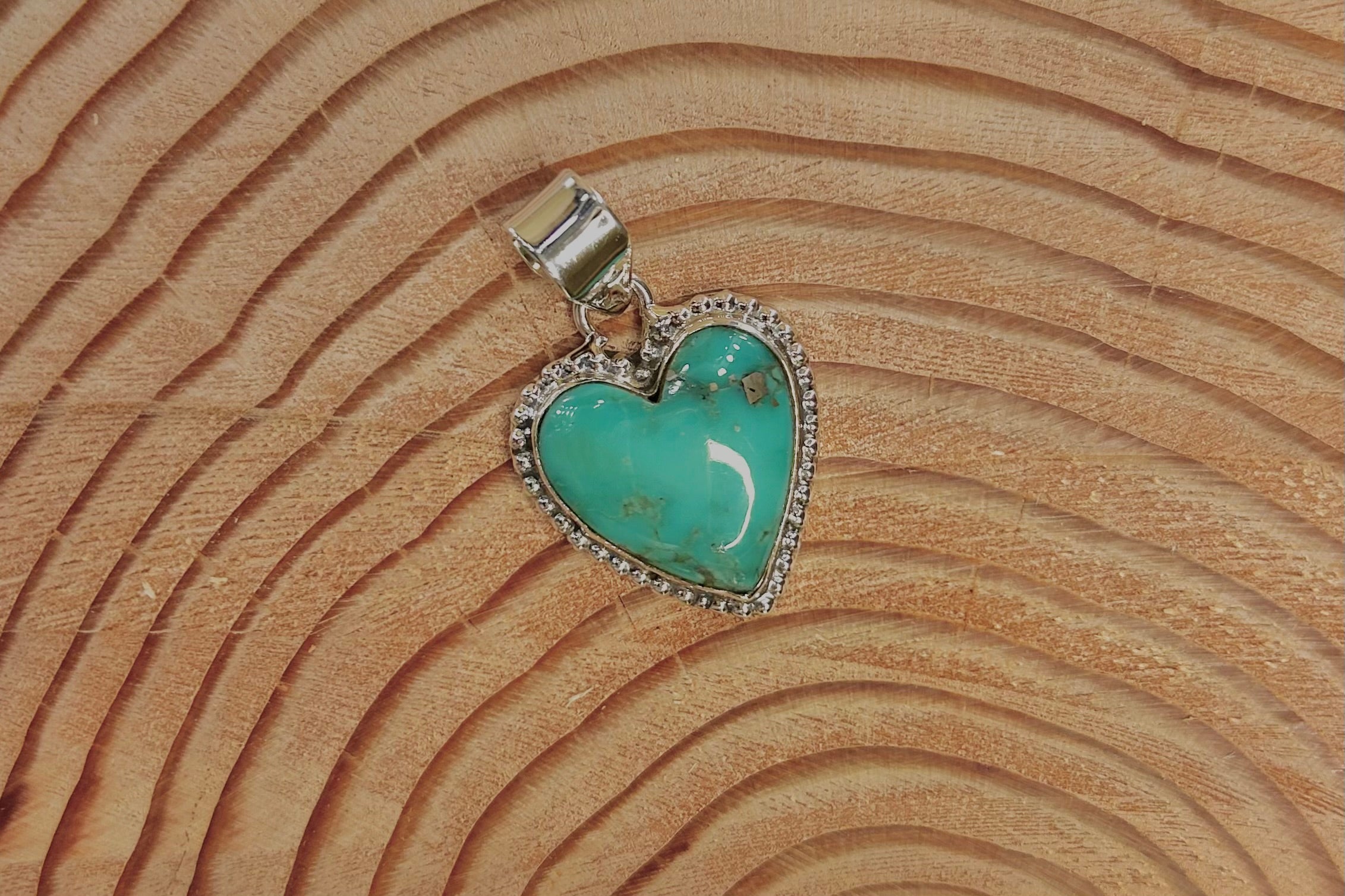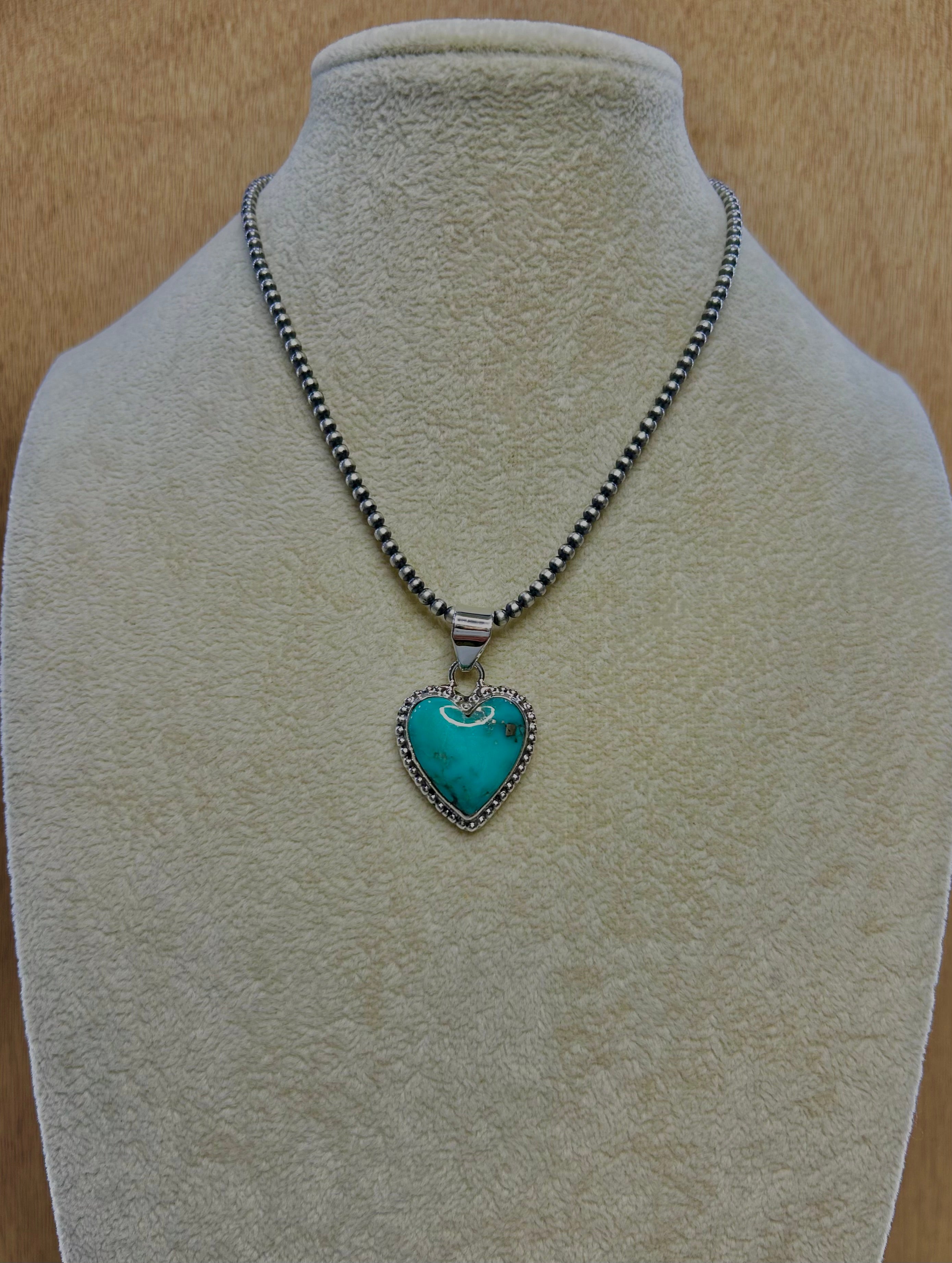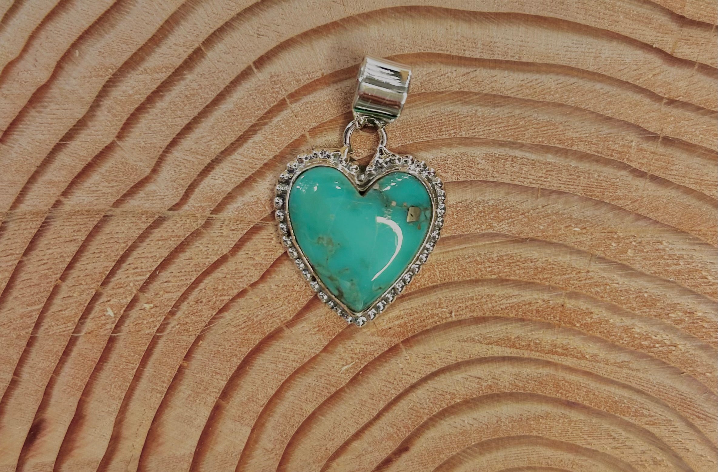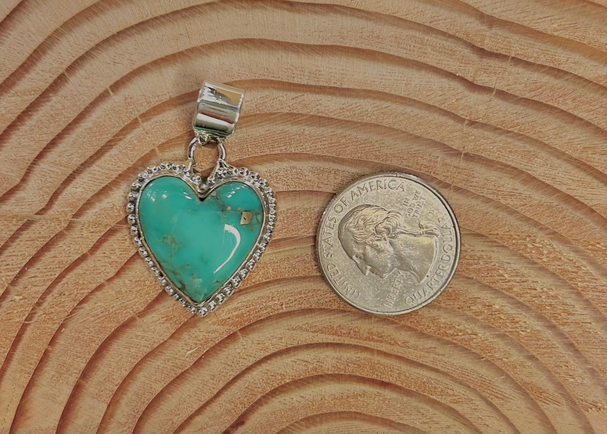 Southwest Handmade Kingman Turquoise & Sterling Silver Heart Pendant