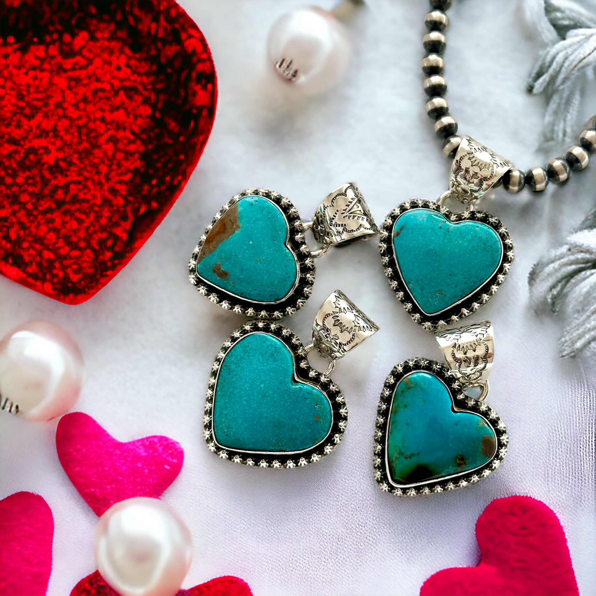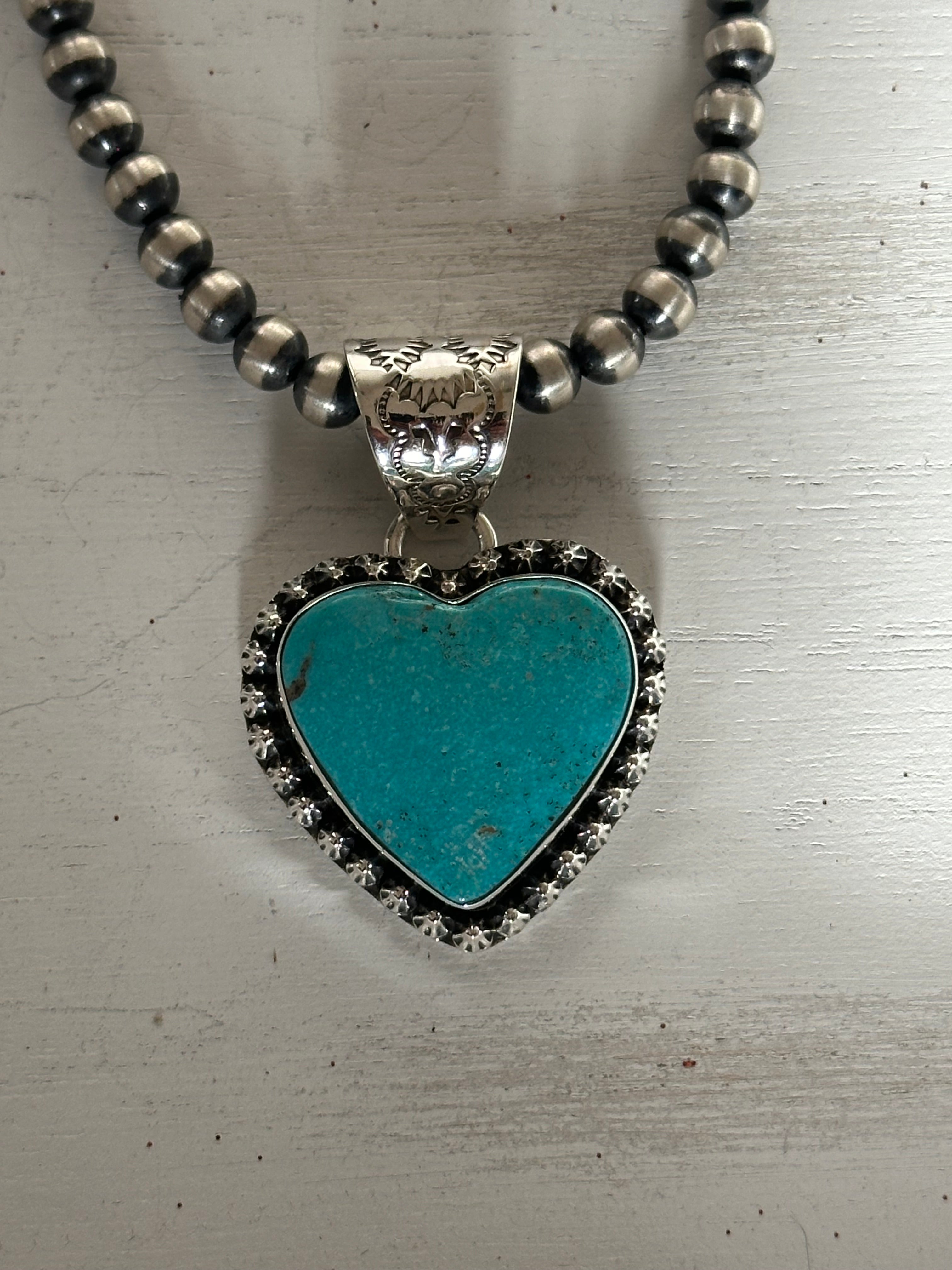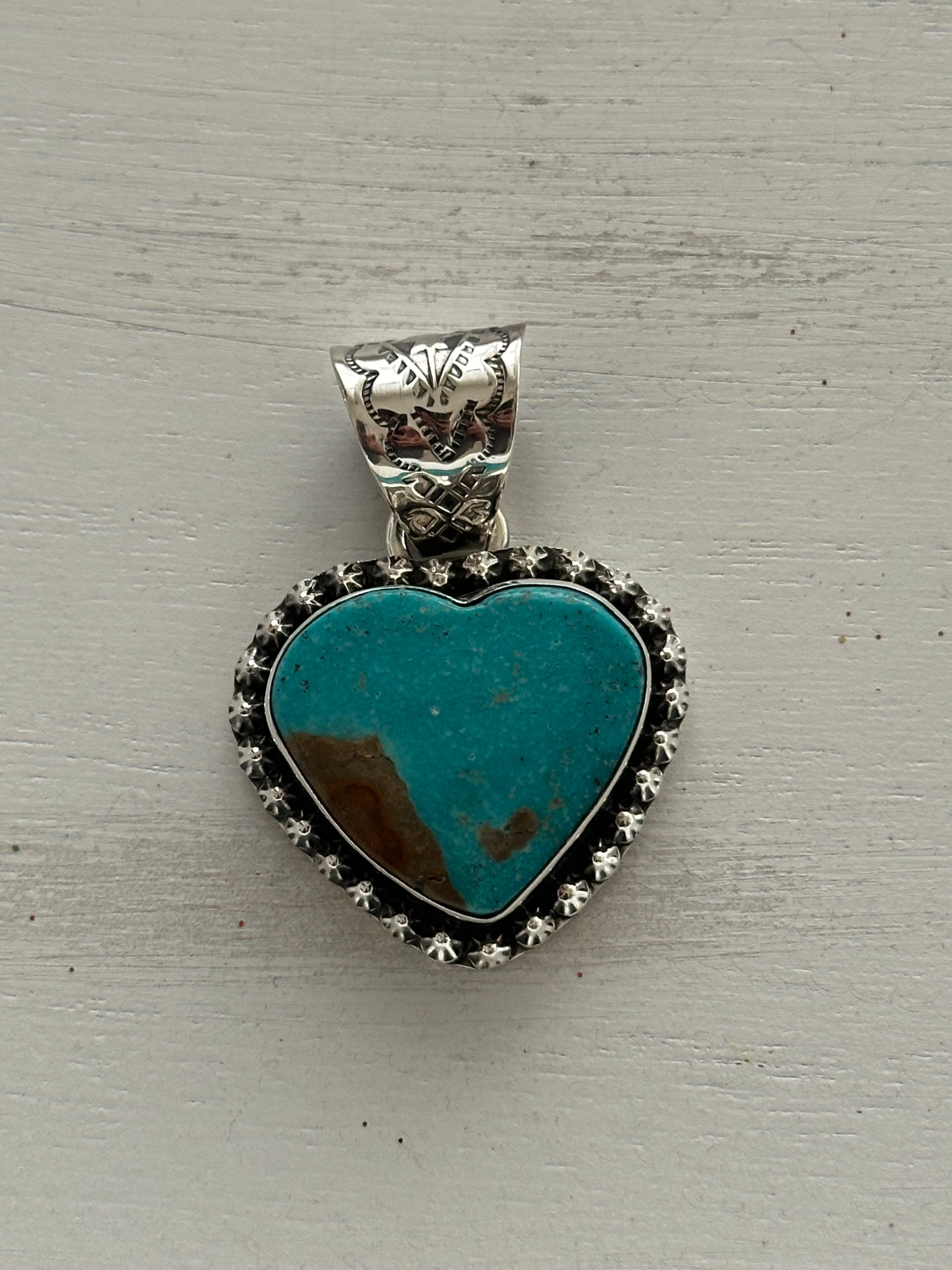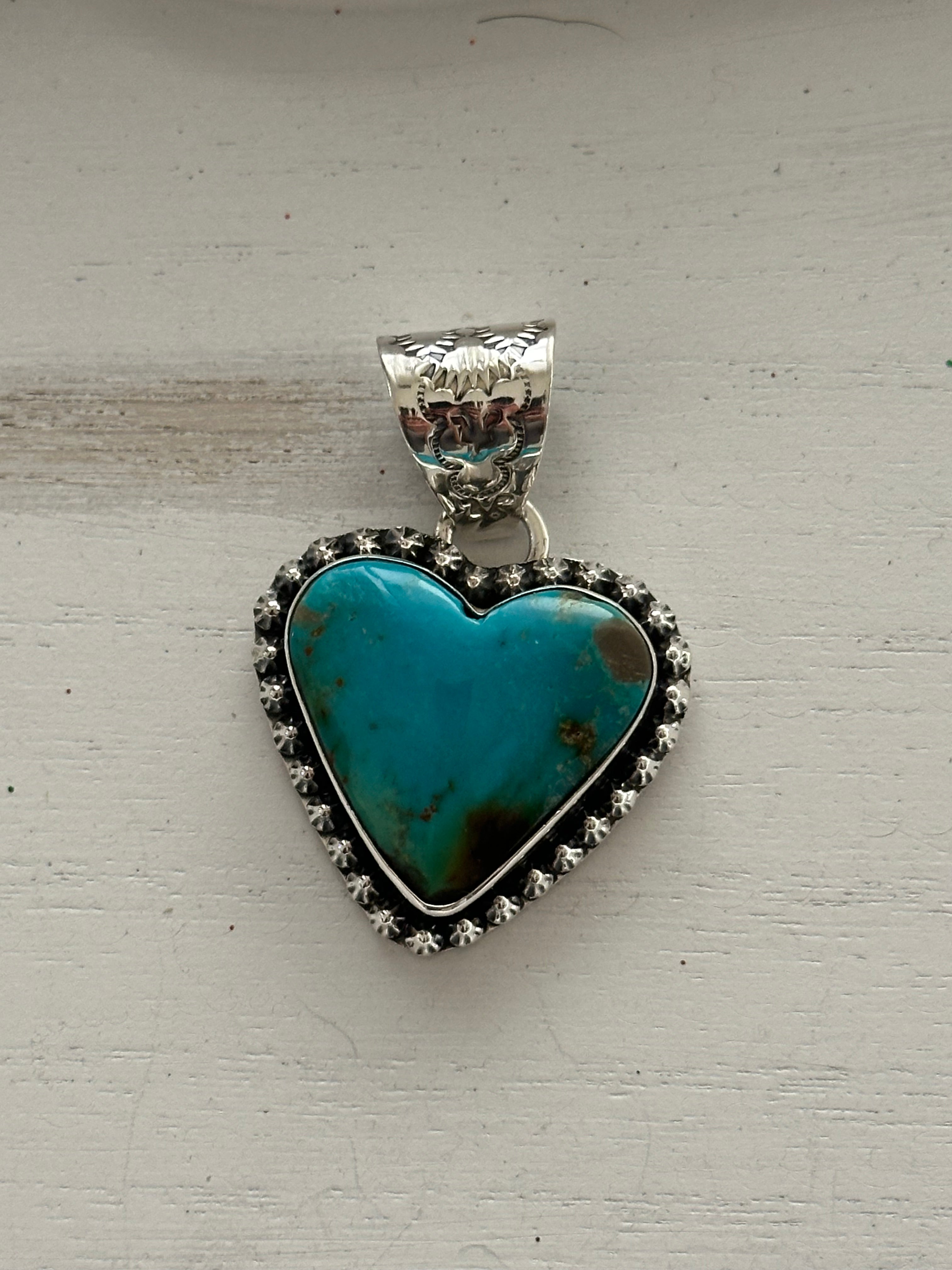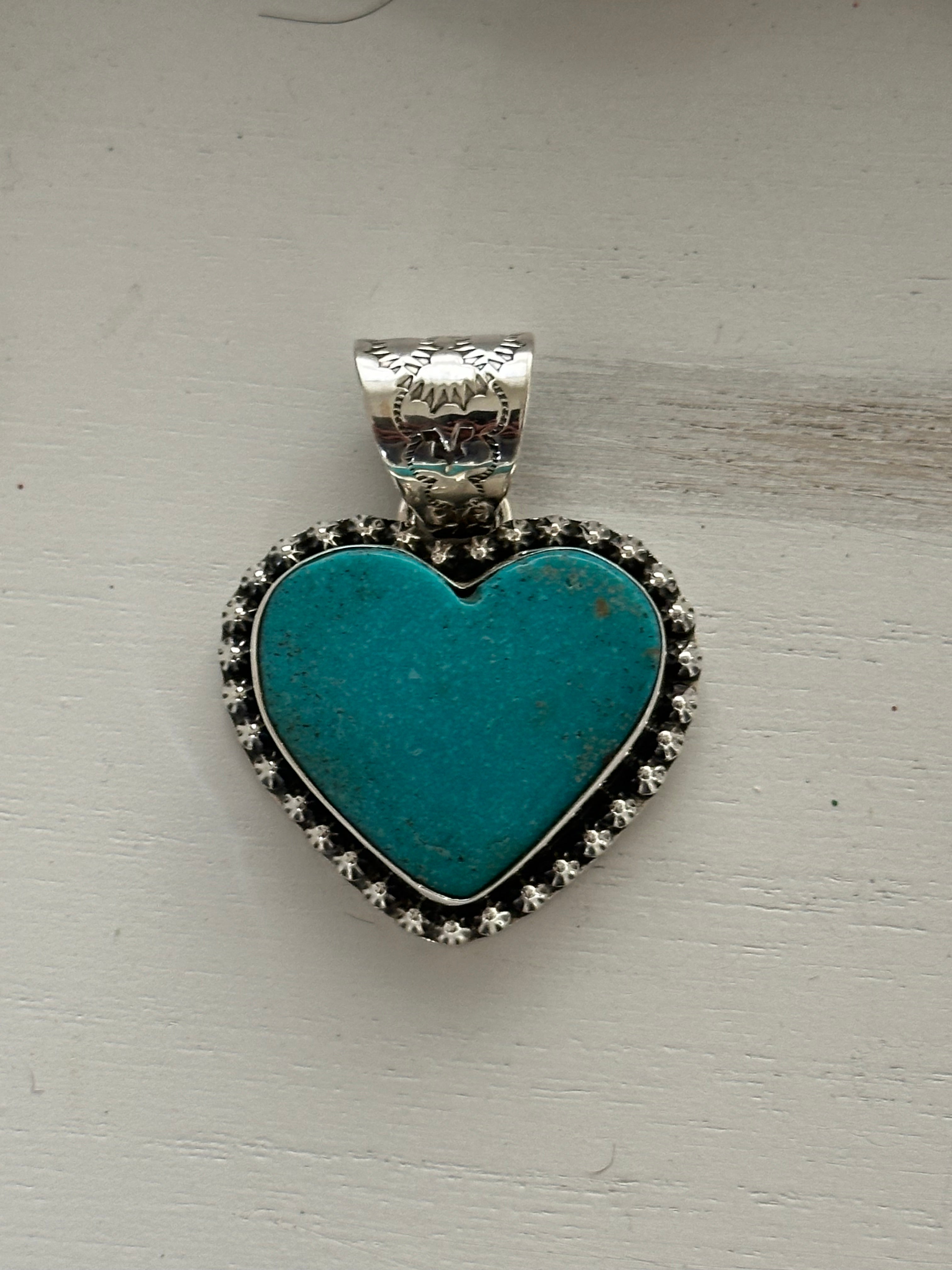 Tony Yazzie Kingman Turquoise & Sterling Silver Heart Pendant