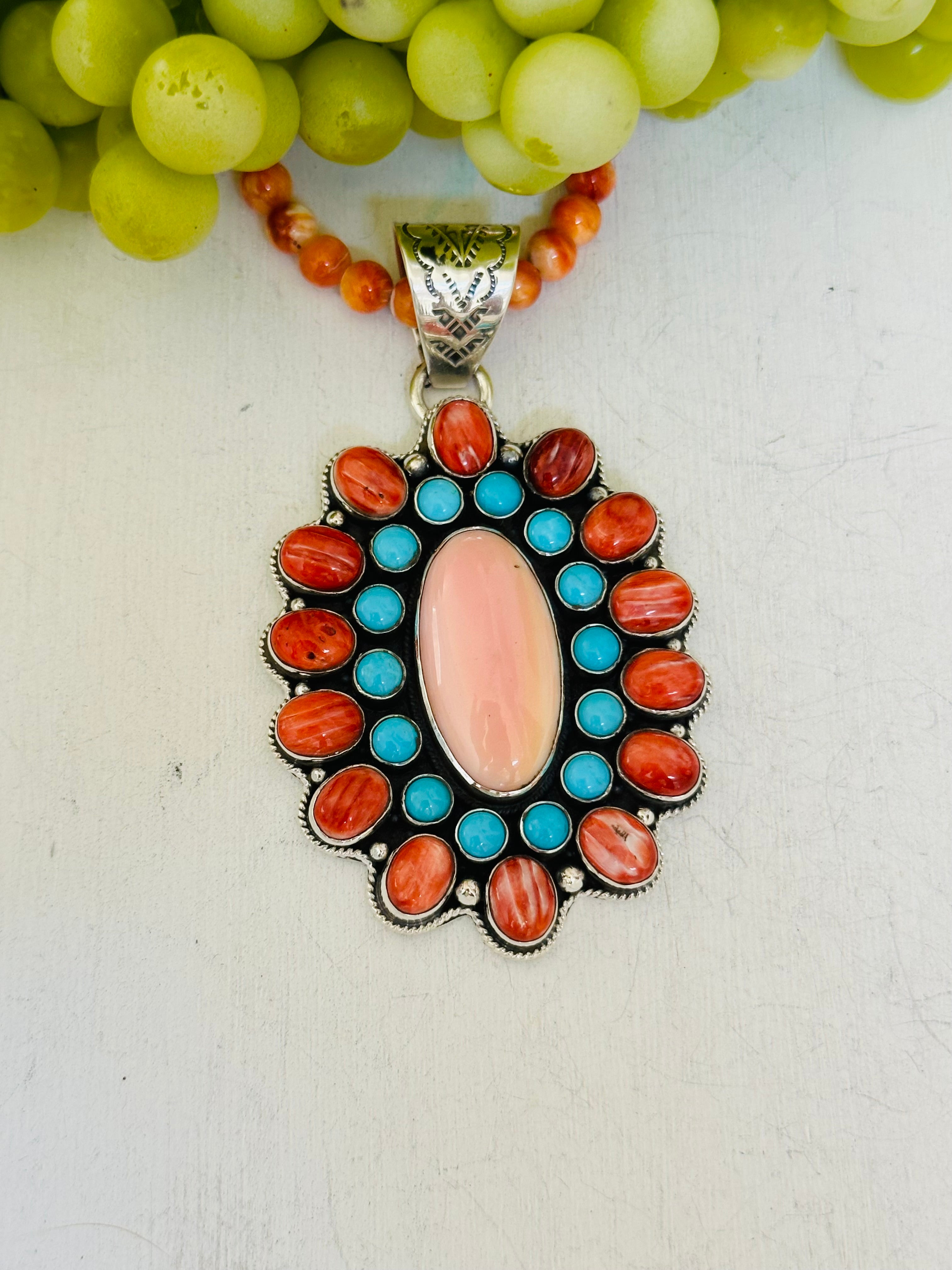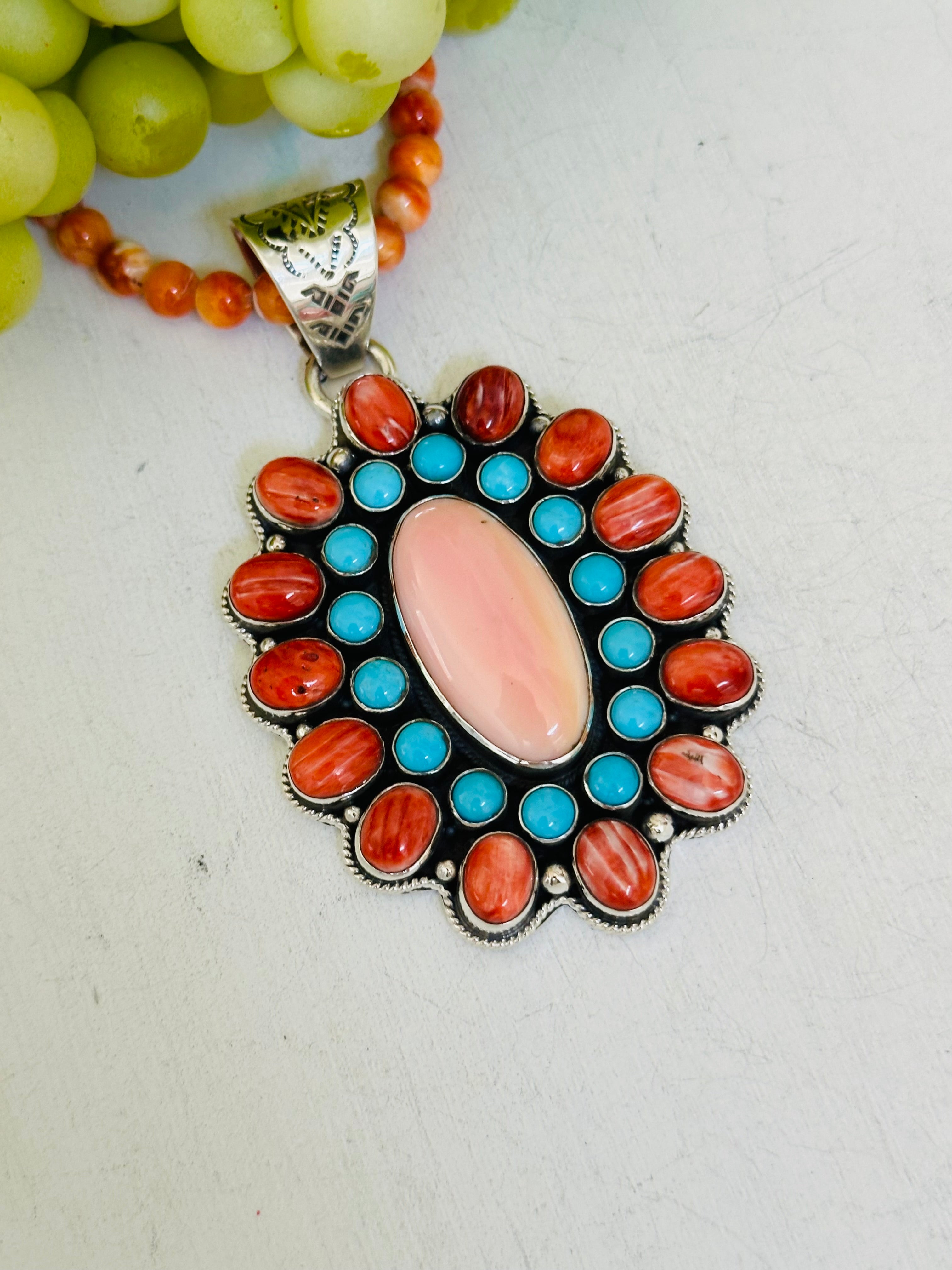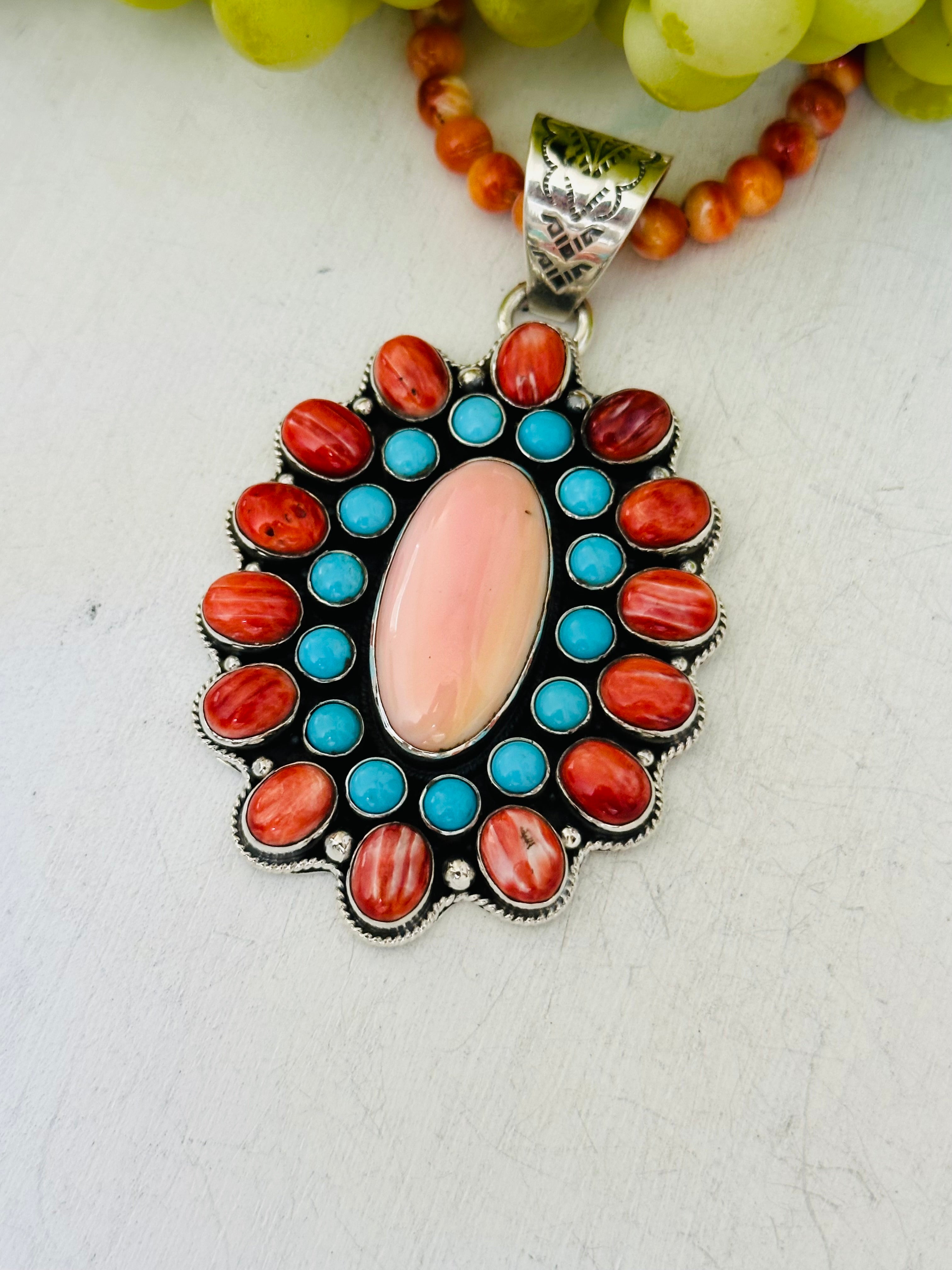Tony Yazzie Multi Stone & Sterling Silver Cluster Pendant
